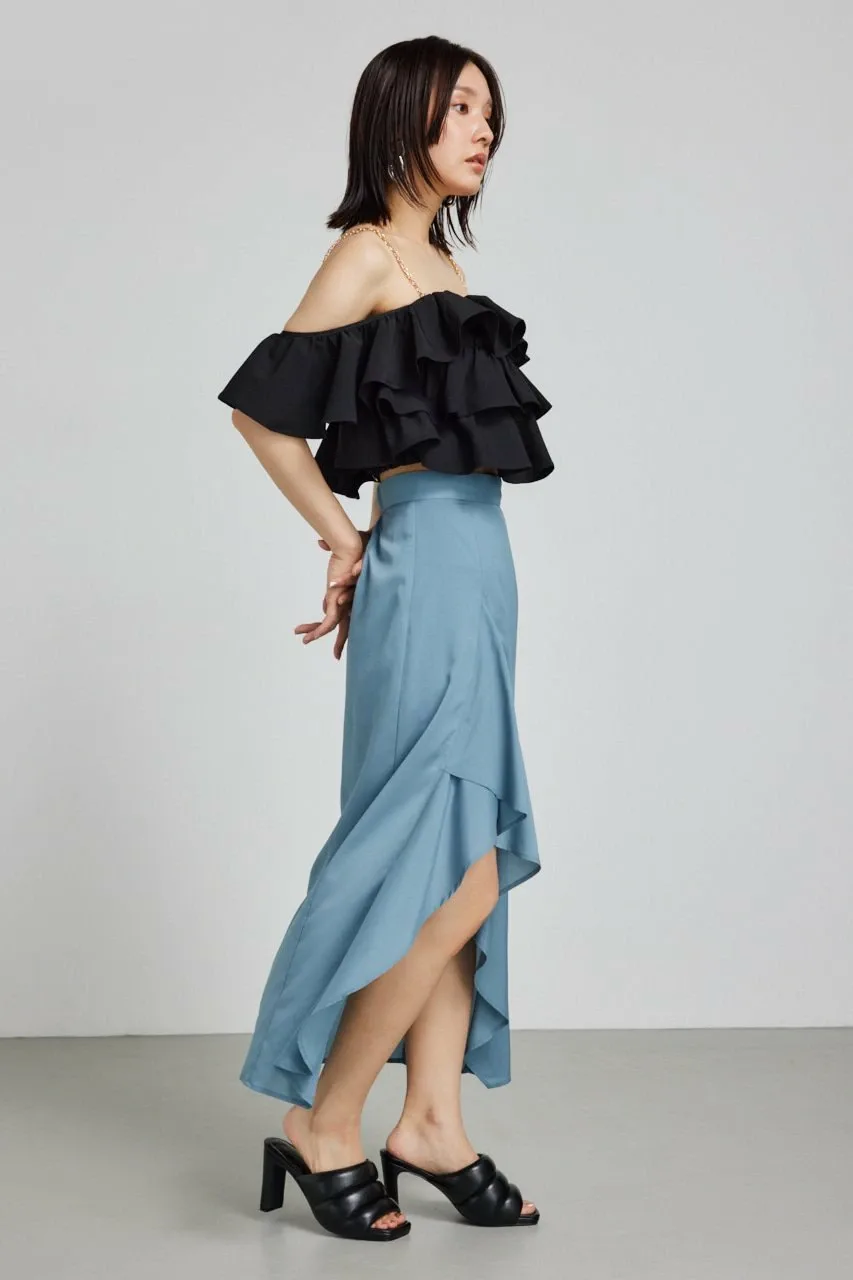 Женственные шорты-юбка с рюшами и разрезом