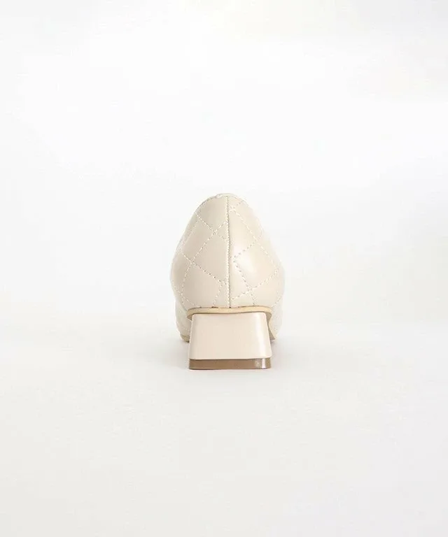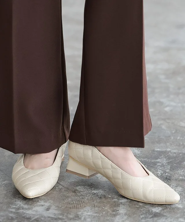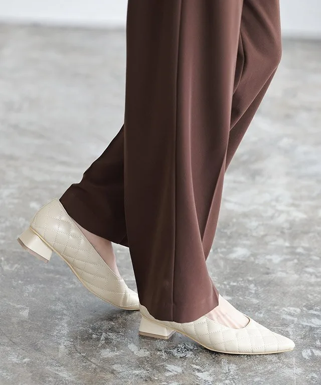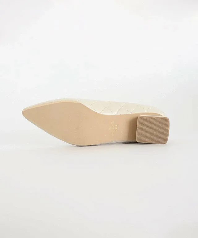 Острый носок создает женственное впечатление, а слегка покатый квадратный вырез верха добавляет непринужденности. Низкий массивный каблук обеспечивает устойчивость и облегчает ходьбу. ◎