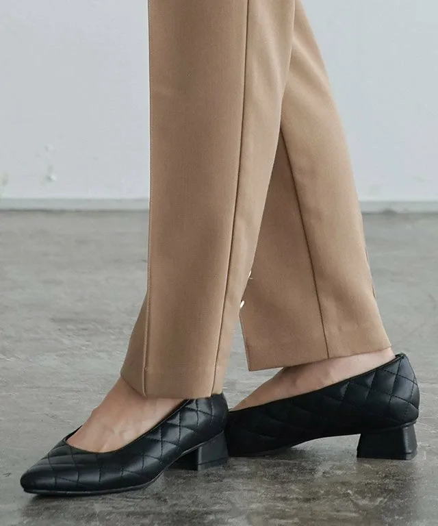 Острый носок создает женственное впечатление, а слегка покатый квадратный вырез верха добавляет непринужденности. Низкий массивный каблук обеспечивает устойчивость и облегчает ходьбу. ◎