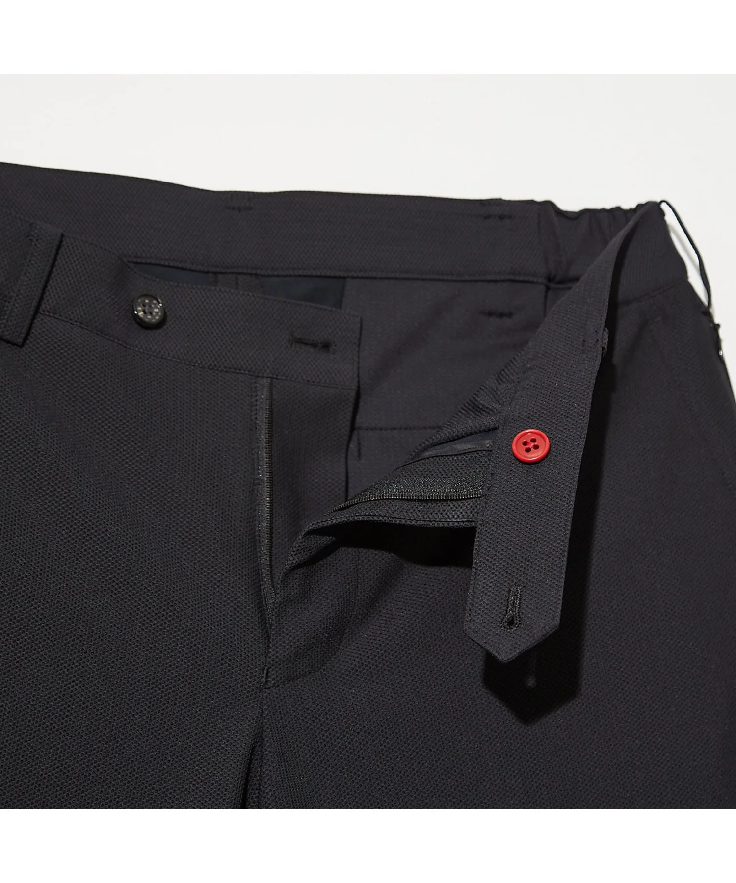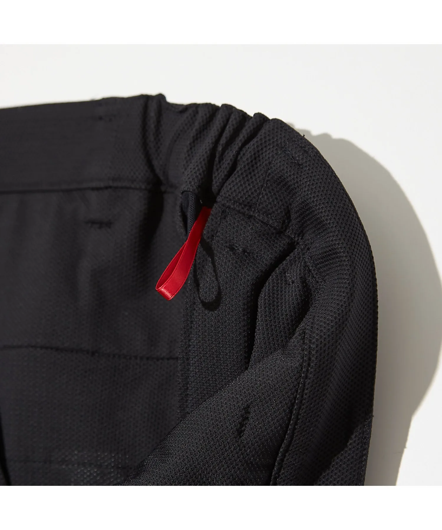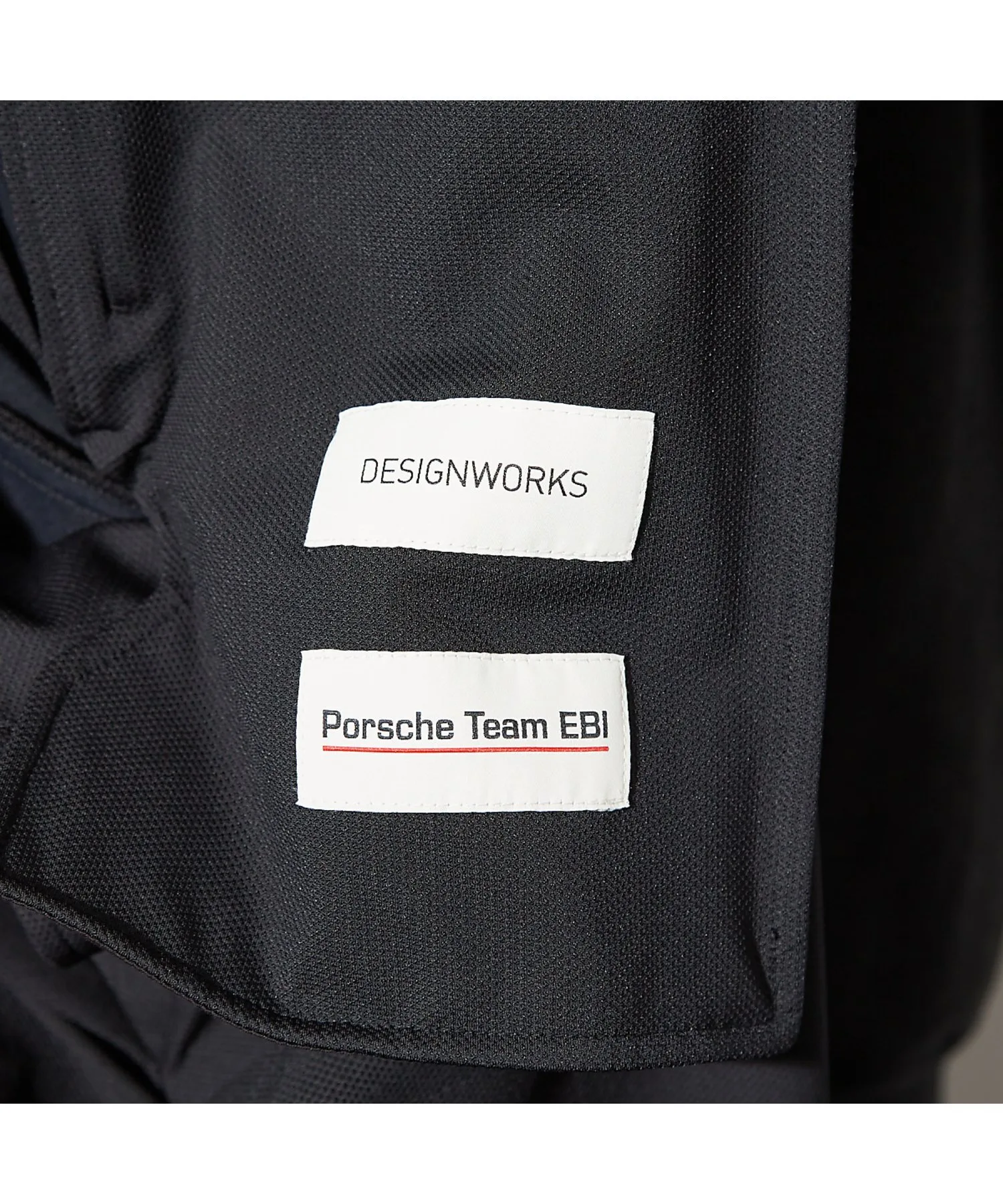 Уникальный узор разработан для комфортного ношения во время вождения. Пуговицы изготовлены из углеродного волокна, того же материала, который используется в гоночных автомобилях. Красная тесьма и внутренние застежки вдохновлены цветами автоспорта. Эластичный пояс с обеих сторон снижает давление при сидении. В дополнение к стандартным передним и задним карманам, по бокам расположены карманы на молнии для увеличения вместимости. Особый дизайн также предотвращает выпадение вещей при сидении, что делает эту вещь функциональной и красивой.