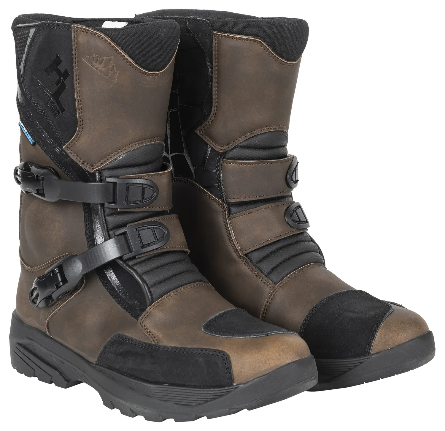 Ботинки Tour Master Trailblazer оснащены прочным, устойчивым к истиранию итальянским микроволокном и верхом из замши с волнистыми гибкими вставками для комфорта и свободы движений. Они включают в себя регулируемые двойные пряжки в стиле MX, верхнюю застежку на липучке для различных размеров икры и трехслойную водонепроницаемую дышащую мембрану HiPora. Дополнительные функции включают усиленную защиту пальцев и рычага переключения передач, термопластичные пятку и носки TechnoGI, защиту лодыжки двойной плотности, противоскользящую подошву с выступами и дышащую сетчатую подкладку.