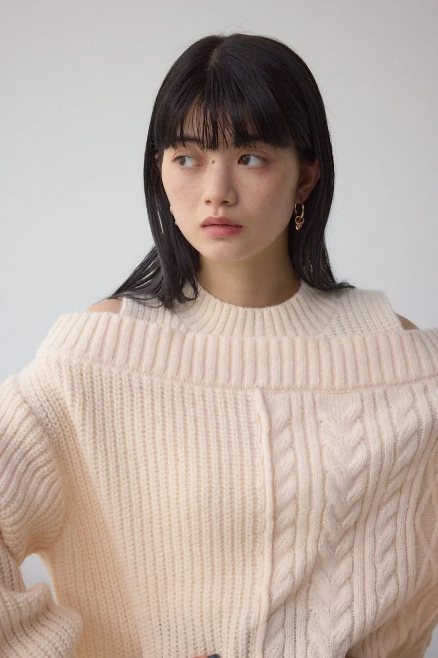 Открытый дизайн плеч придает свободный вид даже крупной вязаной вещи.