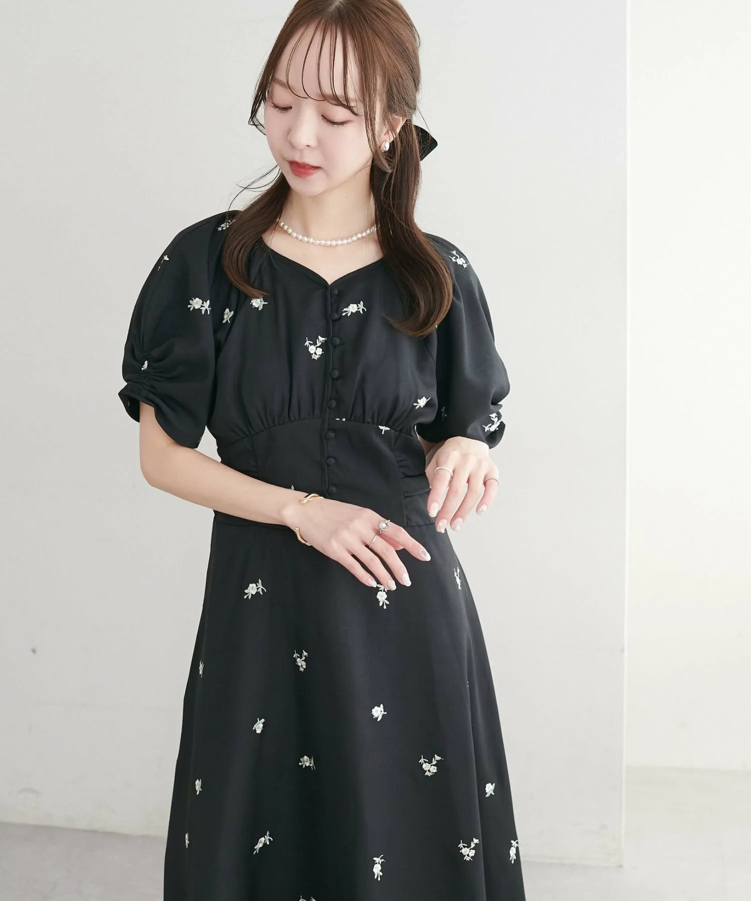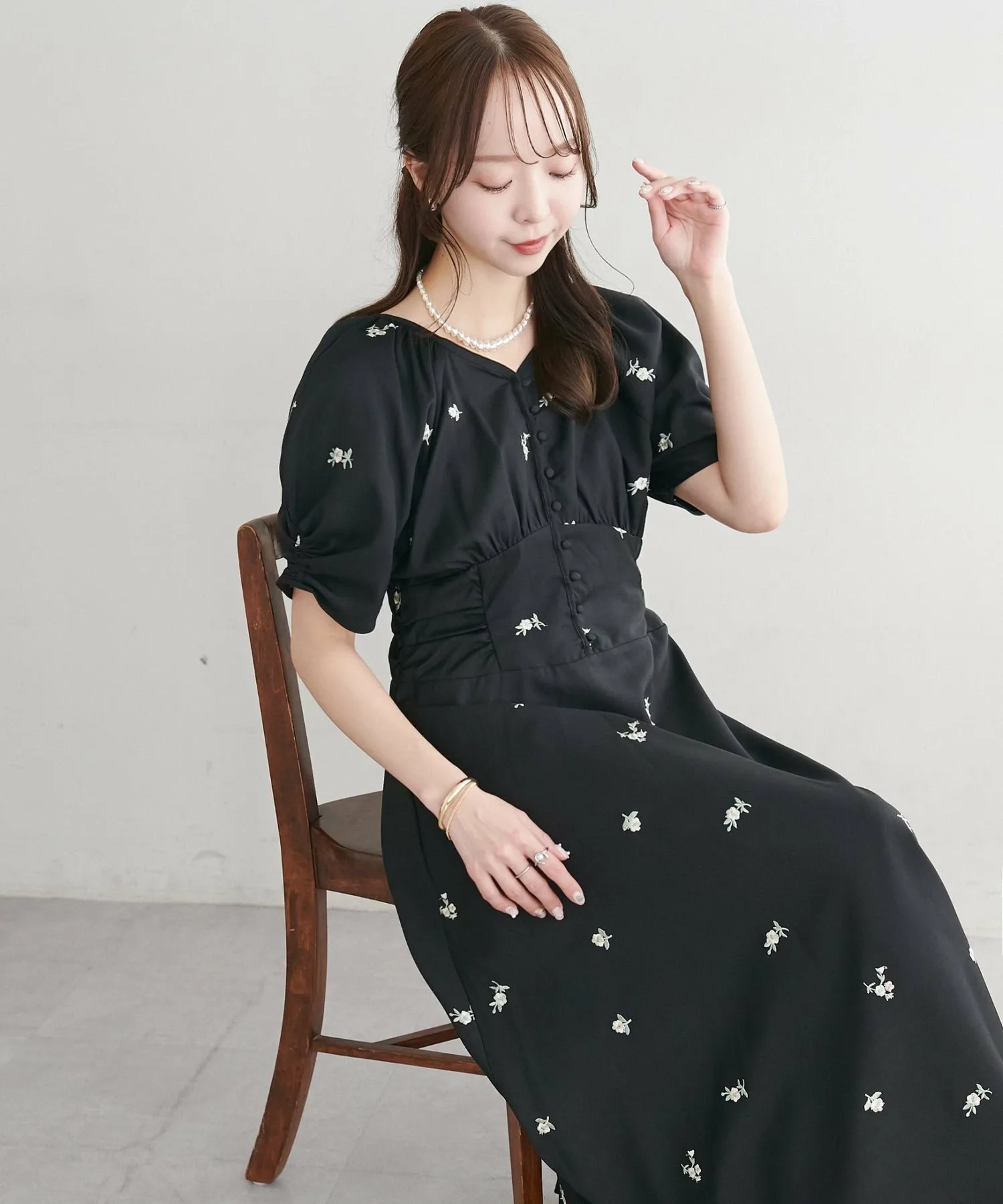 Сотрудница в этом платье (размер PS: 153 см): Высокая талия визуально удлиняет ноги♪Даже в обуви на низком каблуке подол не касается пола, а длина прекрасно подчеркивает ноги, что делает его отличным размером для невысоких людей! Я бы хотела носить его на такие мероприятия, как свадьбы, а также в качестве вечернего наряда. Сотрудница 155 см (размер F): Силуэт мягко колышется при каждом движении, но линия талии выкроена так, чтобы платье не было слишком широким, создавая изысканный образ! Сотрудница 160 см (размер F): Сборки на манжетах предотвращают излишний объем рукавов! Я боялась, что оно может быть слишком сладким, но оно не слишком сладкое, поэтому идеально подходит для женщин зрелого возраста. Посмотрите серию для особых случаев здесь: ▶ Комплект из кружевного платья-бюстье ▶ Кружевное платье с вышивкой ▶ Комбинезон из тюля ▶ Платье-трансформер из тюля для особых случаев [Размер PS] Рекомендуется для женщин ростом ниже 150 см. [Инструкции по уходу] Перед ношением и стиркой обязательно ознакомьтесь с инструкциями по уходу и этикеткой. Ручная стирка: до 40°C (при стирке аккуратно отжимайте). Избегайте замачивания.