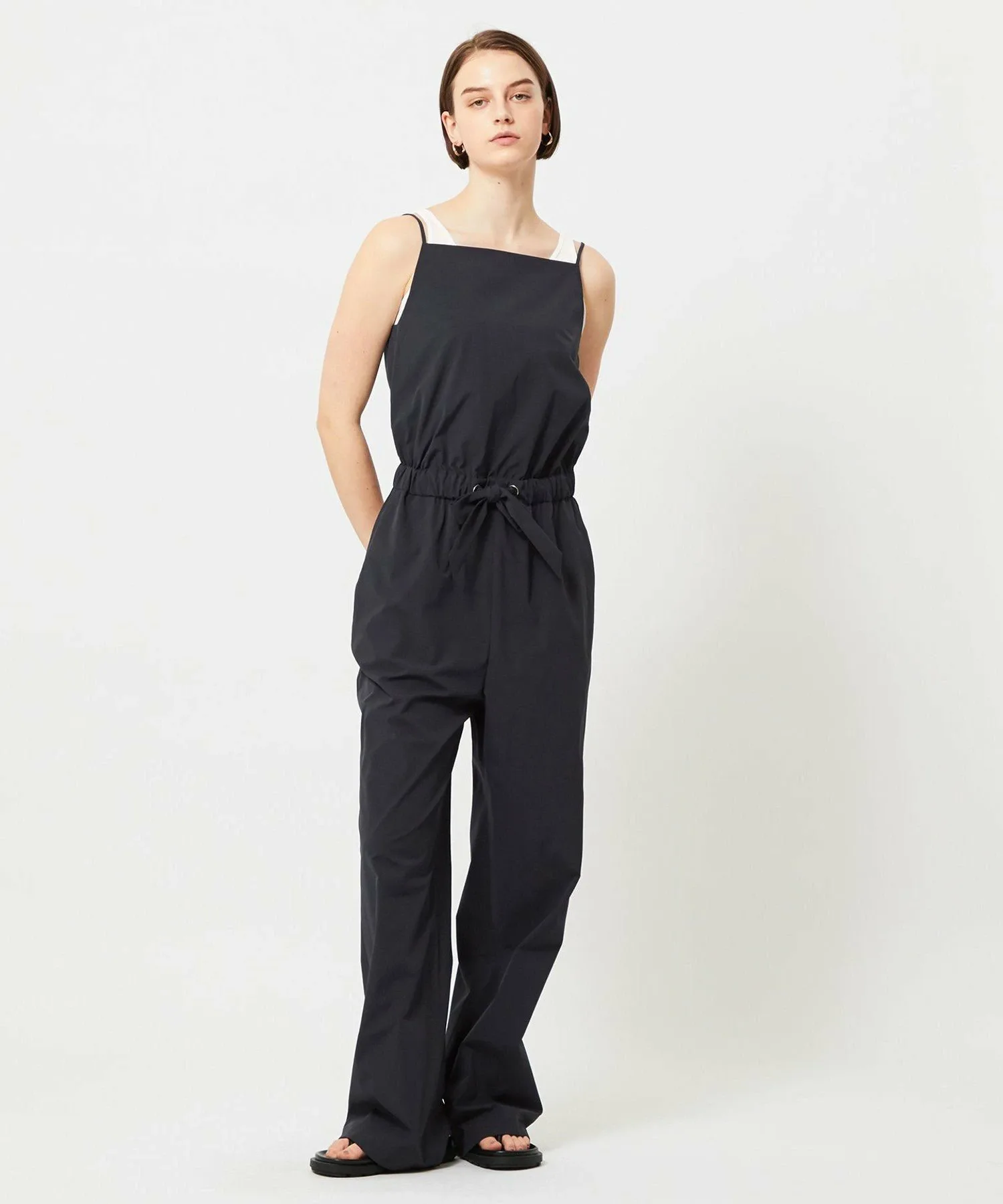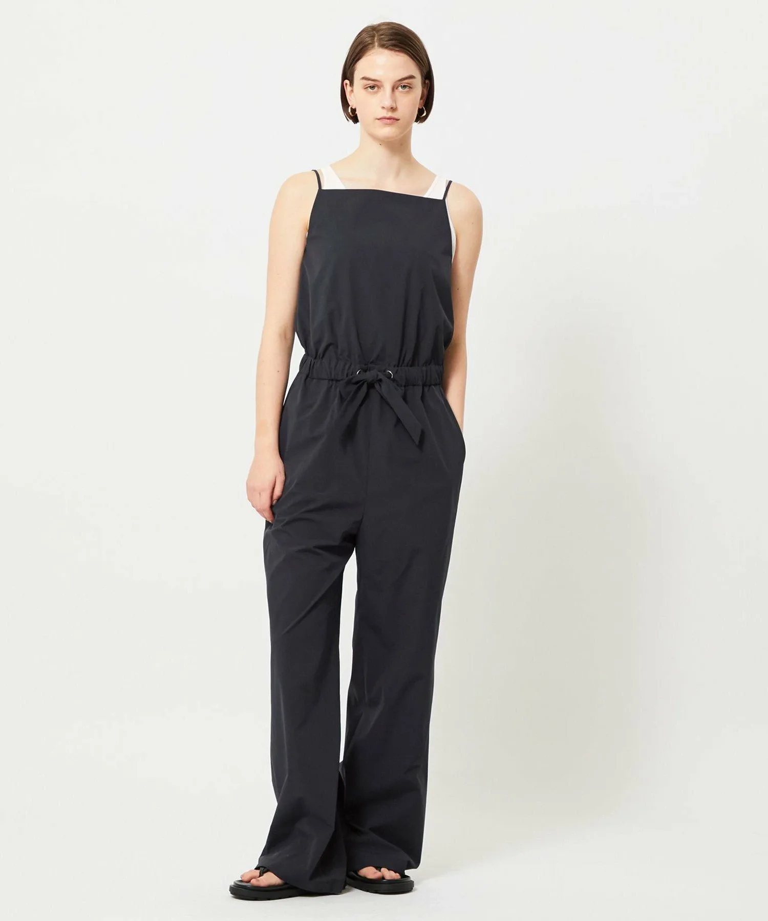 Этот комбинезон имеет изящные бретельки. Лента в тон завязывается на талии, создавая аккуратный образ. Наслаждайтесь разнообразием вариантов сочетания: носите его отдельно, сочетайте со стильной курткой или кардиганом, или с повседневной футболкой. Доступные в натуральном черном и бежевом цветах, эти комбинезоны идеально подходят для повседневной носки.