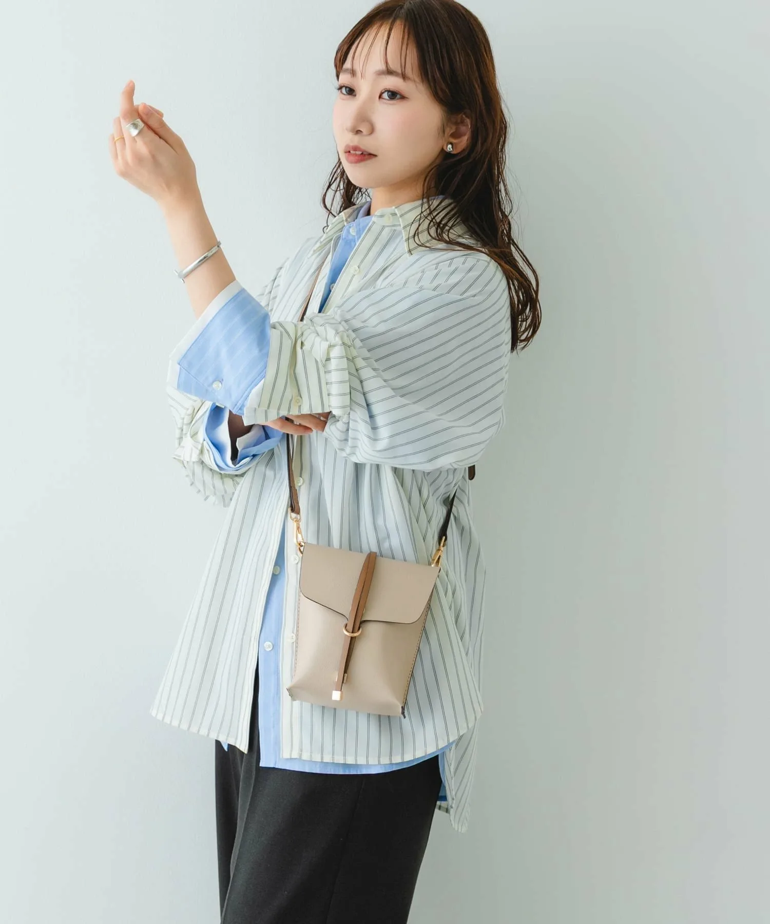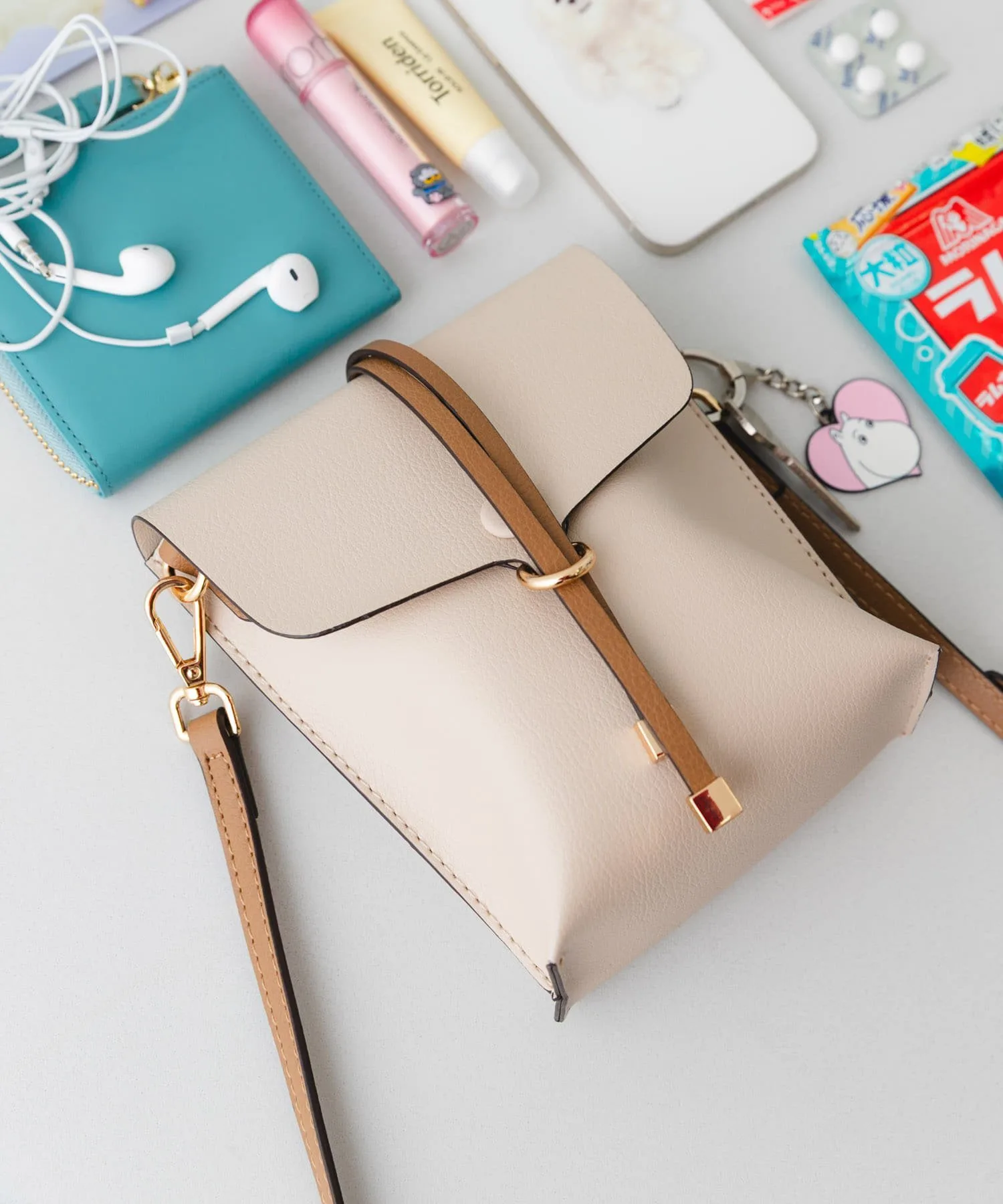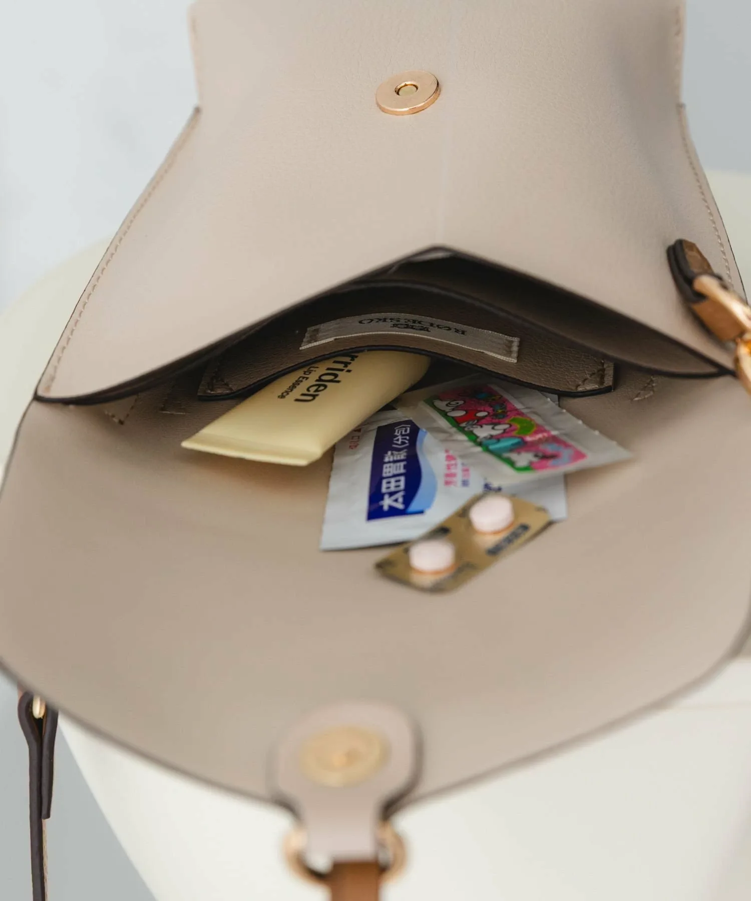 Несмотря на компактный размер, вертикальная форма позволяет аккуратно хранить необходимые вещи, что делает ее идеальной для прогулок в дни с небольшим количеством людей или в качестве дополнительной сумки. Ремешок, застегивающий клапан, придает сумке более изысканный вид, позволяя использовать ее как аксессуар.