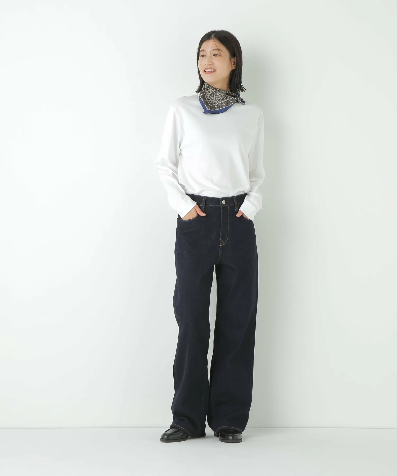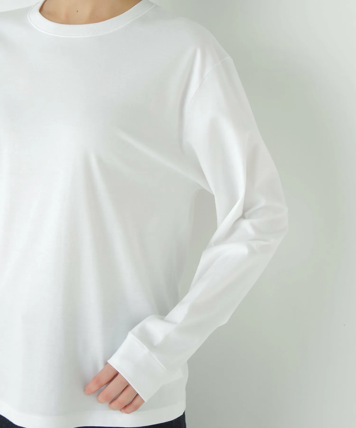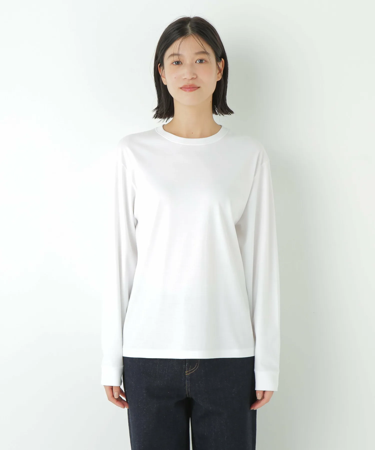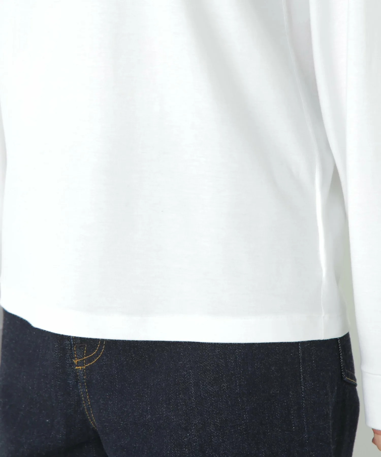 100% хлопок. Связана в чрезвычайно тонкое, гладкое полотно с использованием высокоточной вязальной машины, одной из немногих в Японии. Этот гладкий хлопок обработан водой для придания ему тонкой, влажной и гладкой текстуры.