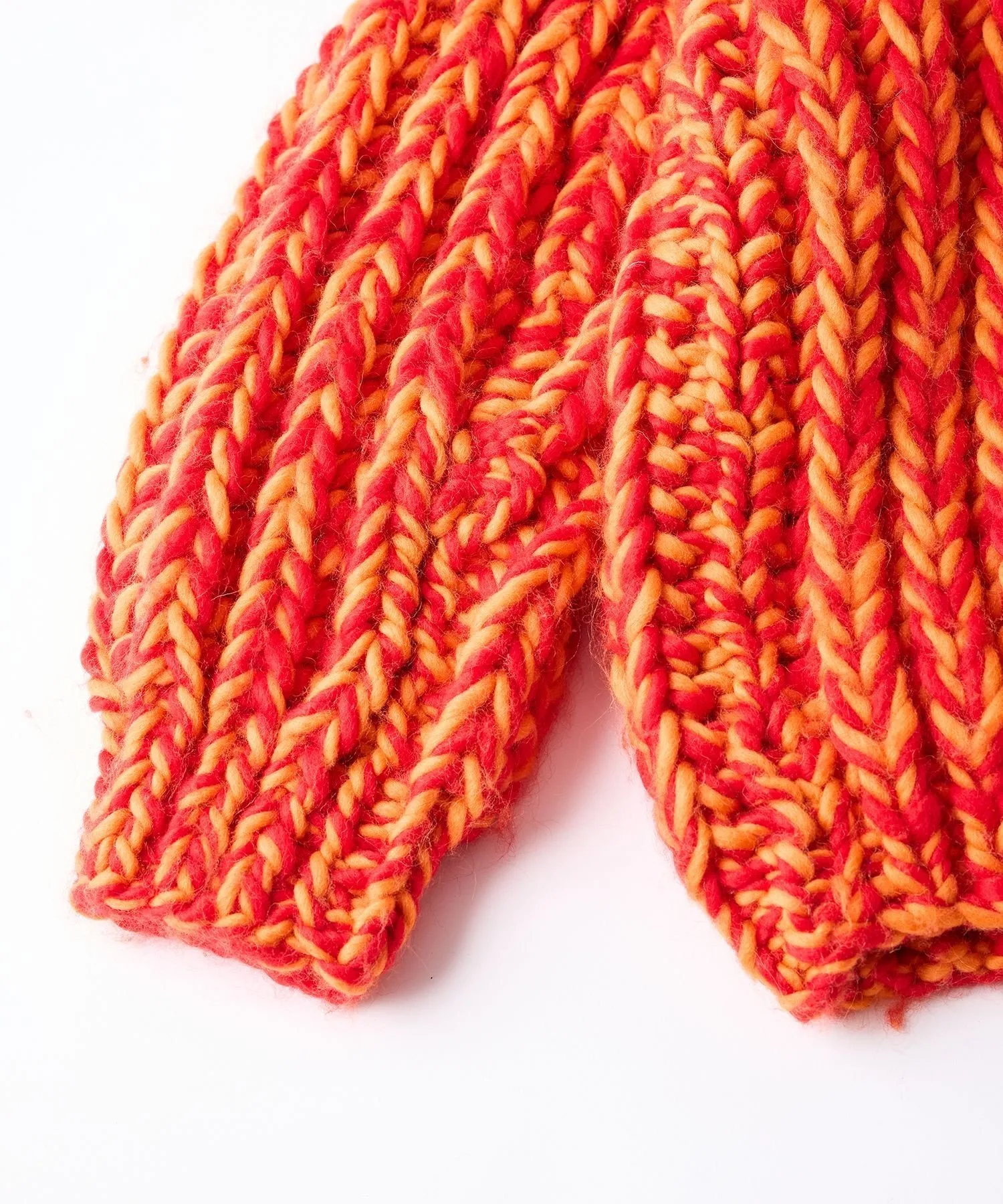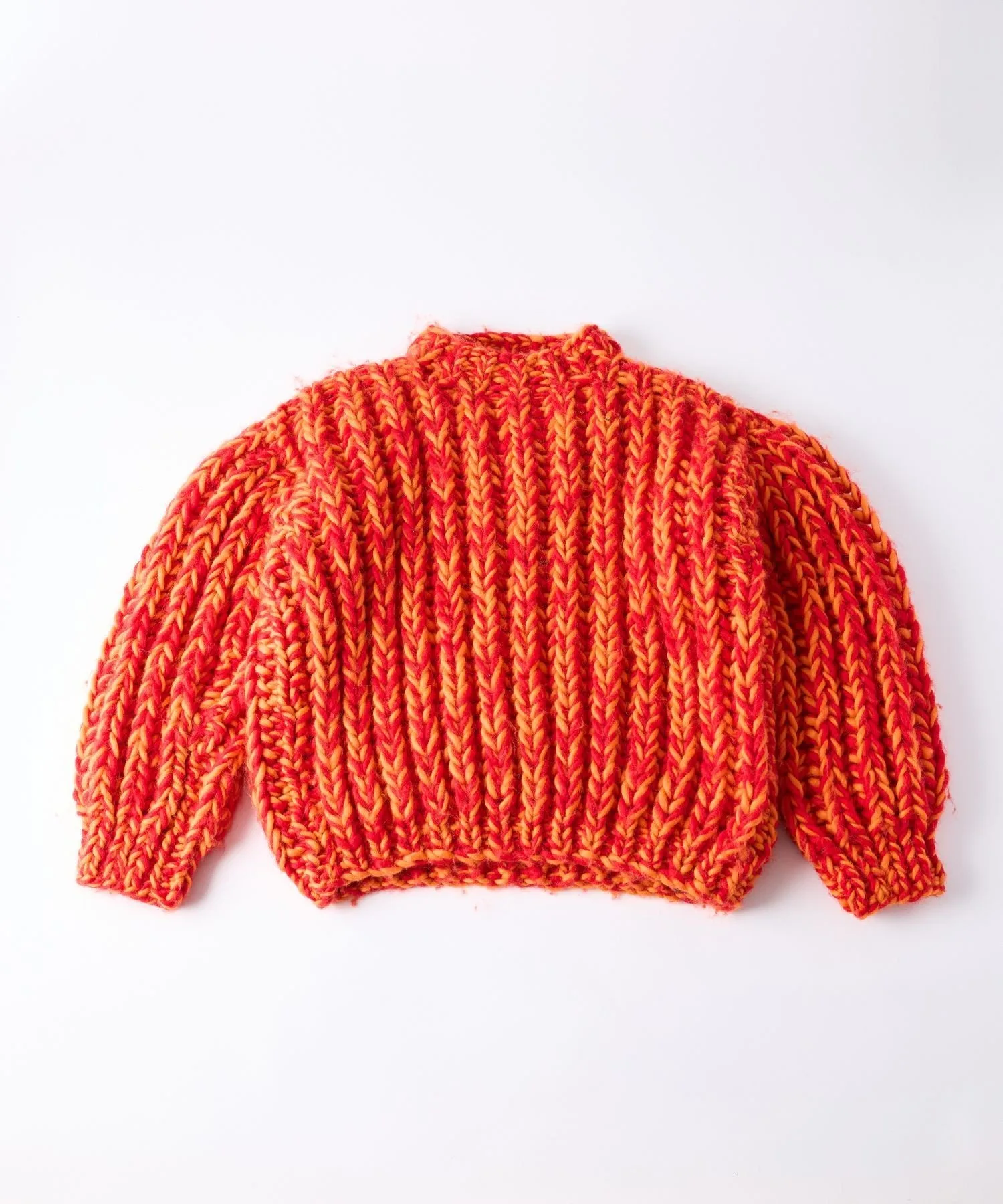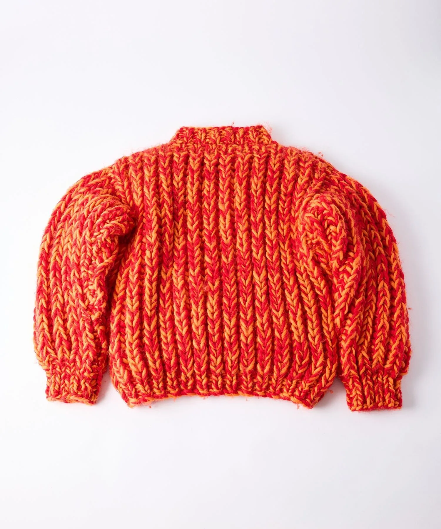 Каждый свитер Sol тщательно изготавливается вручную из плотной шерсти с изысканным сочетанием оранжевых и красных нитей.