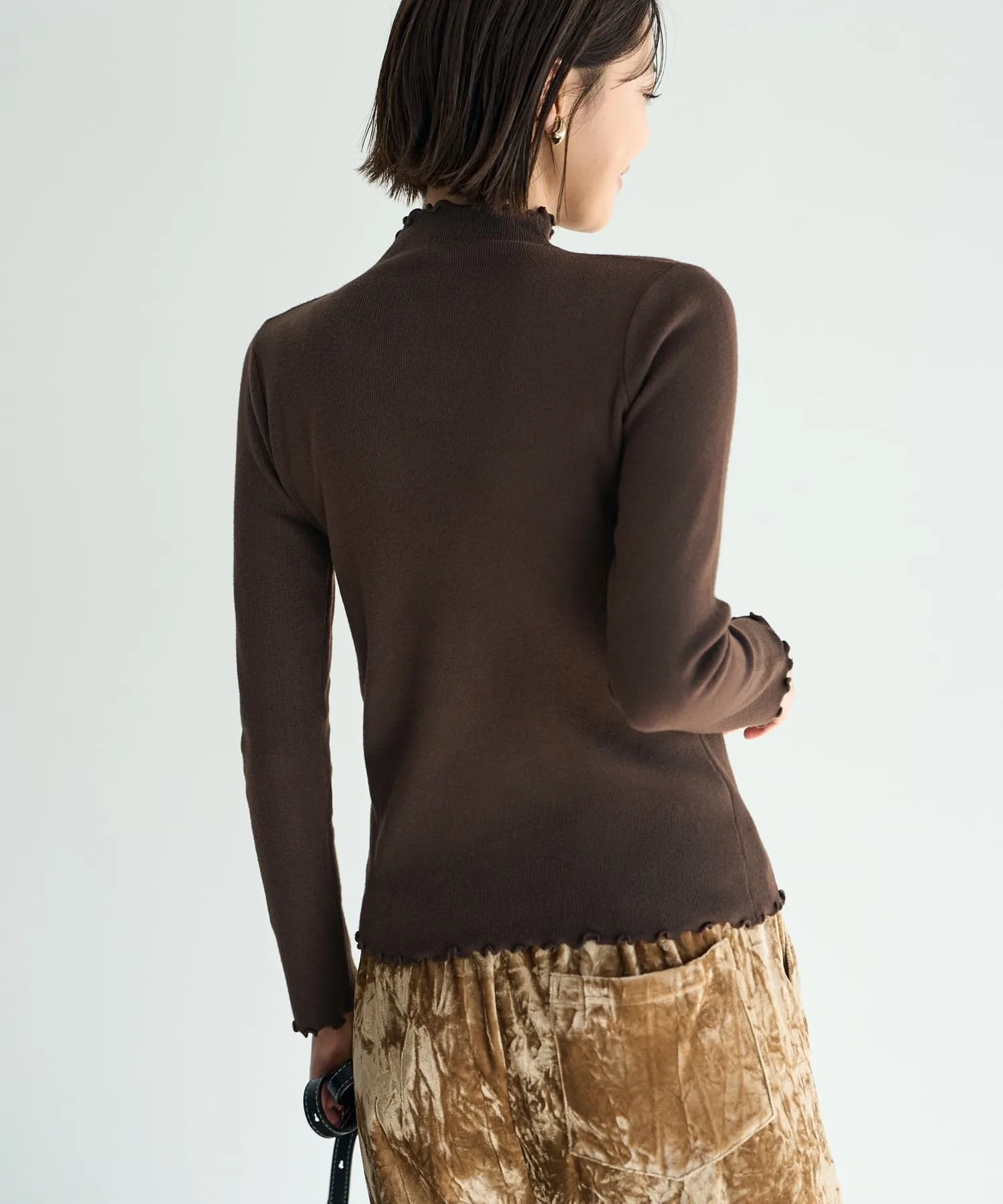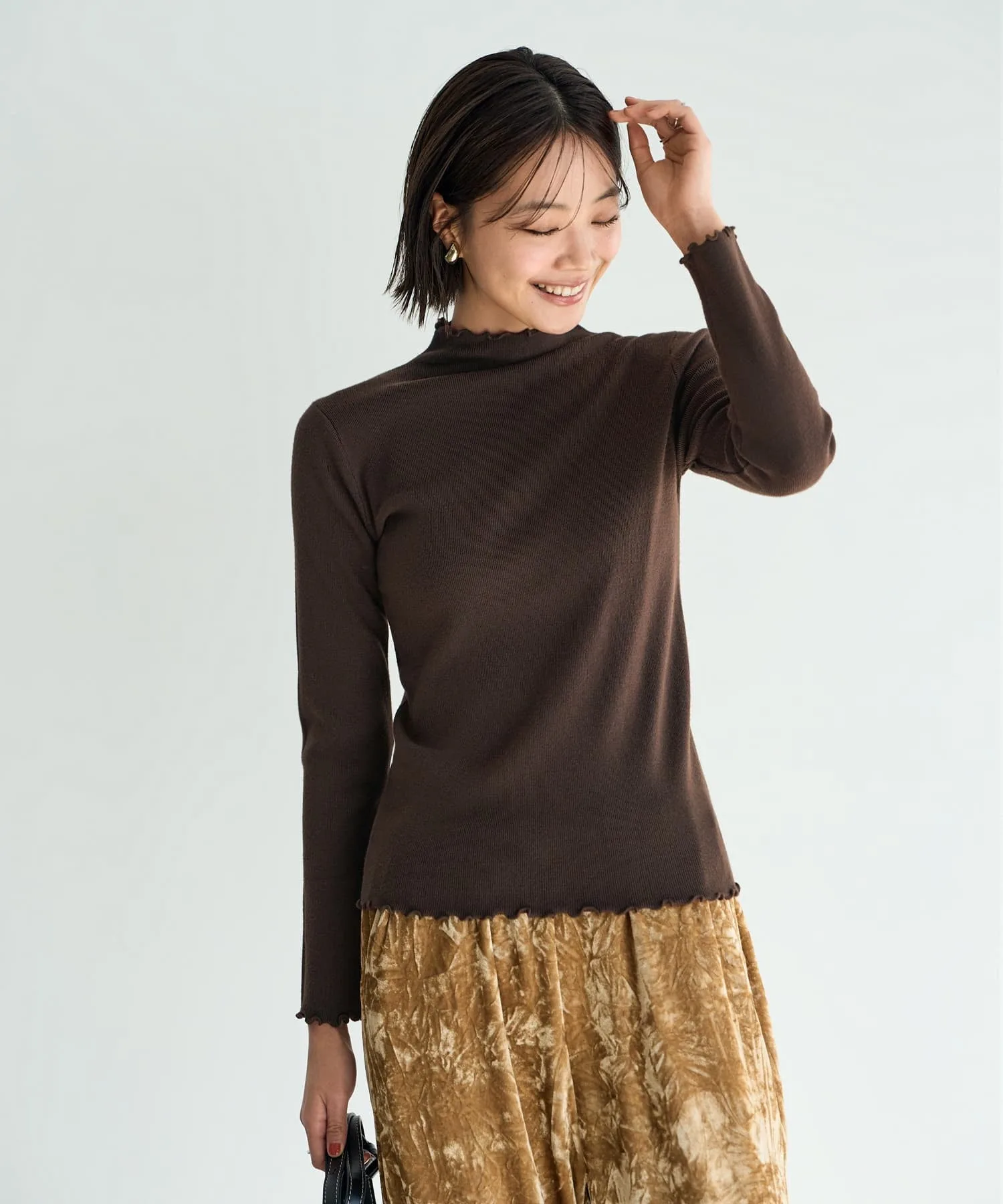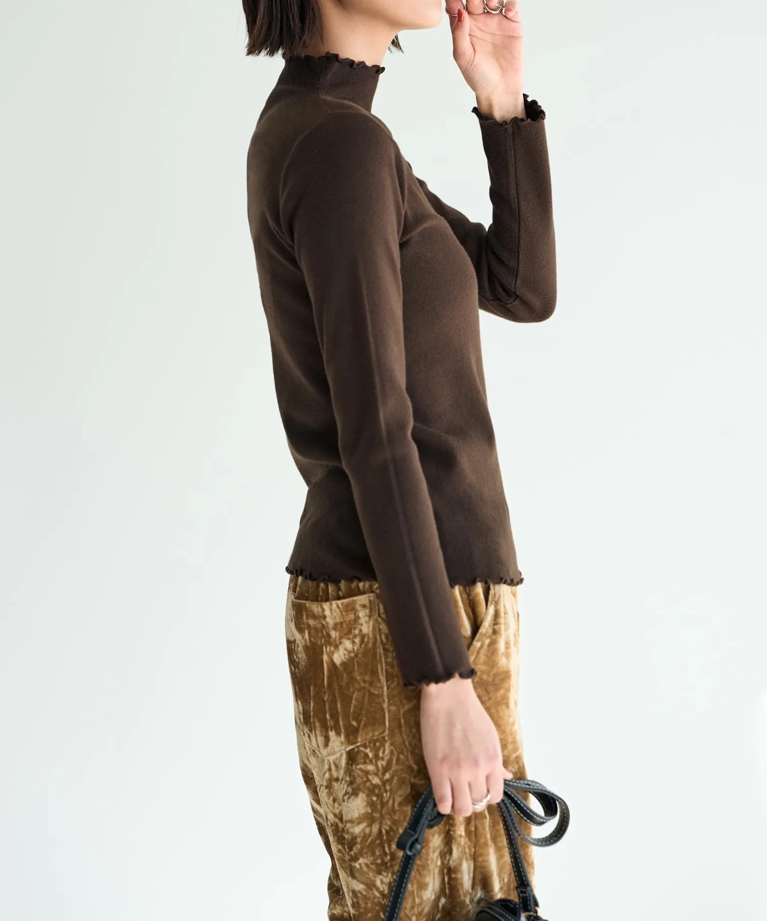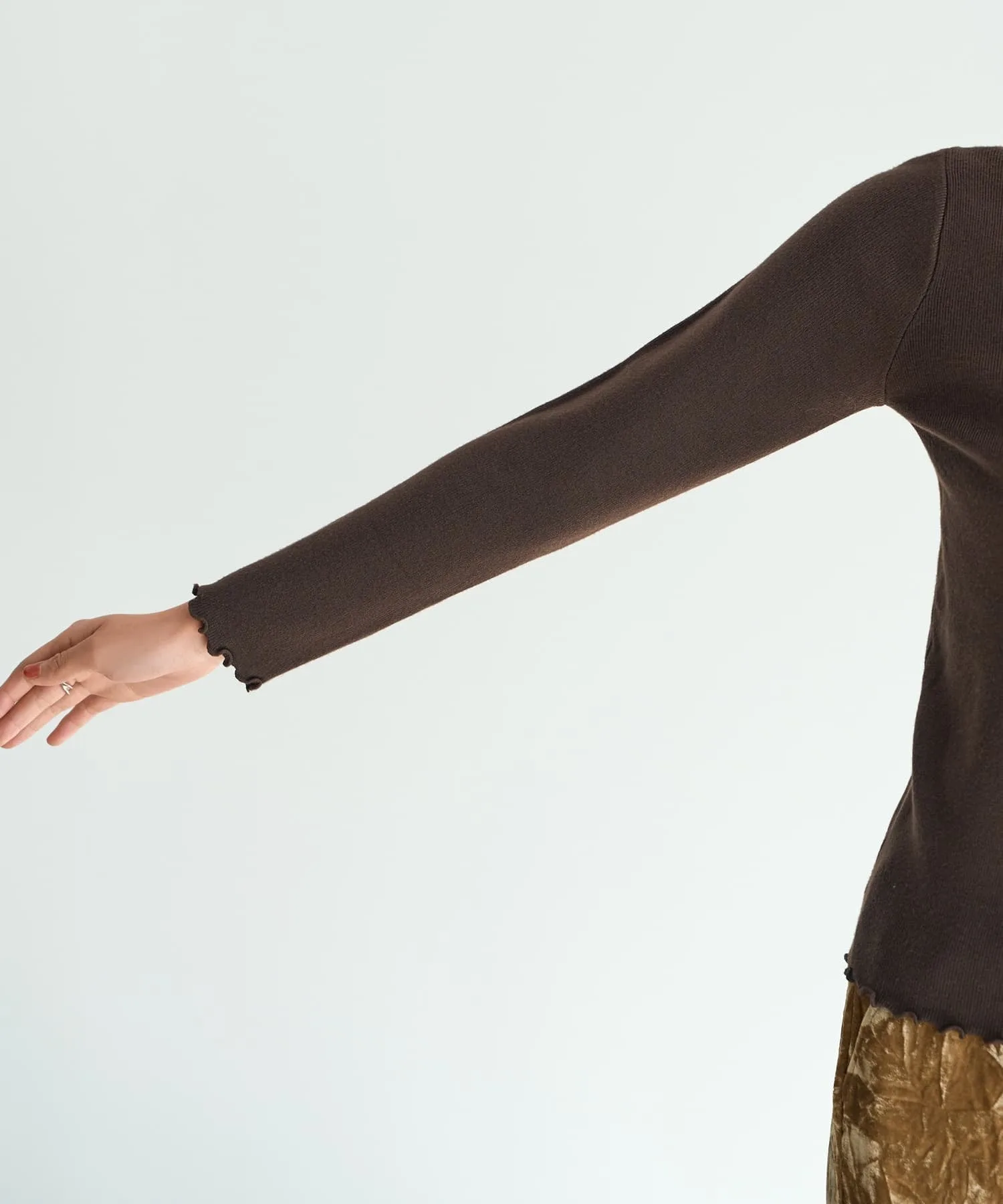 Тканый топ высокой плотности с оборками по краю горловины, манжет и низа. Простой, но с тонким нюансом, этот дизайн естественным образом подчеркнет ваше чувство стиля.