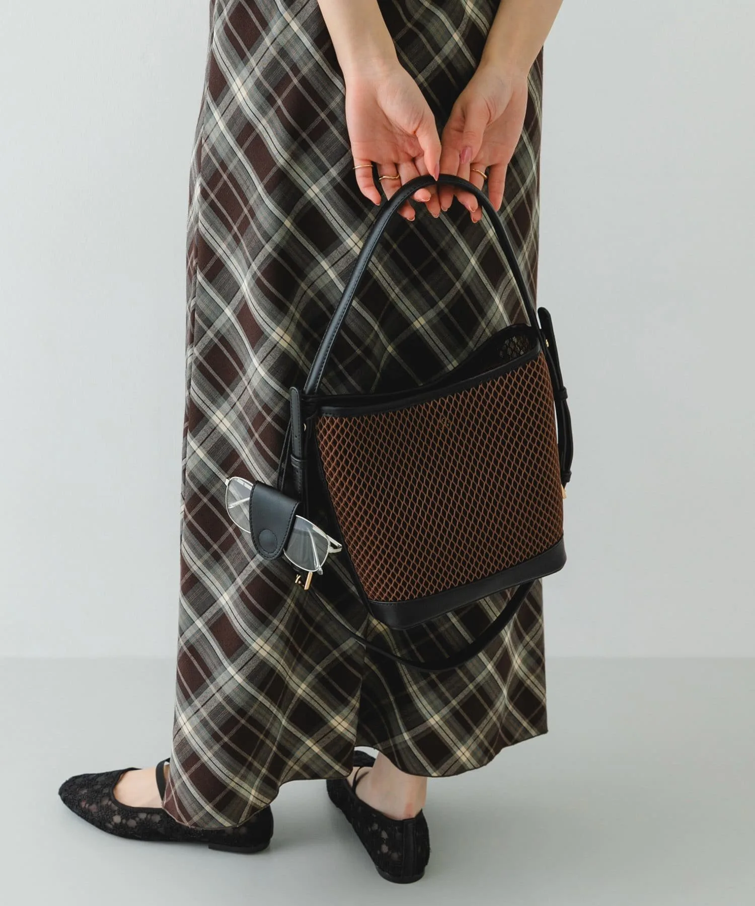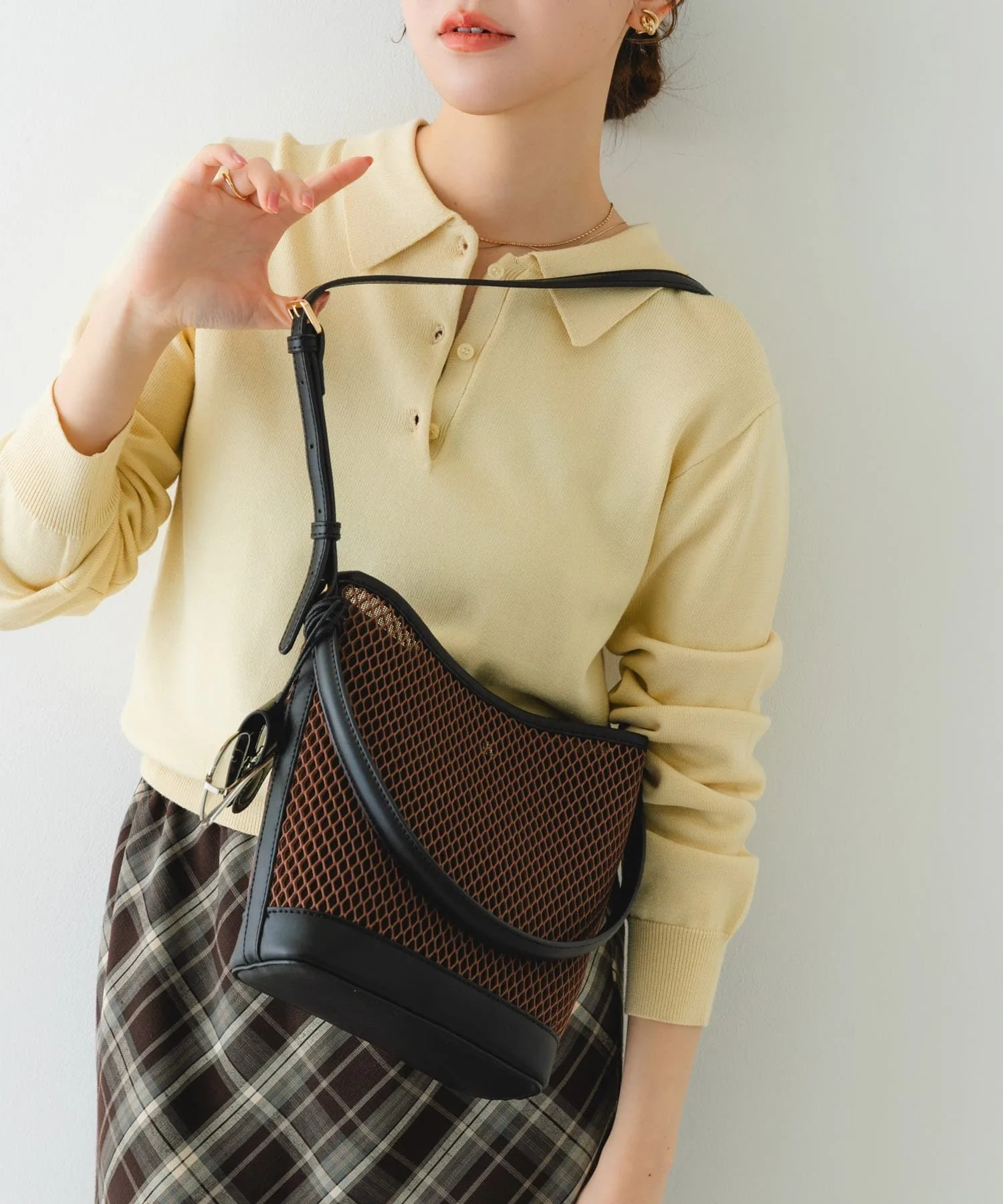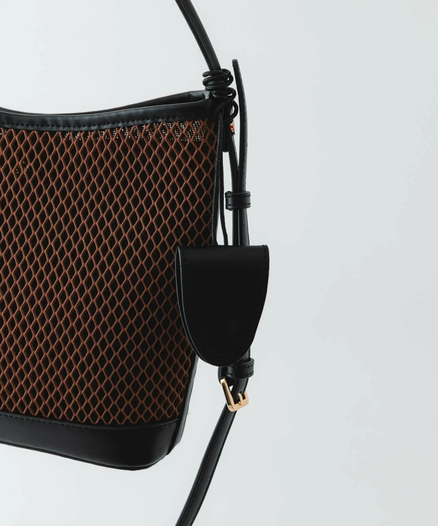 Сетчатый материал обычно создает впечатление непринужденности, но сочетание его с золотой фурнитурой придает ему утонченный вид, не делая его слишком повседневным. Дно имеет прочный шов, обеспечивающий устойчивость и предотвращающий деформацию, несмотря на компактный размер.
