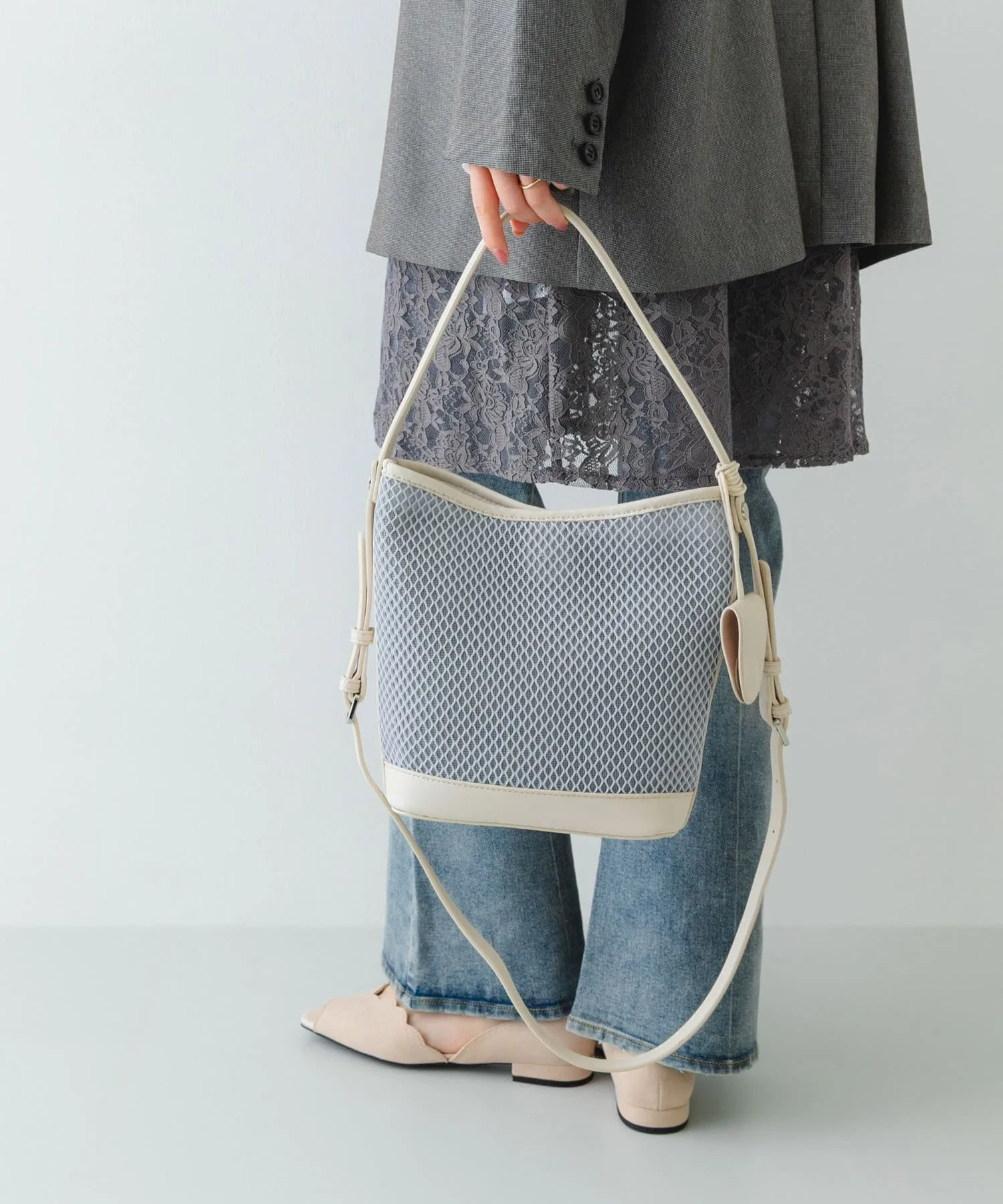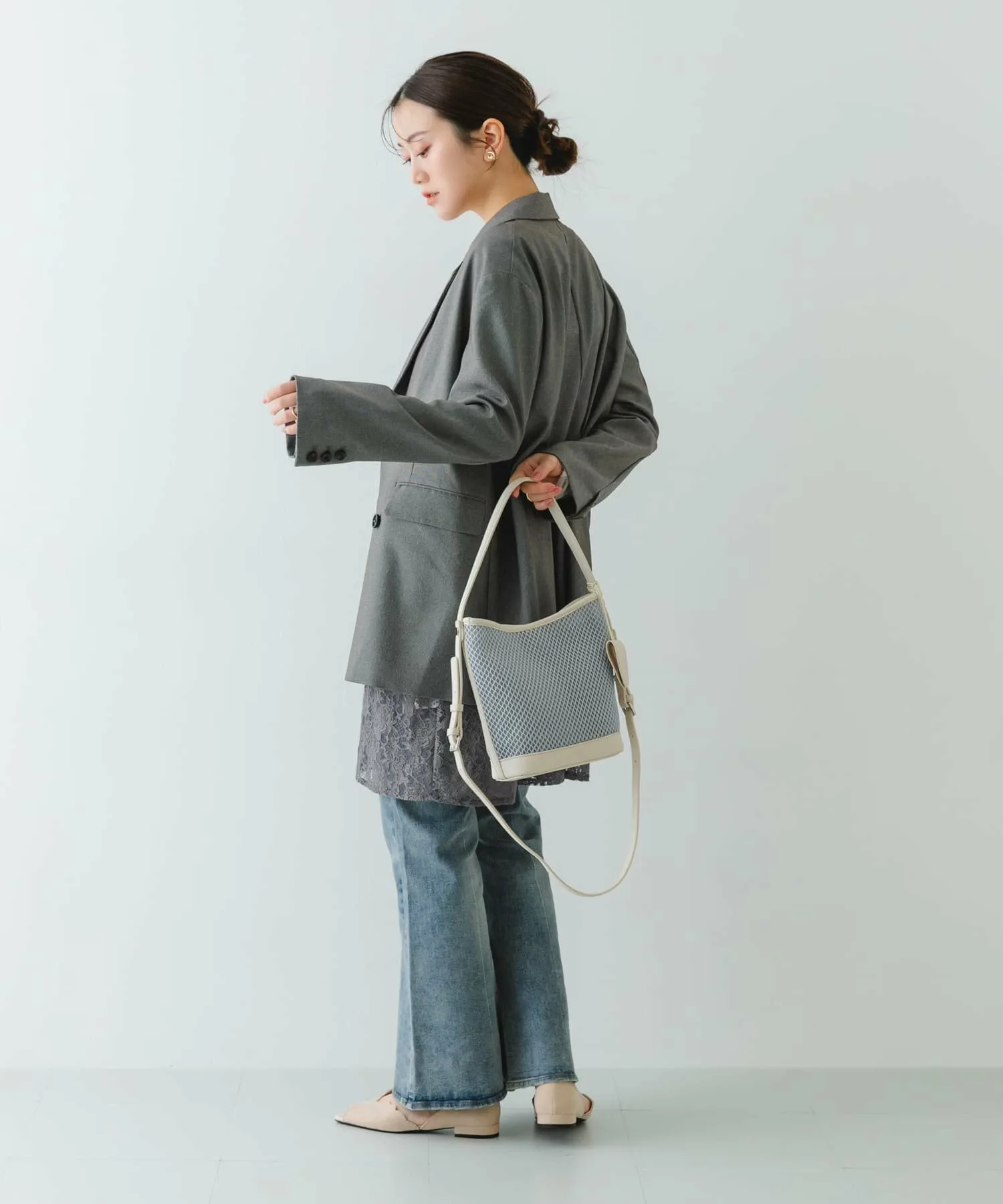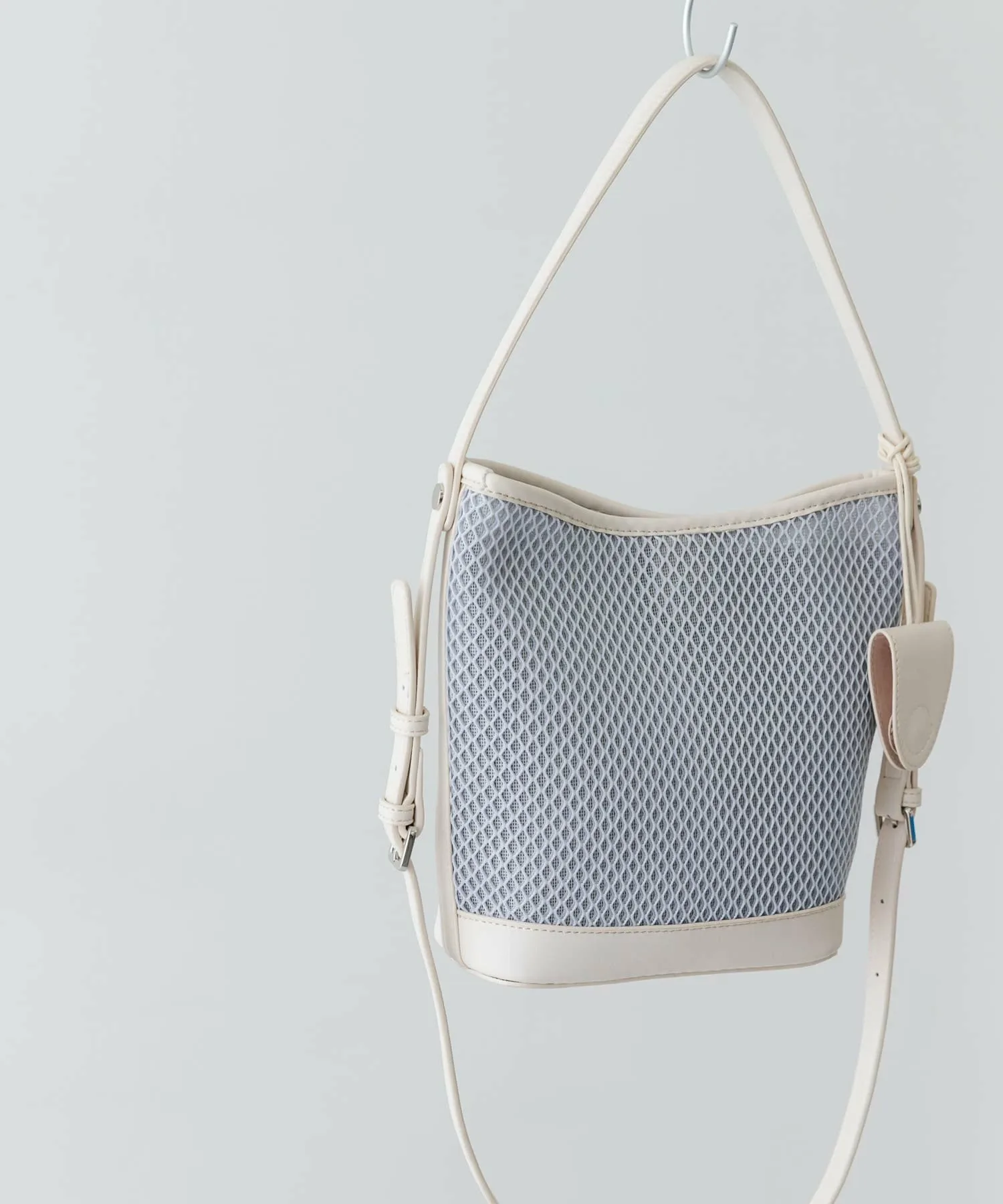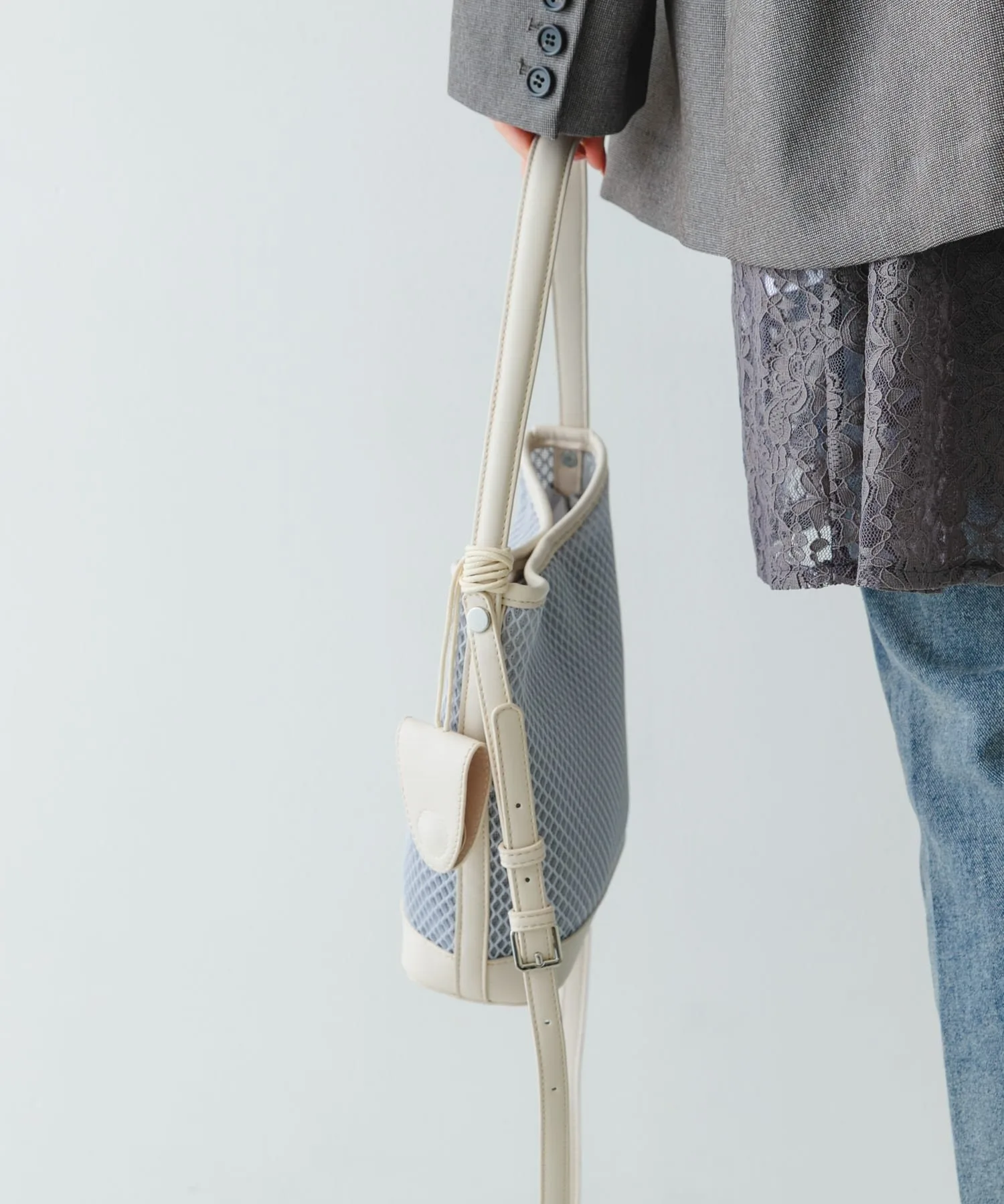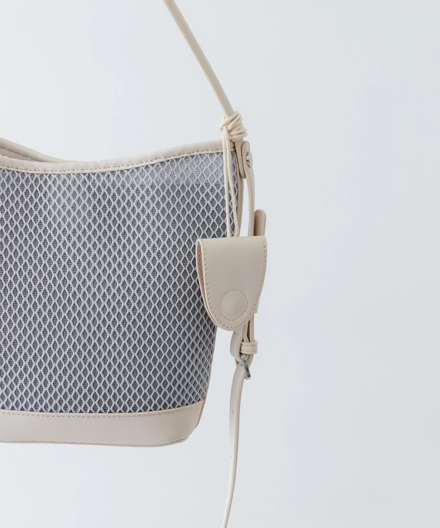 Сетчатый материал обычно создает впечатление непринужденности, но сочетание его с золотой фурнитурой придает ему утонченный вид, не делая его слишком повседневным. Дно имеет прочный шов, обеспечивающий устойчивость и предотвращающий деформацию, несмотря на компактный размер.