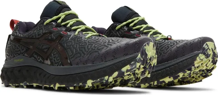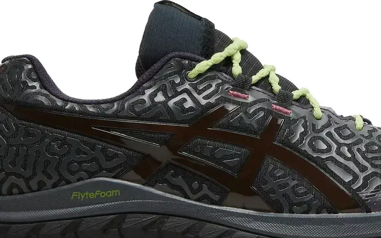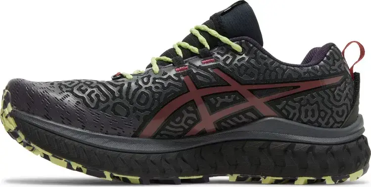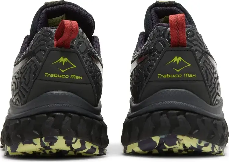 Созданные в сотрудничестве с творческим коллективом из Лос-Анджелеса, кроссовки Brain Dead x ASICS Trabuco Max «Chaos Slime» придают беговым кроссовкам привлекательный вид. Накладка в виде лабиринта, напечатанная на 3D-принтере, покрывает черный текстильный верх из рипстопа, украшенный глянцевыми тигровыми полосами и закрепленный узловатыми веревочными шнурками неоново-зеленого оттенка. Фирменный знак Brain Dead украшает ярлык на язычке, а надпись «Trabuco Max» — на язычке на пятке. Кроссовки установлены на плюшевой промежуточной подошве FLYTEFOAM, поддерживаемой под ногами резиновой подошвой ASICSGRIP с мраморным покрытием, усыпанной наружными выступами.