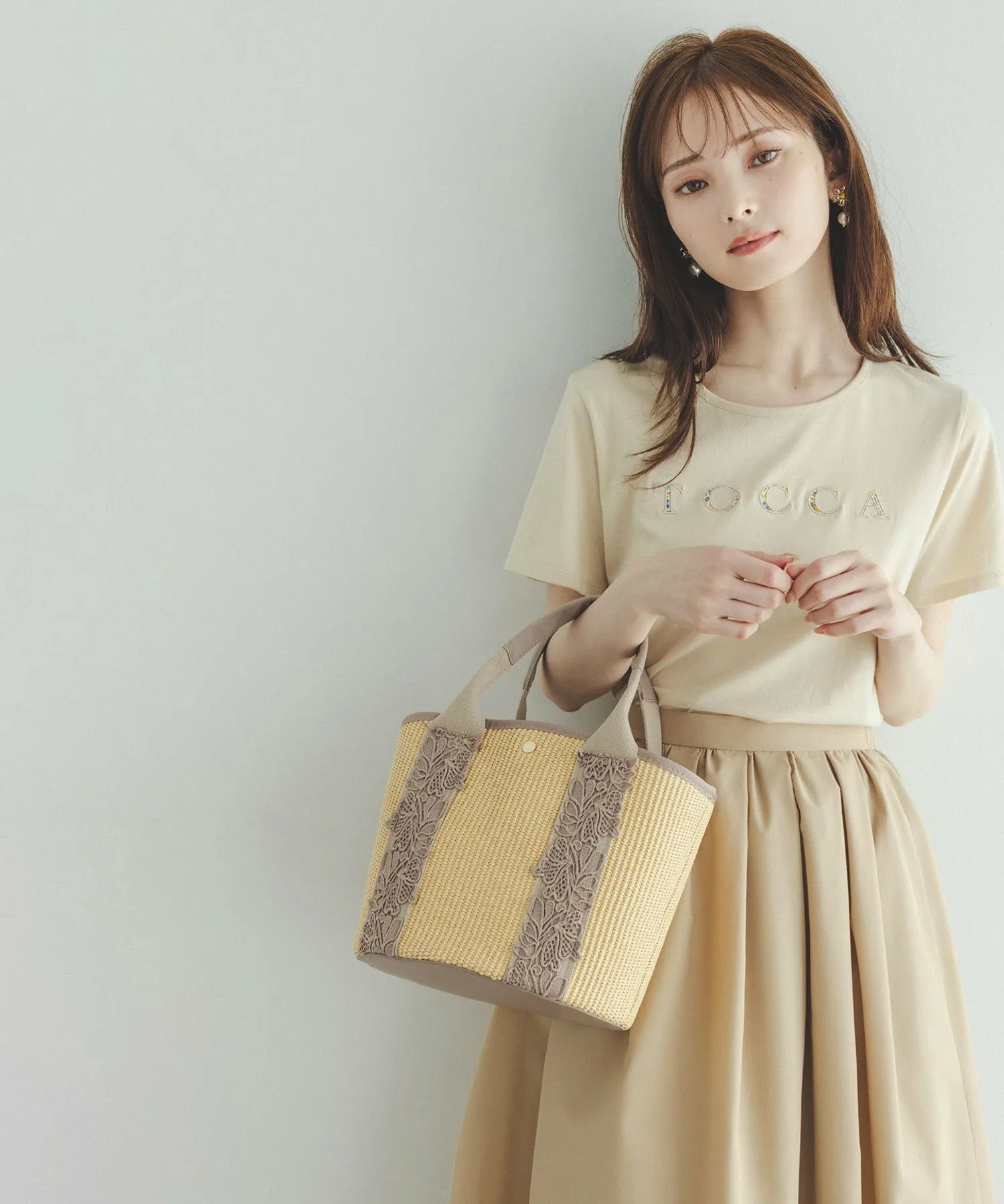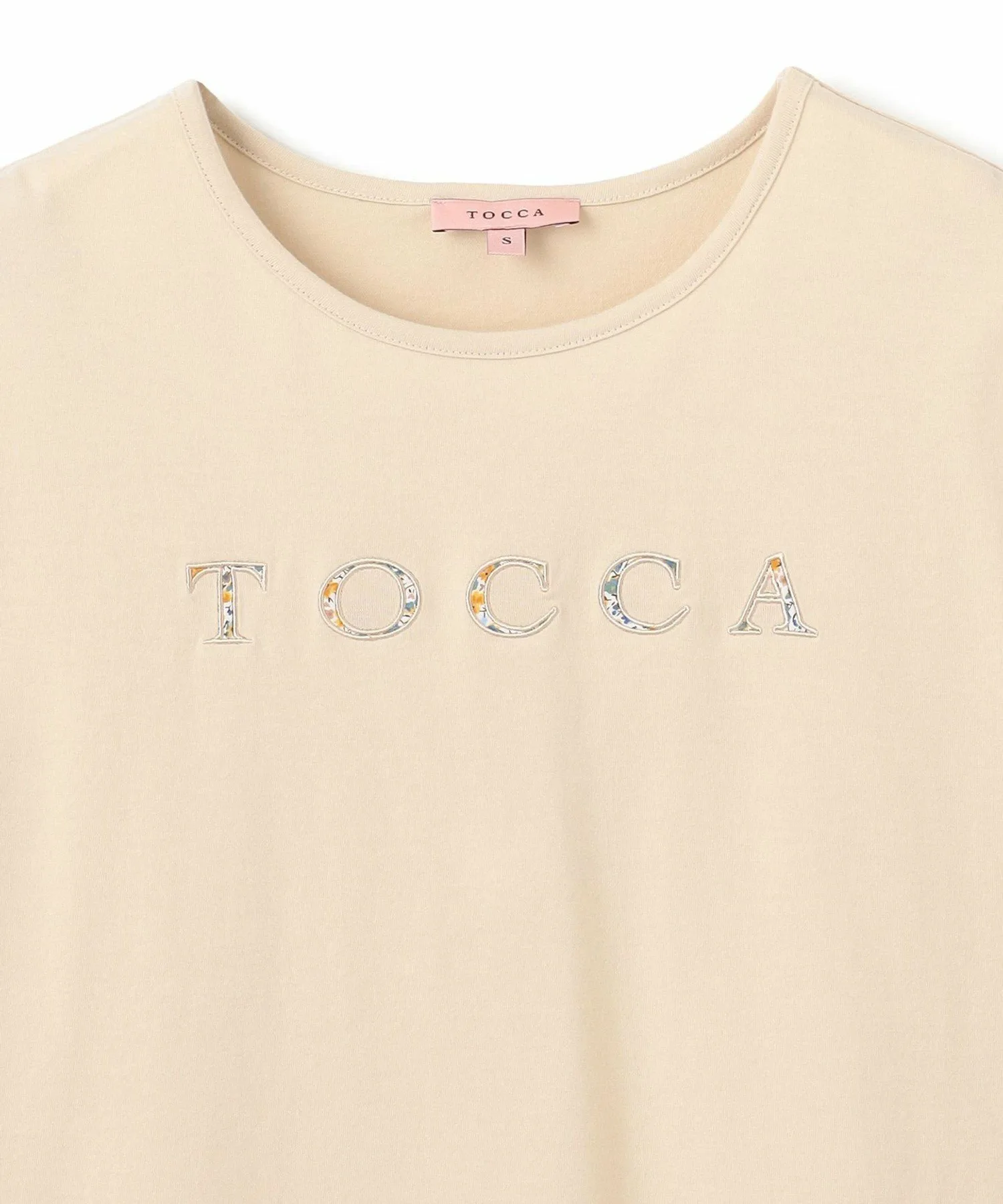 Это классическая футболка TOCCA с текстовым логотипом. В этом сезоне текстовый логотип превращен в цветочный принт, создавая дизайн, полный фирменного стиля TOCCA. Свободный силуэт не подчеркивает линии тела, но при этом излучает женственность, присущую TOCCA. Это рекомендуемая вещь для лета, так как она прекрасно сочетается не только с повседневным стилем, но и с юбками TOCCA.