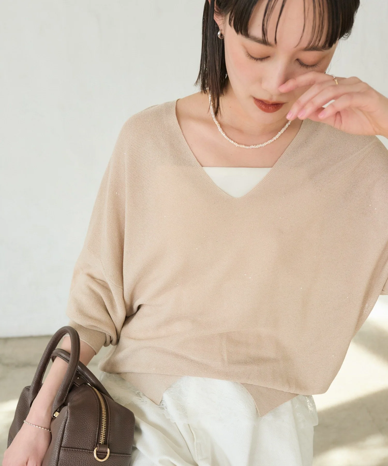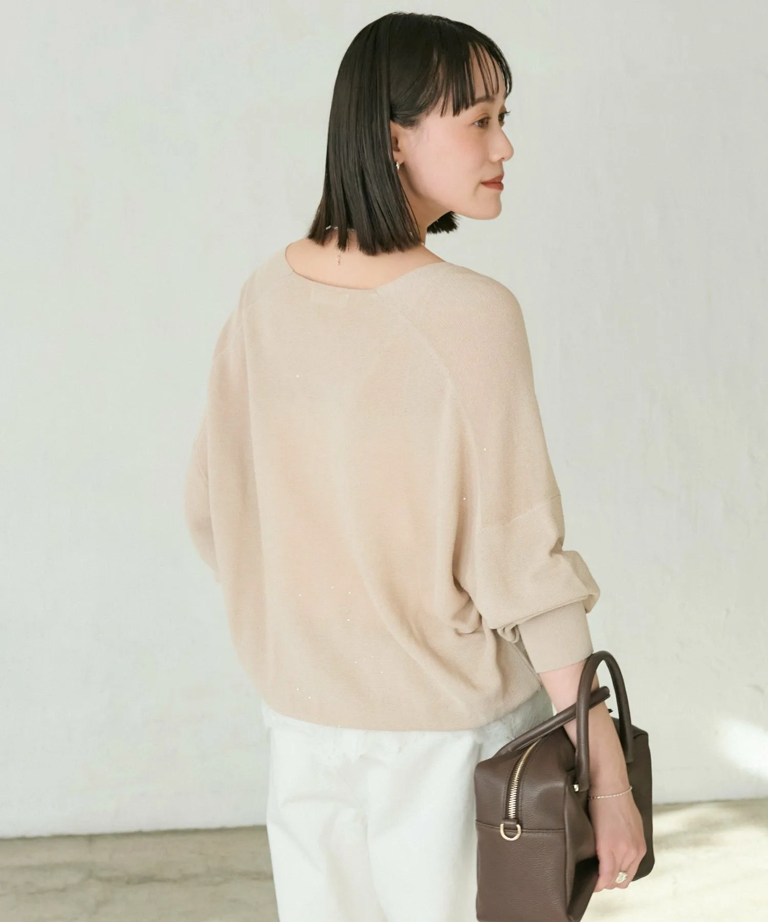 Элегантный трикотажный свитер, добавляющий нотку изысканности благодаря изящным пайеткам.