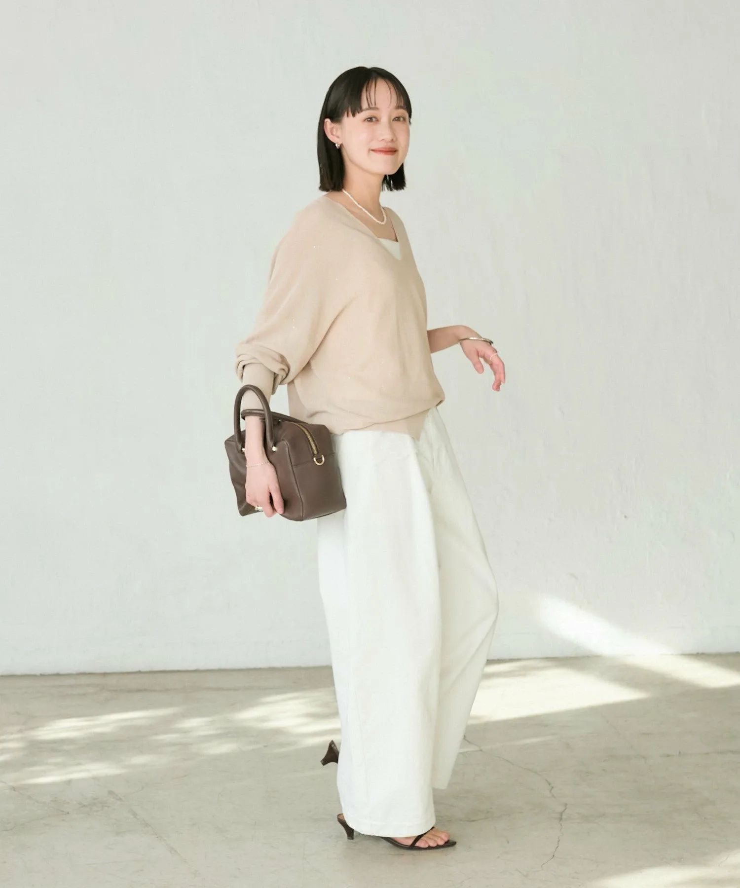 - Силуэт «кокон» на спине подчеркивает свободный крой, а V-образный вырез выгодно выделяет декольте.