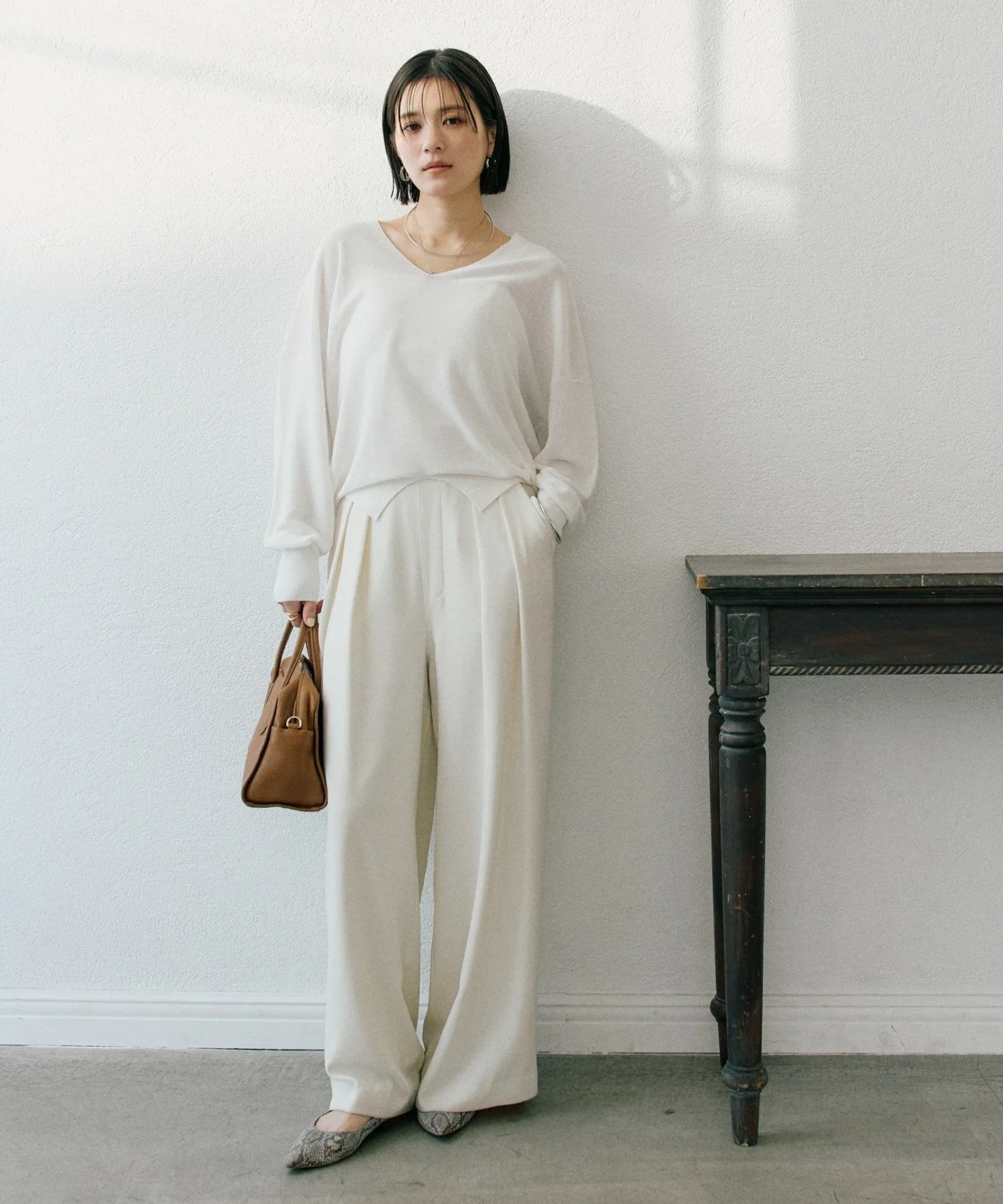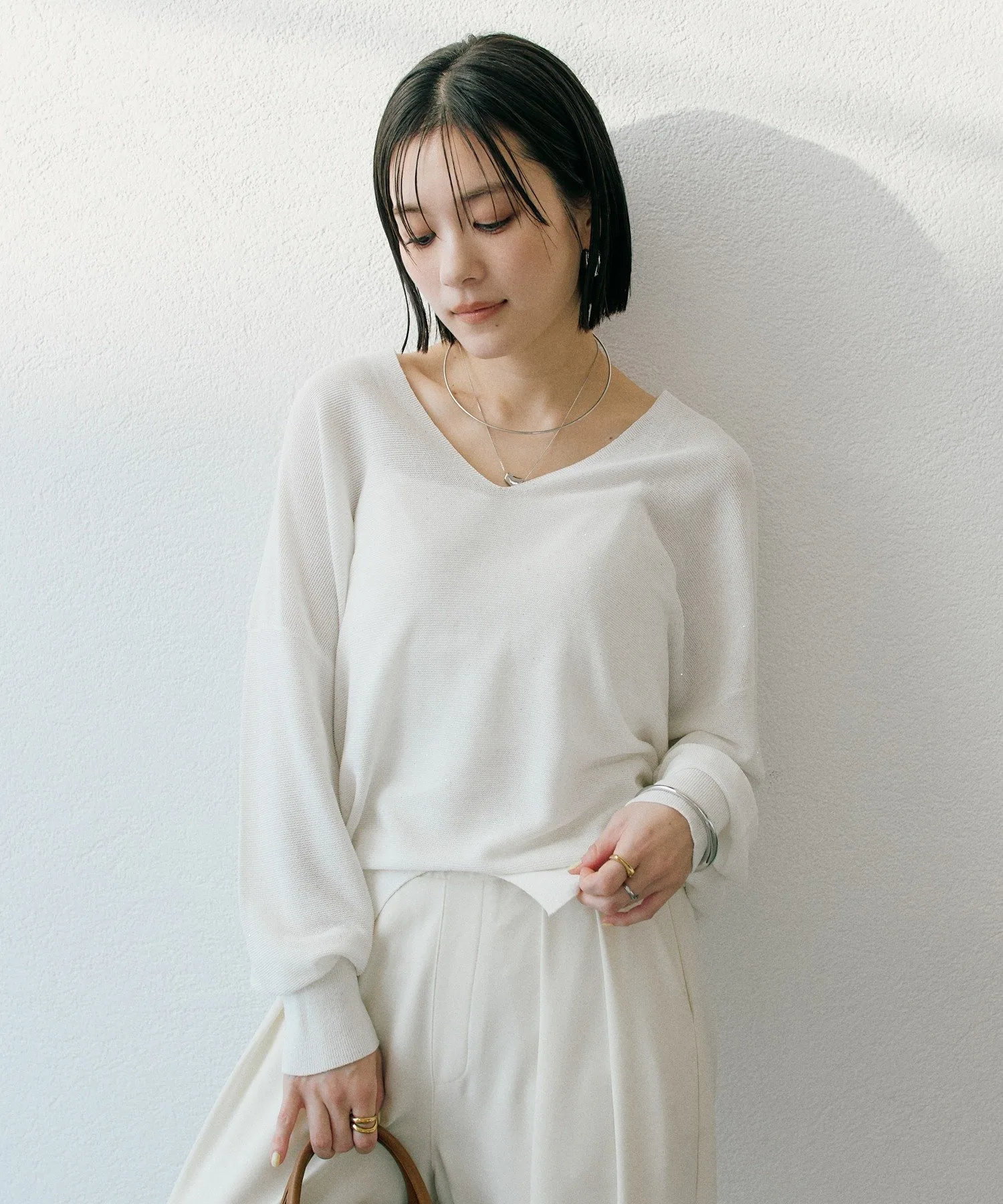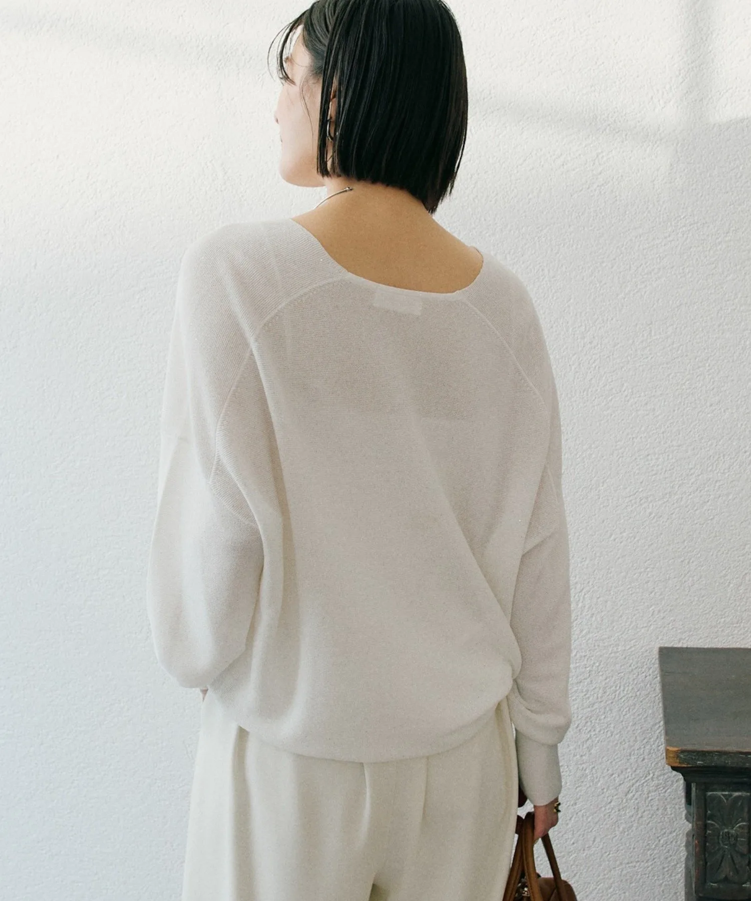 - Силуэт «кокон» на спине подчеркивает свободный крой, а V-образный вырез выгодно выделяет декольте.