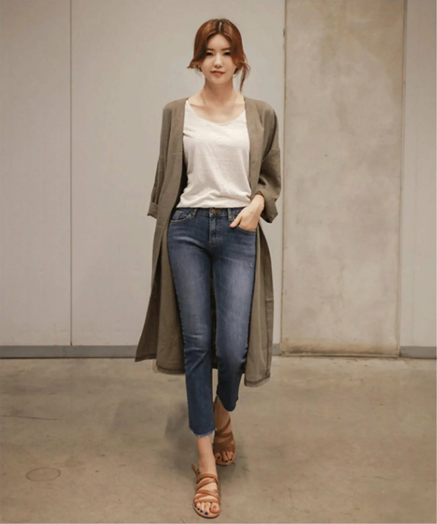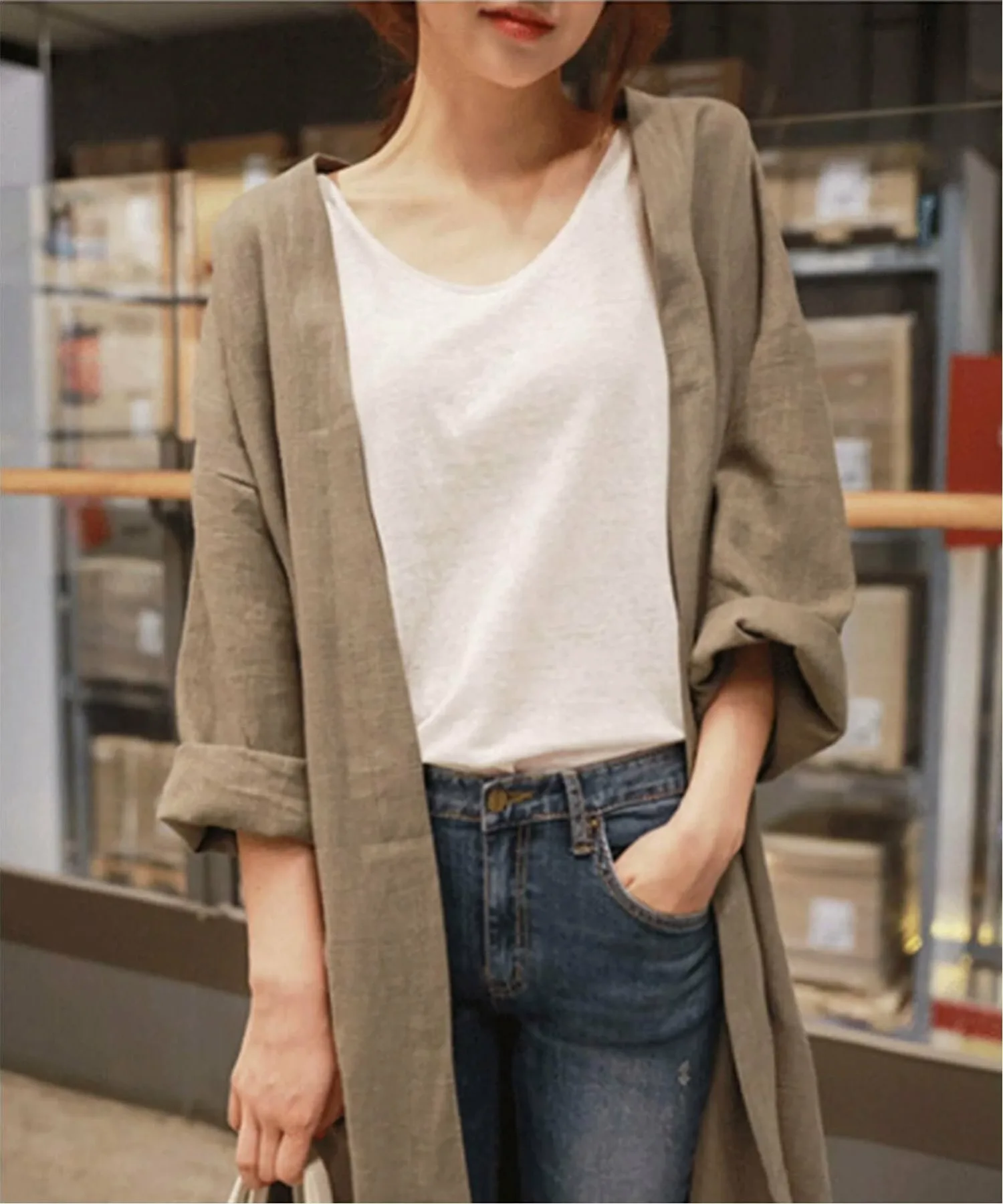 Тонкий, длинный льняной кардиган идеально подходит для весны и начала осени.