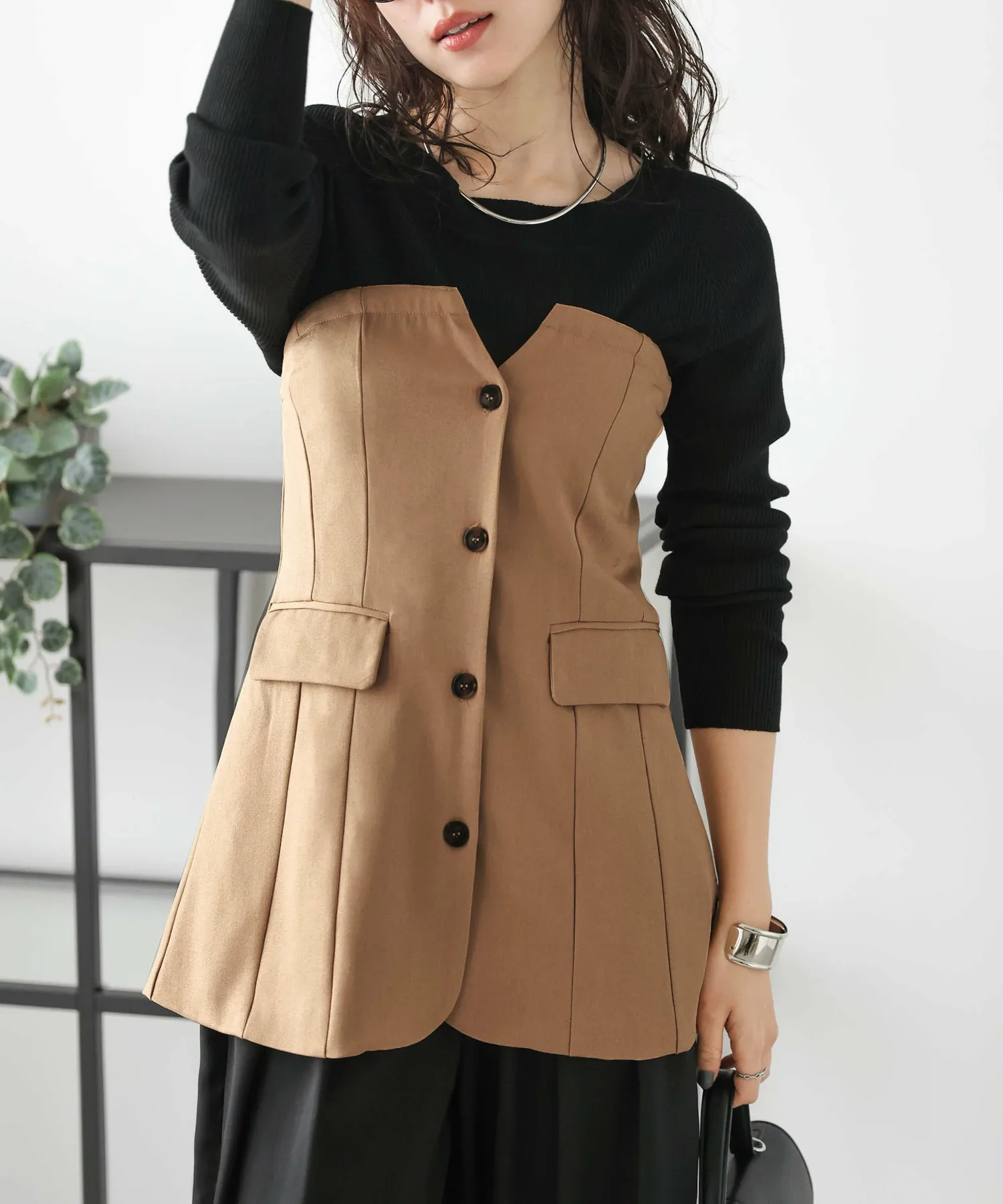 Дизайн с пуговицами спереди, напоминающий жакет,