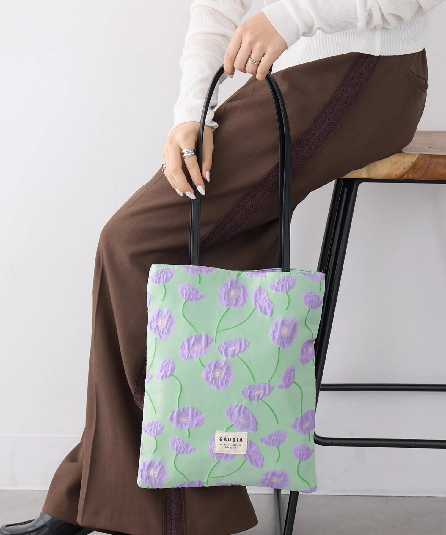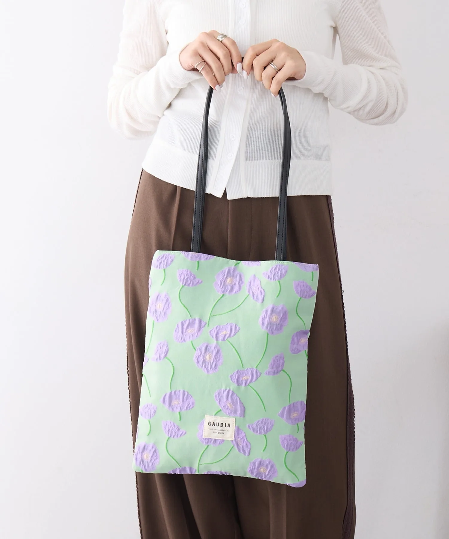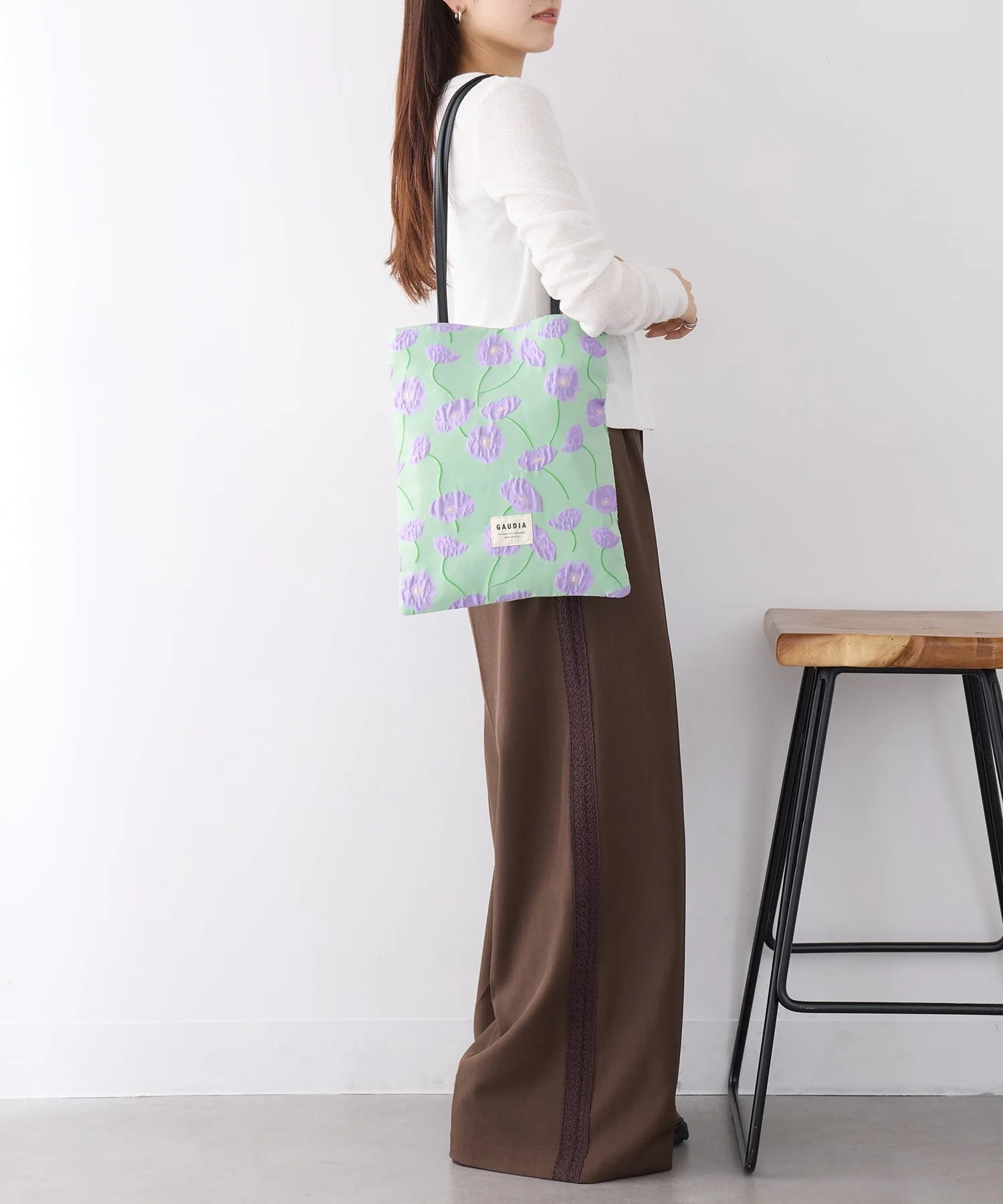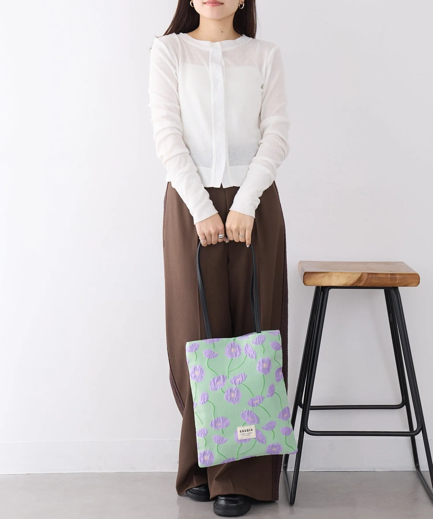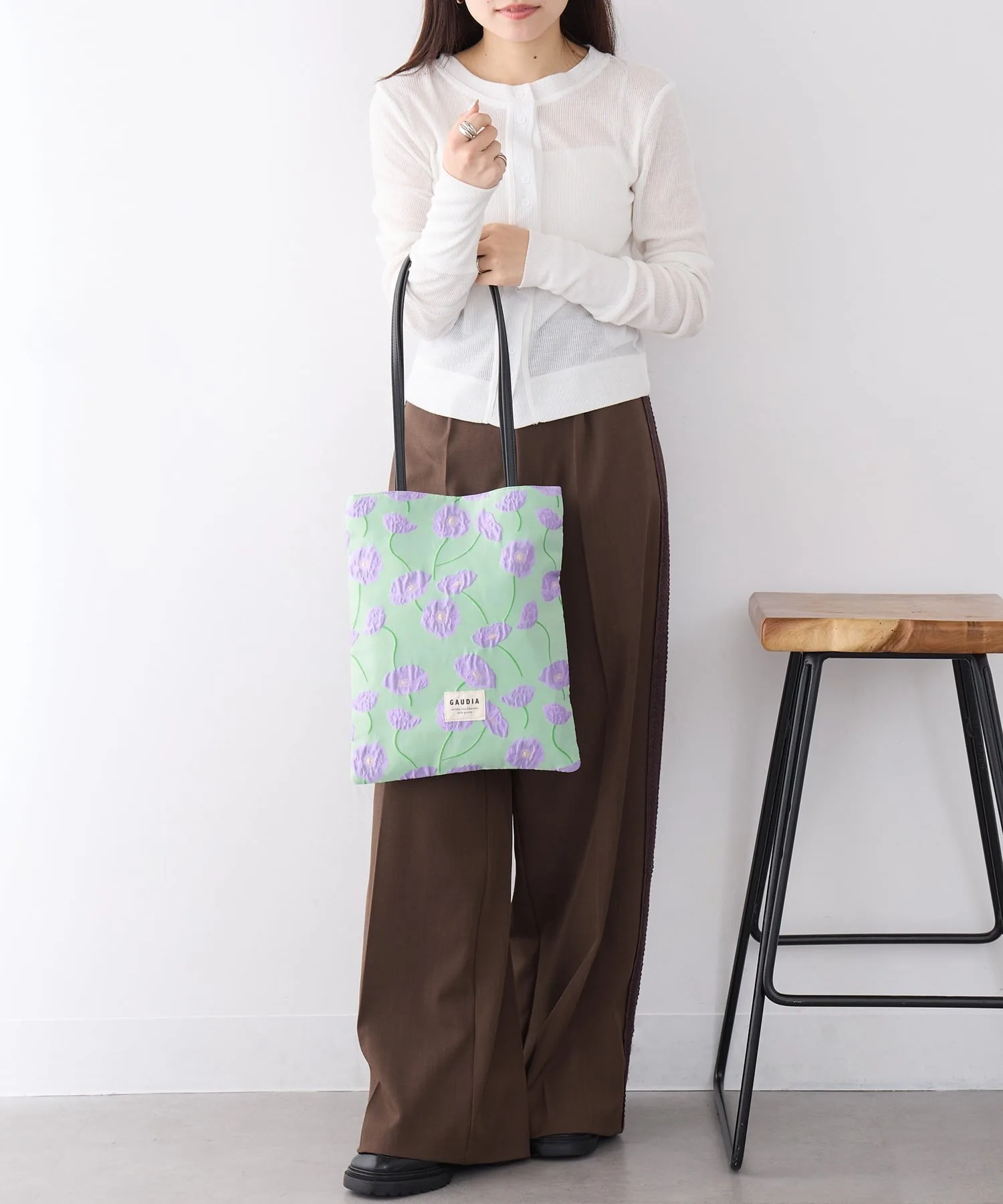 Координация・Женственный однотонный наряд, который подчеркивает цветочную вышивку на сумке в сочетании с простым белым длинным платьем. ・Включенная в классический повседневный образ из джинсов и футболки, трехмерная текстура добавляет нотку взрослой игривости и элегантности. ・Сочетайте с элегантными брюками и жилетом для изысканного городского стиля, в котором ценится контраст текстур. ・Сочетайте с топом нежно-пастельного цвета для создания весенне-летнего образа с использованием сочетания цветов для выхода в свет.