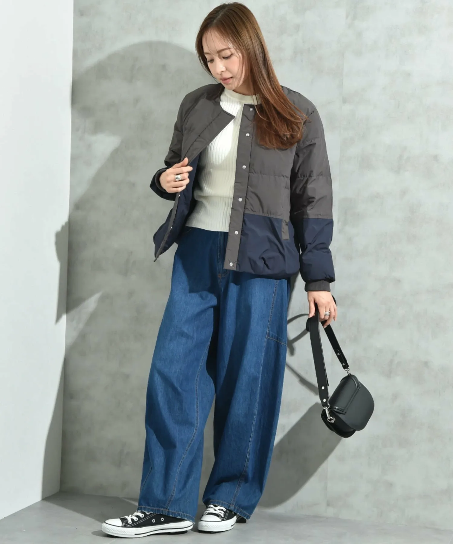 Силуэт мягко облегает тело, идеально дополняя изысканный повседневный стиль. Простой дизайн делает ее универсальной, а легко сочетаемая длина позволяет легко комбинировать разные вещи. Несмотря на повседневный вид, сочетайте ее с женственной юбкой или платьем для создания изысканного сезонного образа. Черный и кремовый цвета легко сочетаются друг с другом, а угольно-серый добавляет цветовой акцент с помощью тонких деталей.