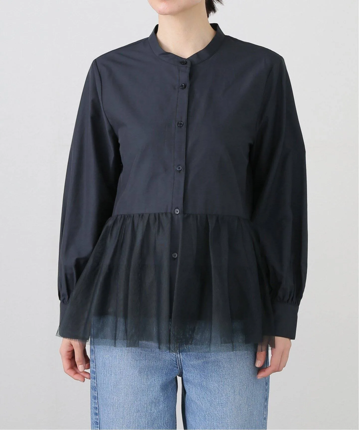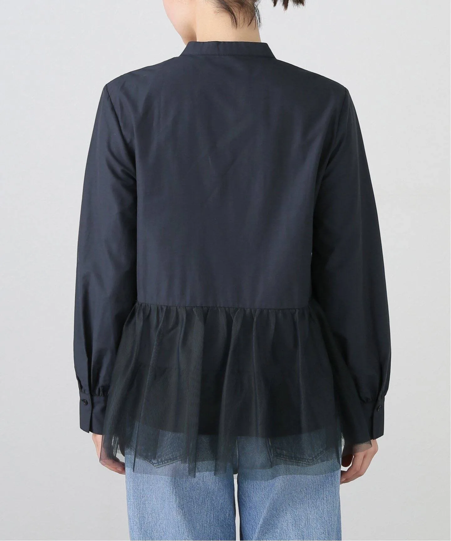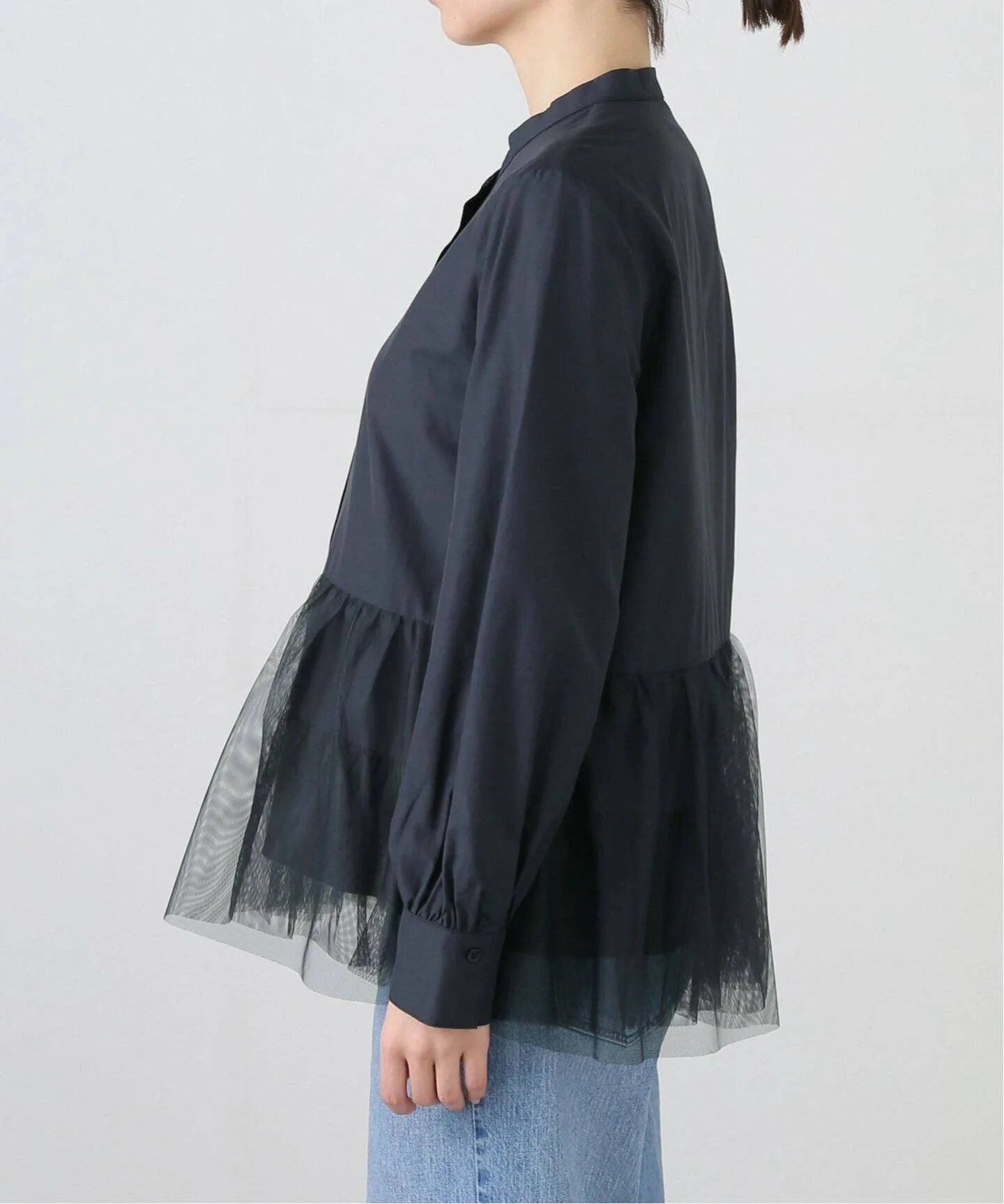 Эта туника-блузка отличается привлекательным сочетанием элегантной рубашеобразной ткани и прозрачного тюля.