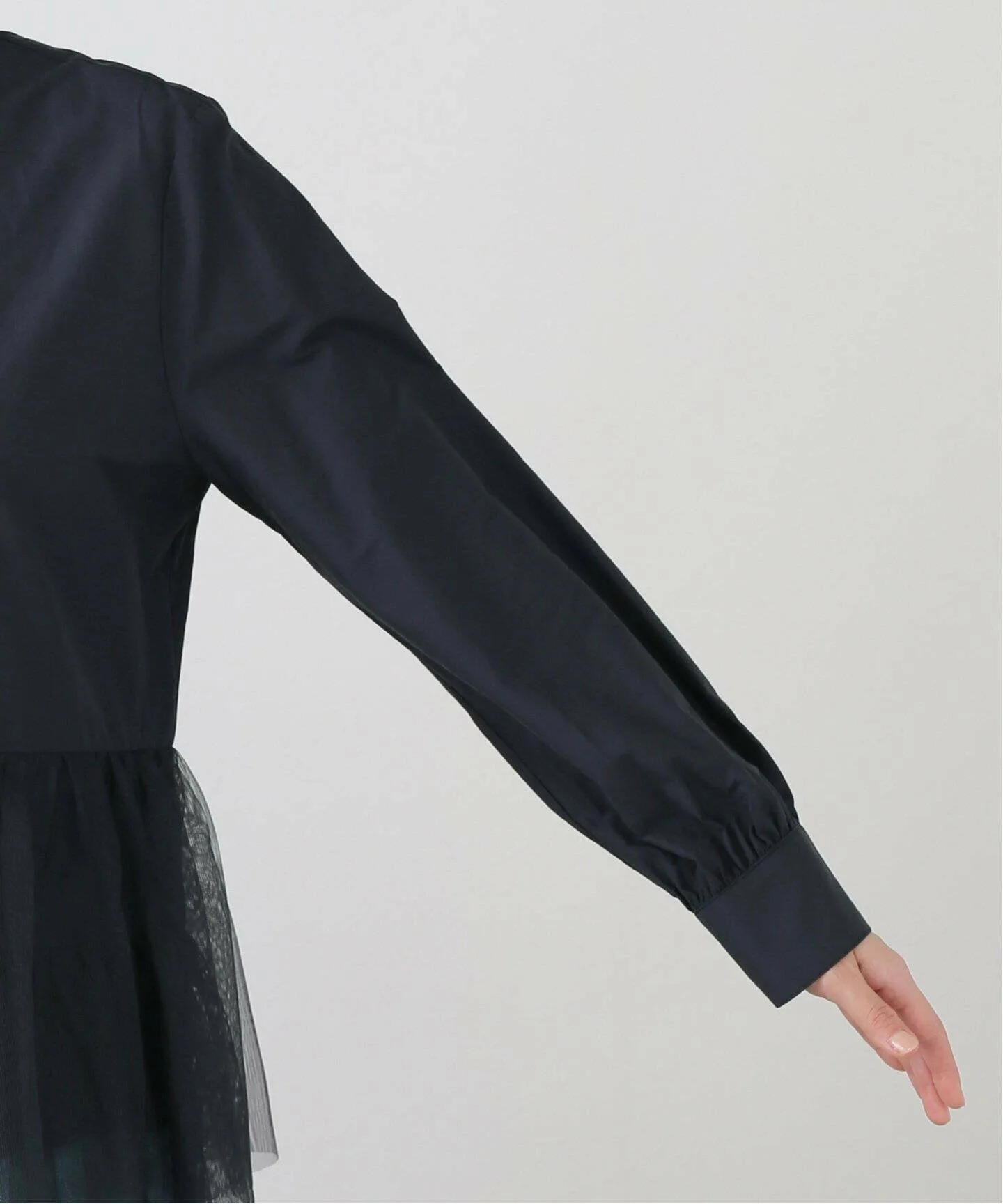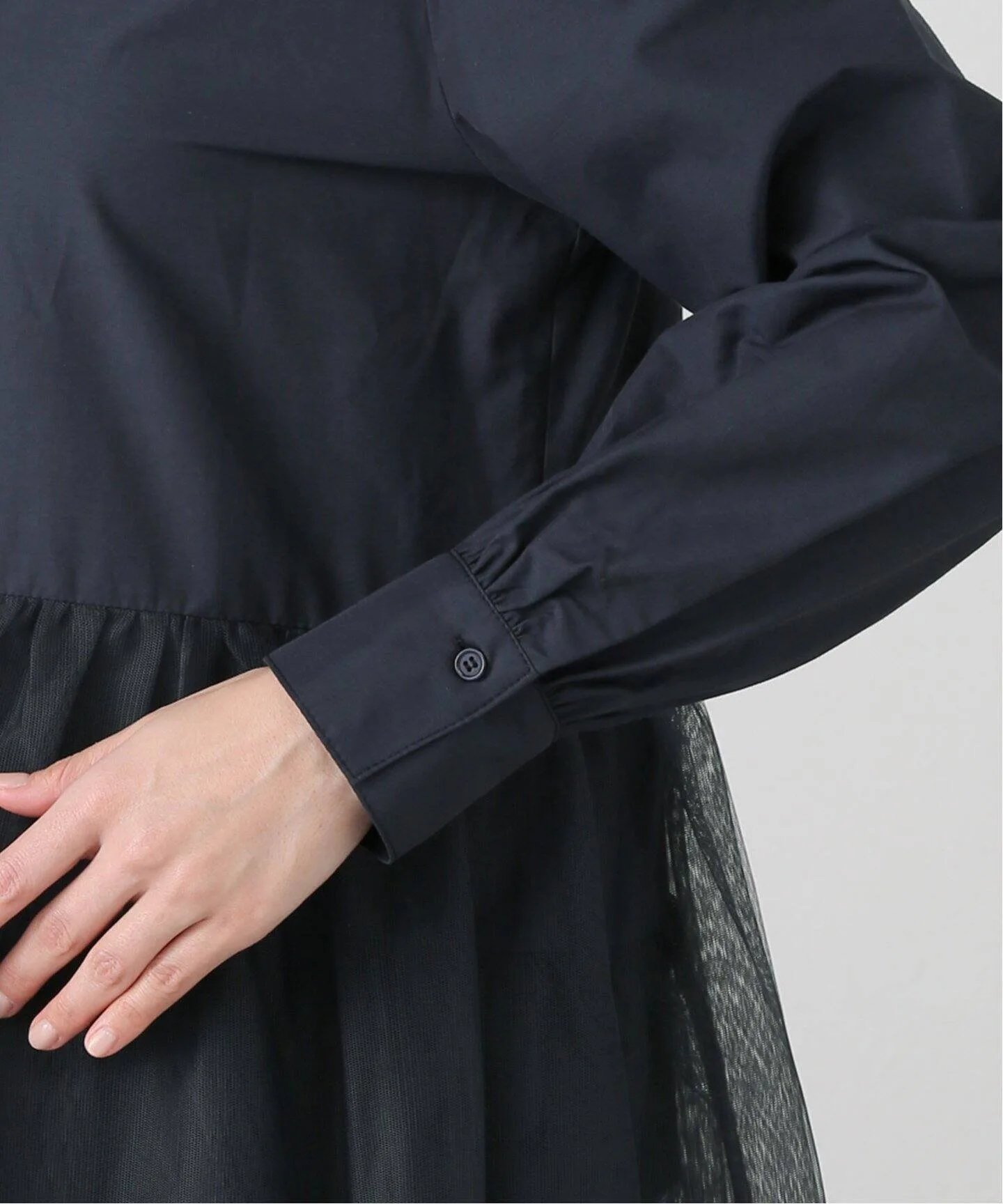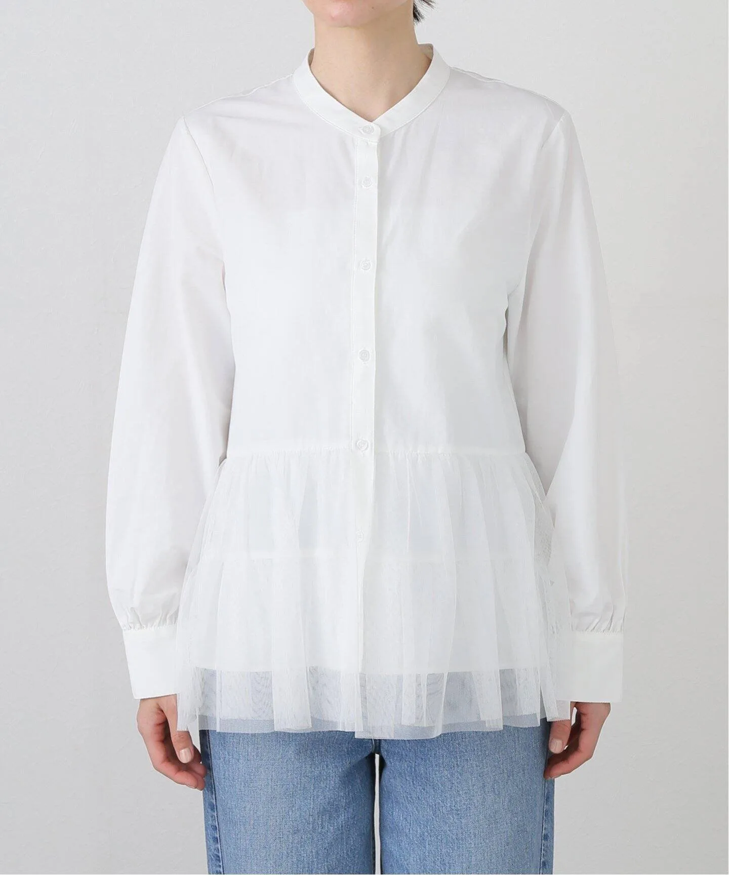 Эта туника-блузка отличается привлекательным сочетанием элегантной рубашеобразной ткани и прозрачного тюля.