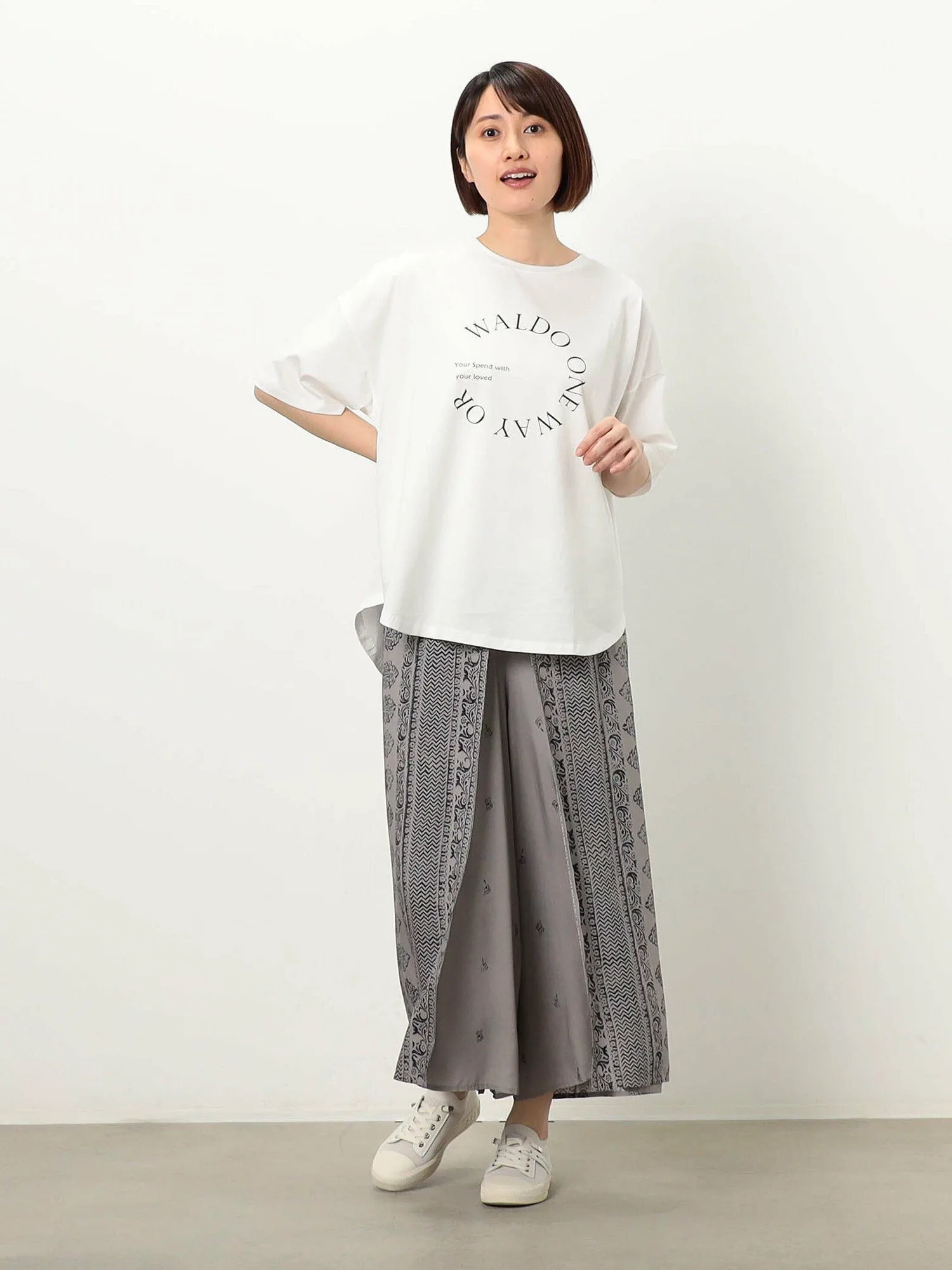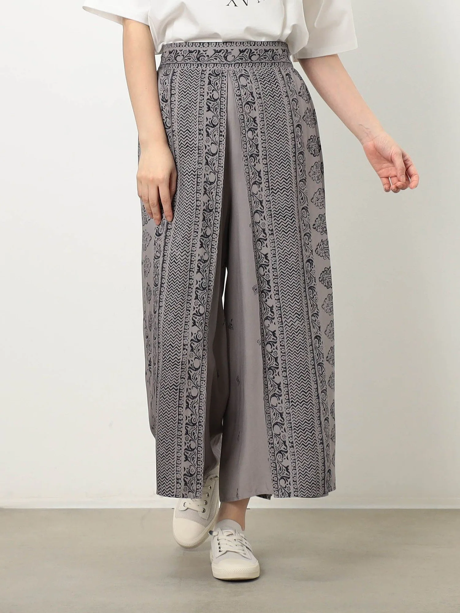 [WALDO] Эти брюки с принтом в виде панелей выглядят как бесшовная юбка-обертка по бокам. Эластичный пояс обеспечивает свободную посадку. Двухцветный контраст создает изысканный образ. Изготовленные из моющегося вискозного волокна, их можно носить круглый год.