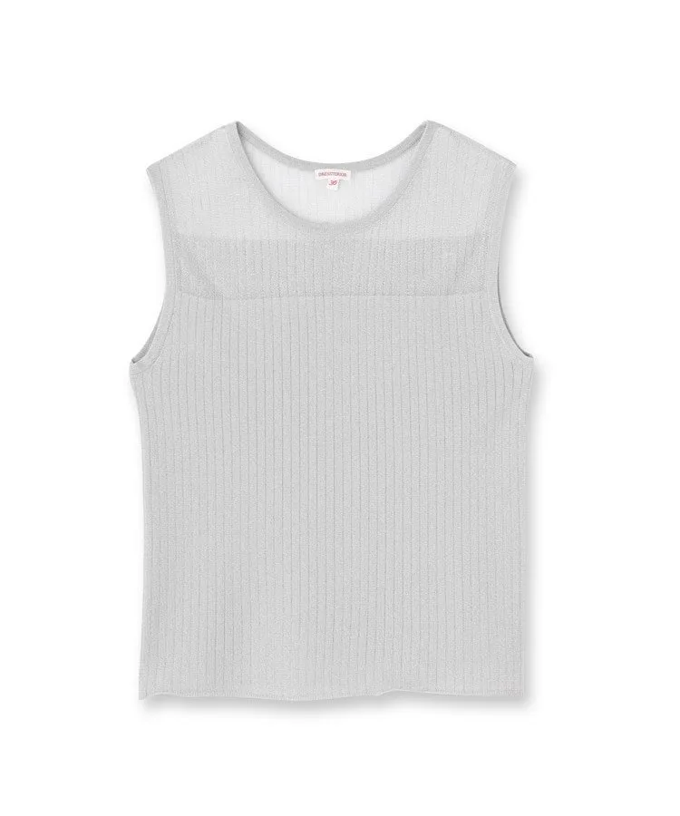 Это трикотажное изделие без рукавов имеет прозрачную вставку от груди до шеи, создавая ощущение расслабленности при ношении.