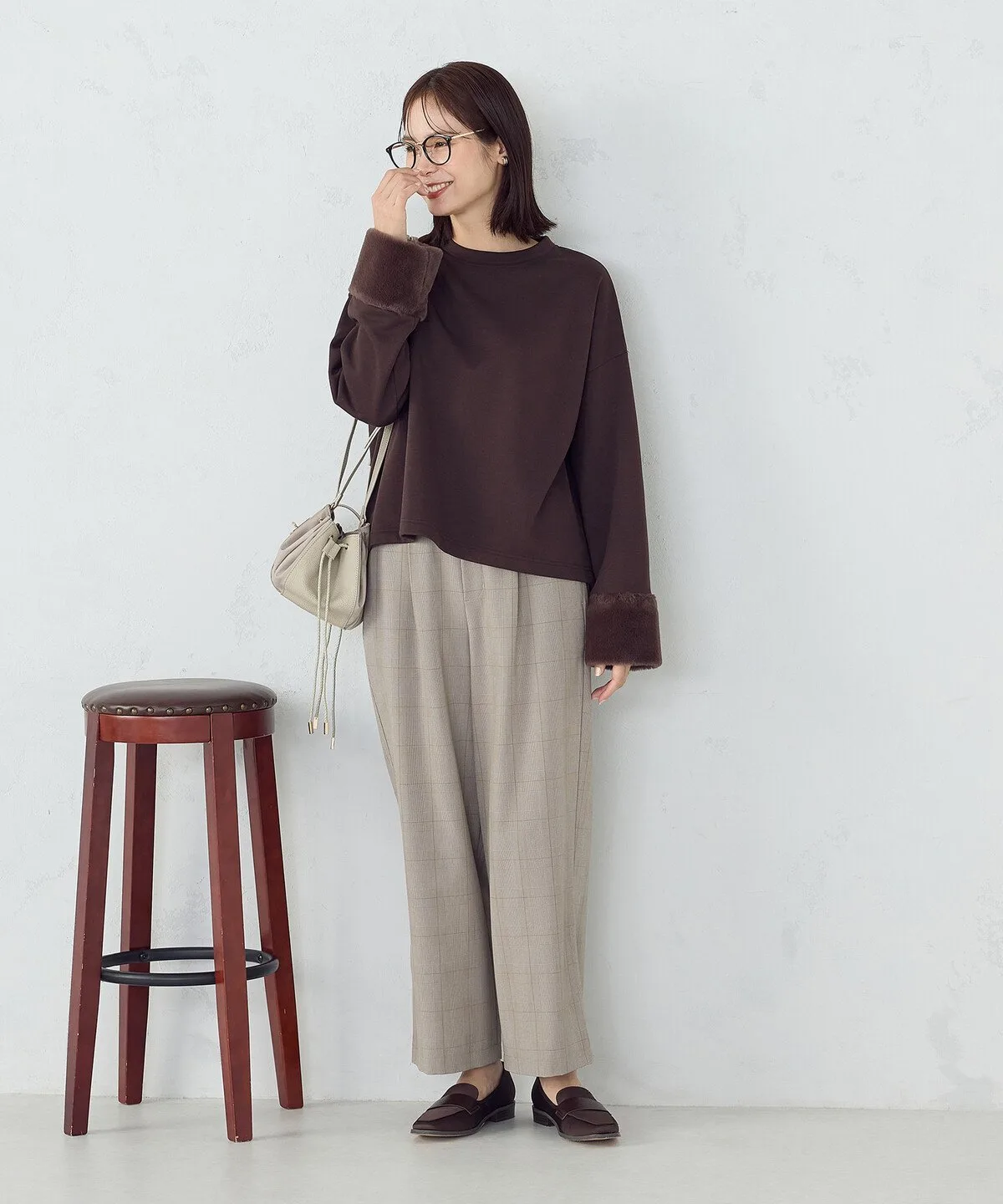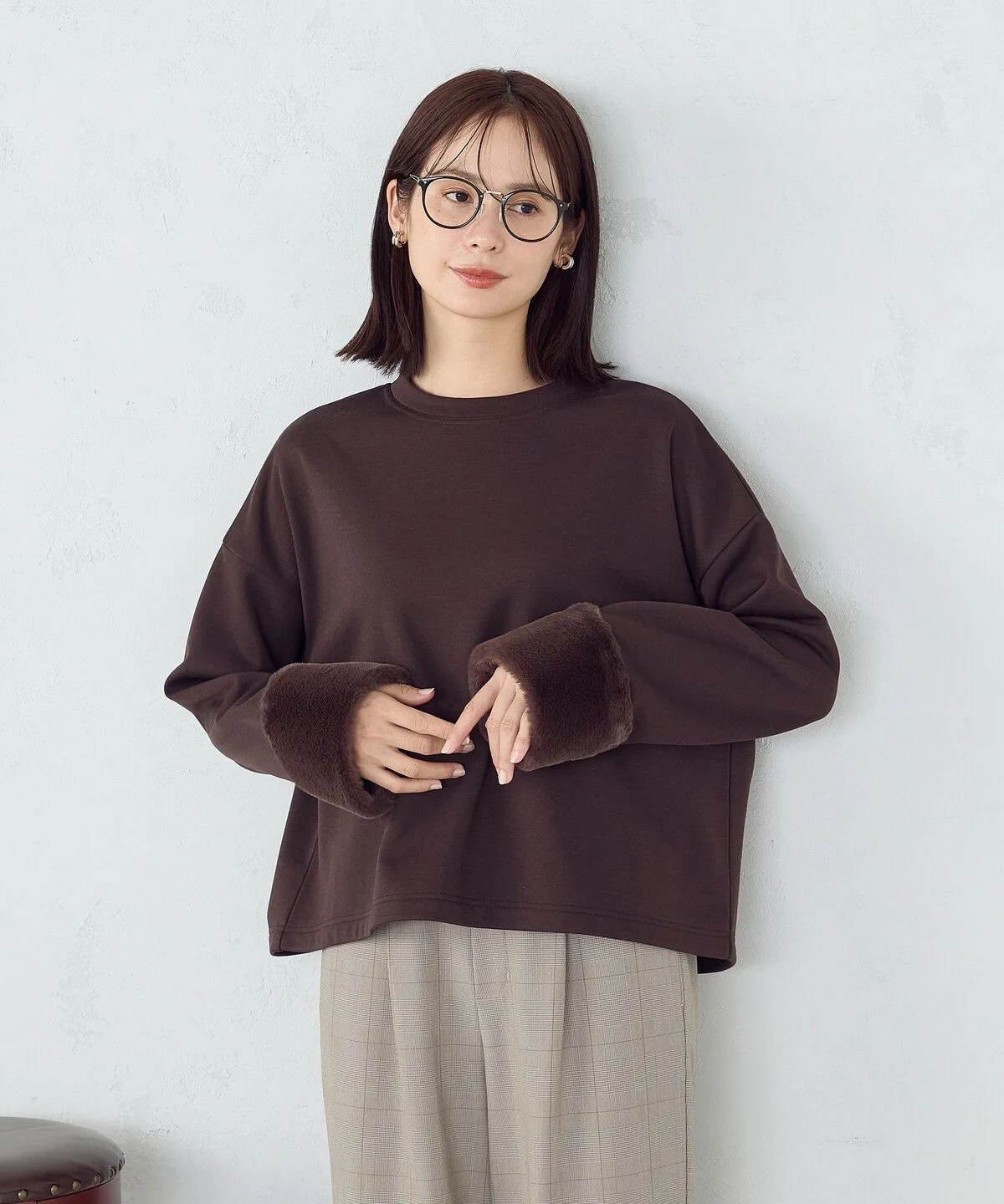 Пуловер из комбинированных материалов с эффектным мехом на манжетах.