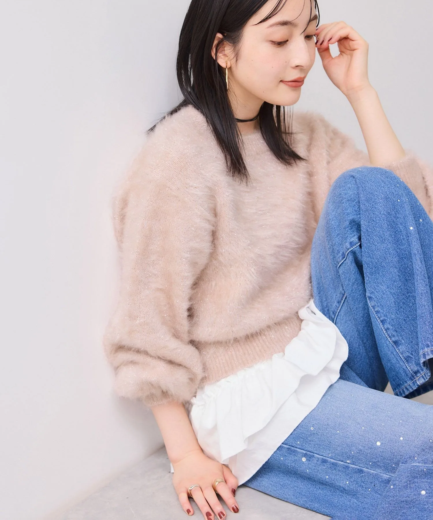 Вязаный пуловер с блестящей металлизированной пряжей и нежным ворсом. [Осень/Зима 2025] [Осень/Зима 2025]