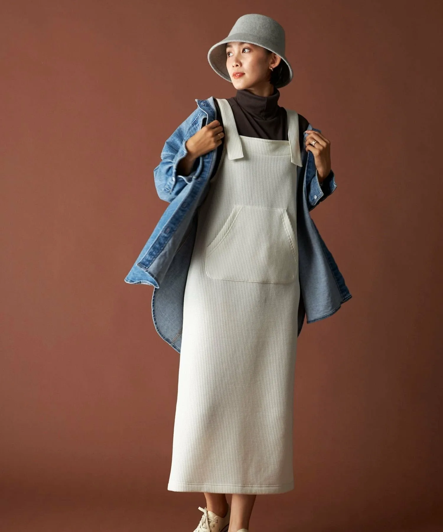Его можно сочетать с любым стилем, включая футболки с длинными рукавами, толстовки с круглым вырезом, худи и топы с высоким воротником.◎