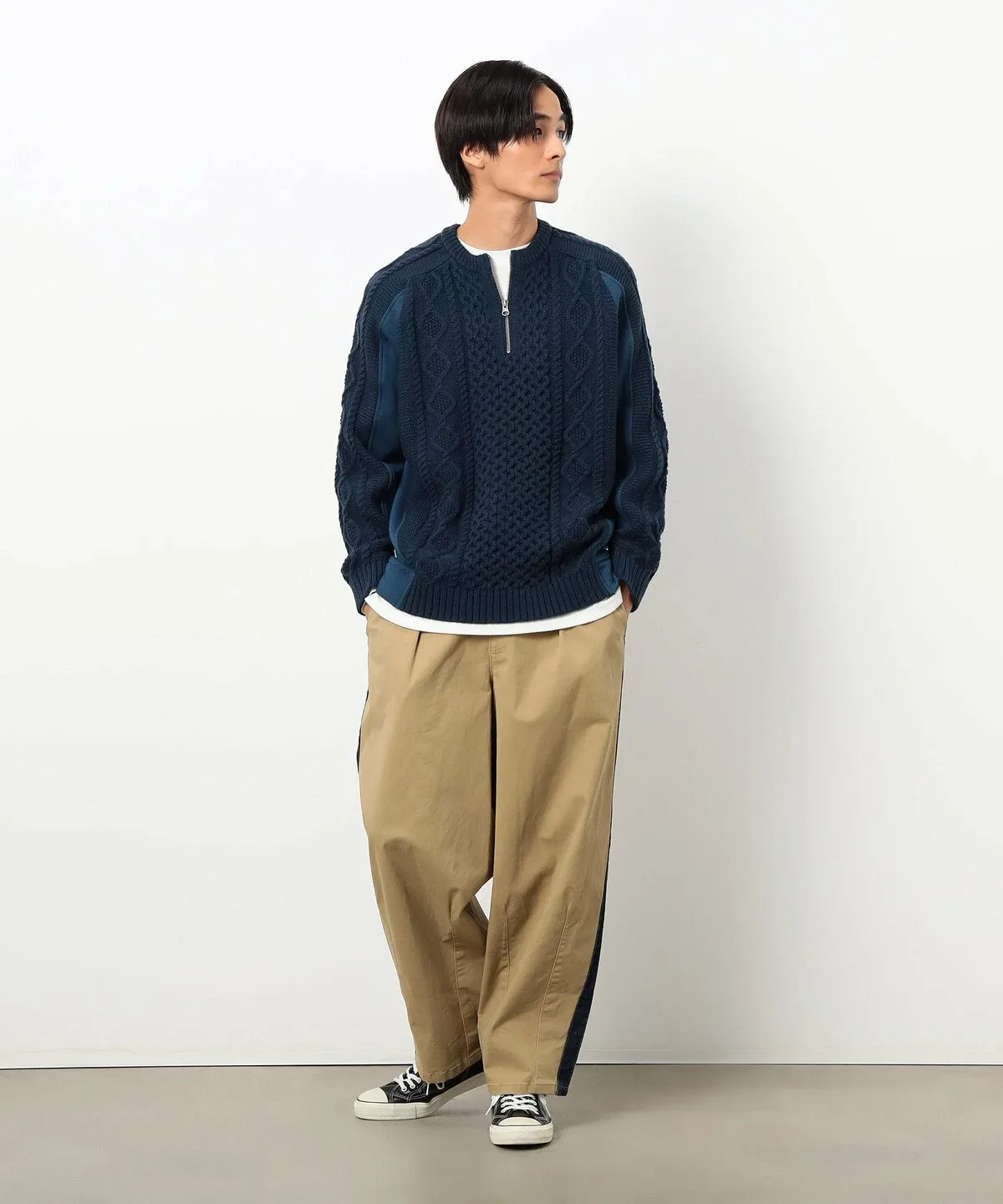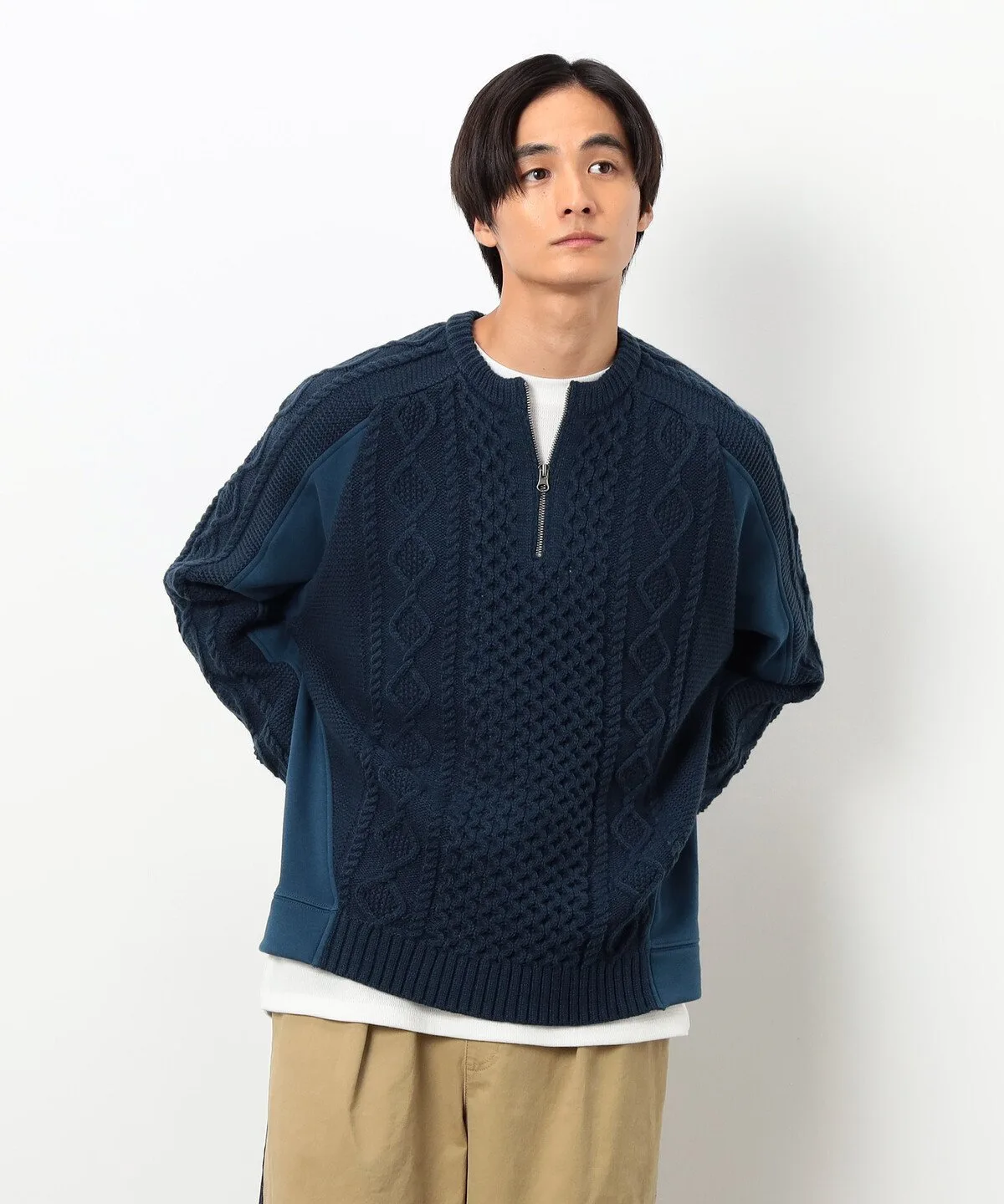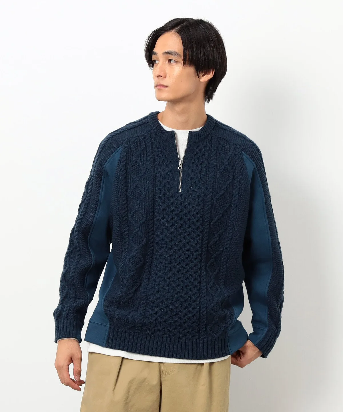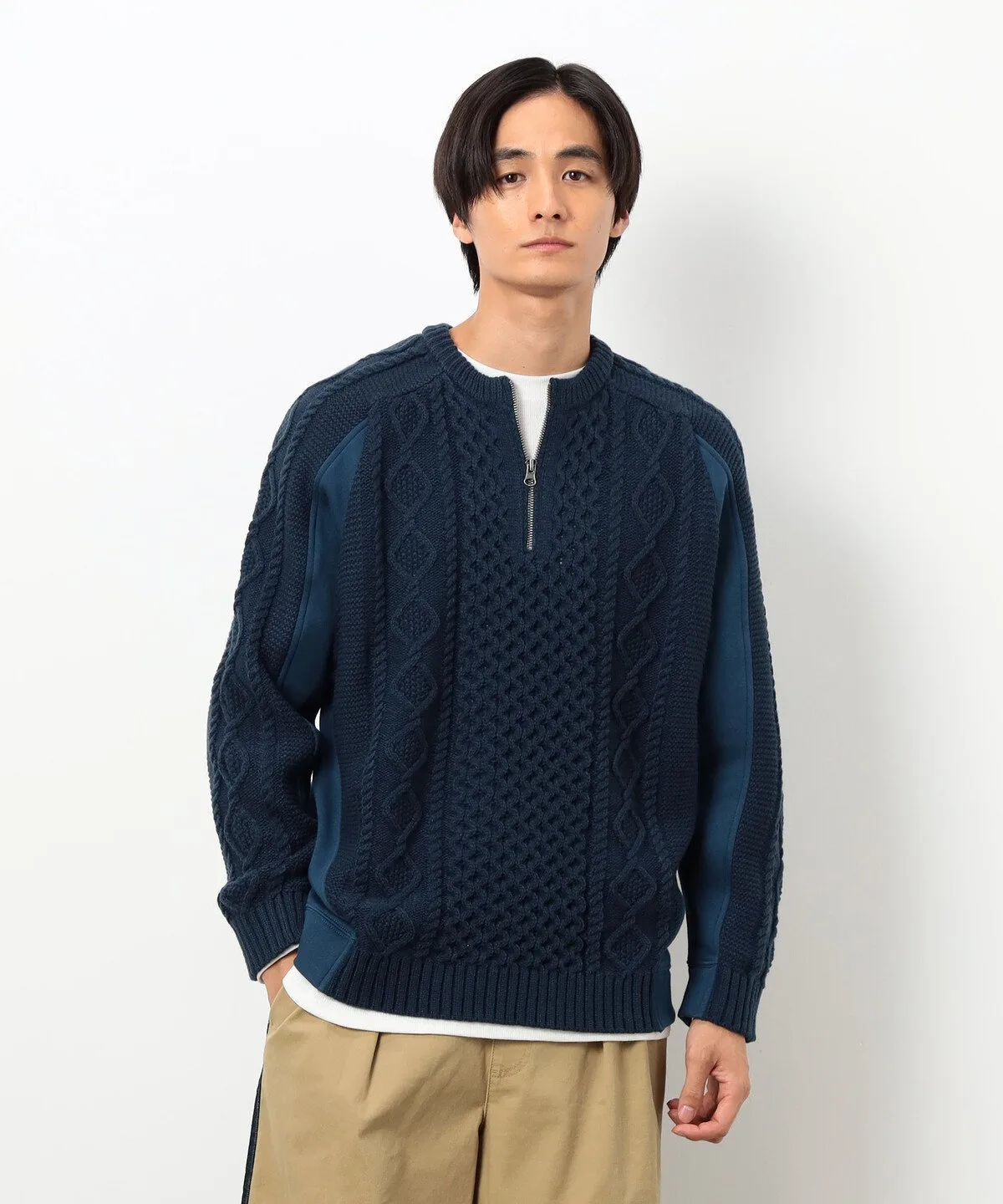 Застежка-молния до середины груди придает свежий вид этому классическому зимнему вязаному топу в стиле Аран.