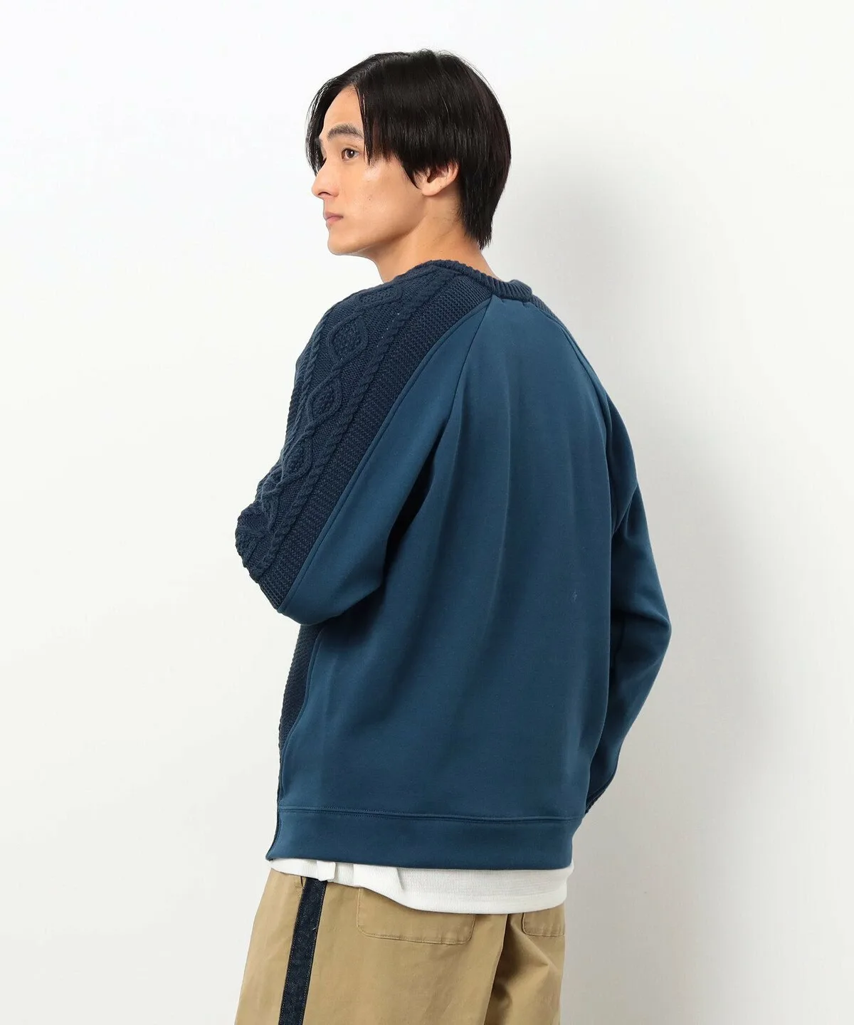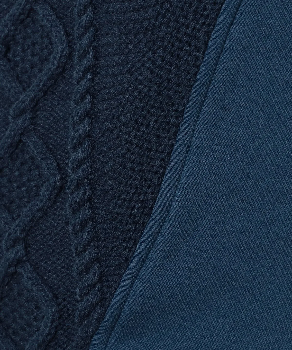 Передняя часть и верхняя часть рукавов выполнены в стиле Аран, а подмышки и спинка имеют флисовую подкладку.