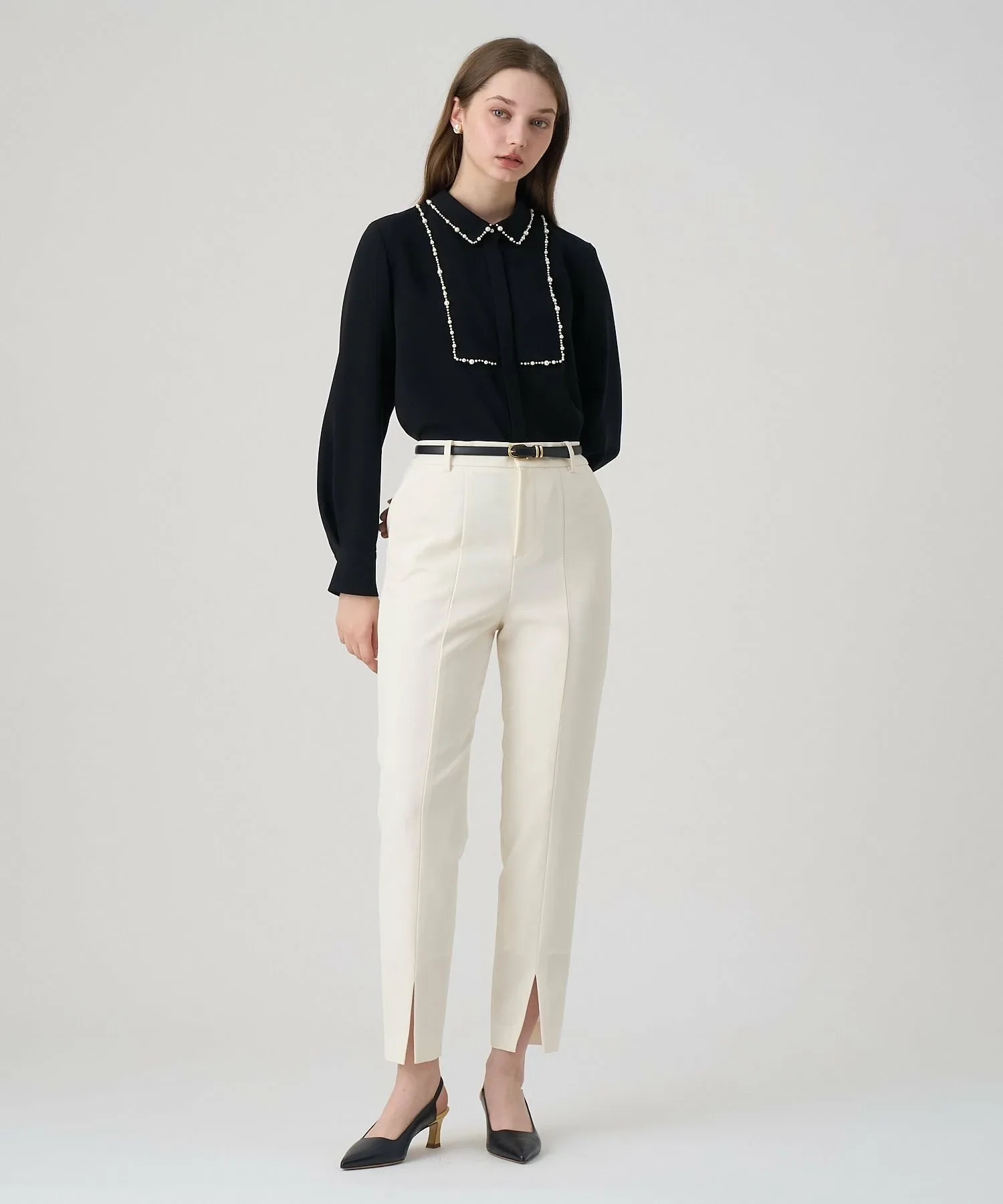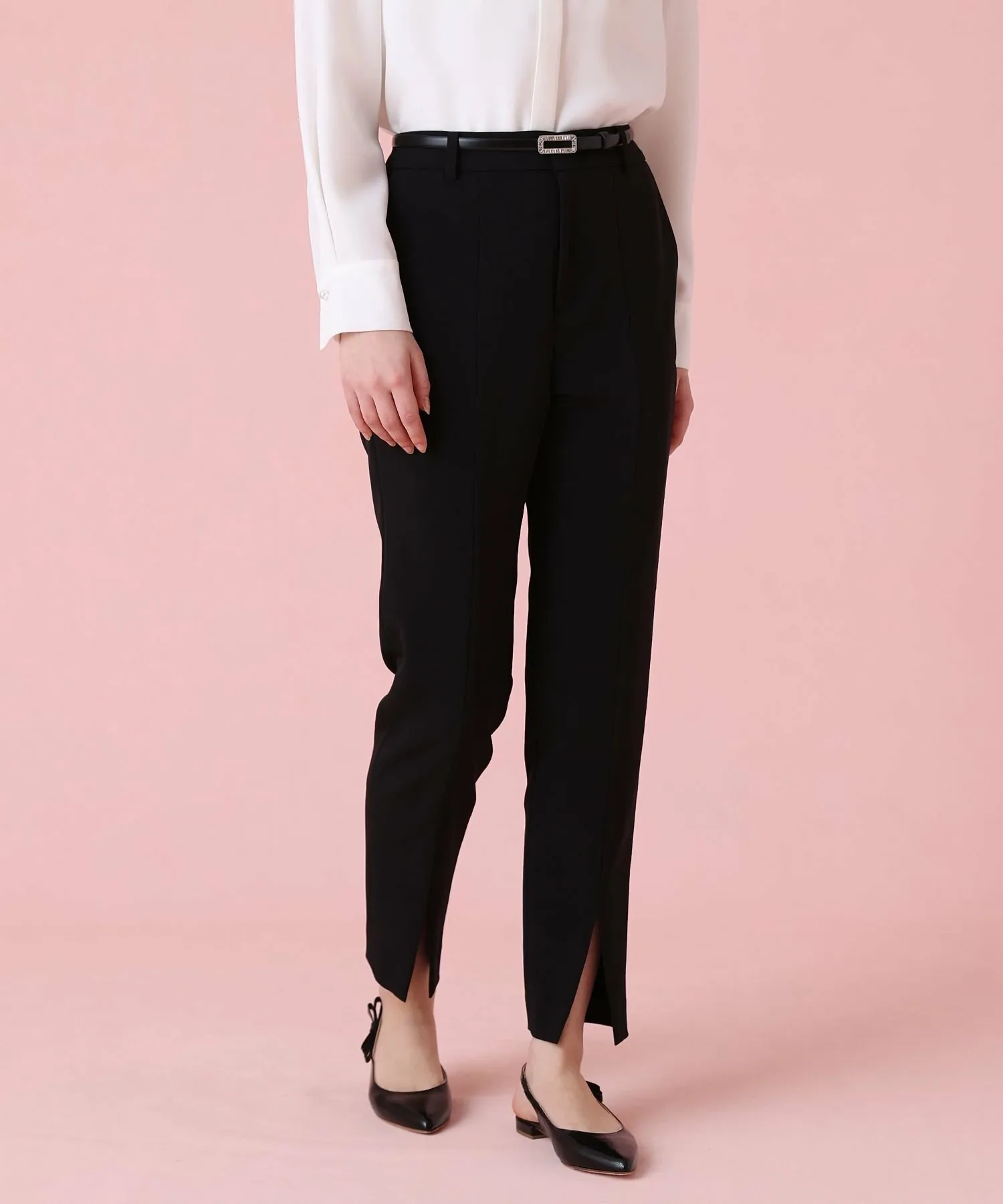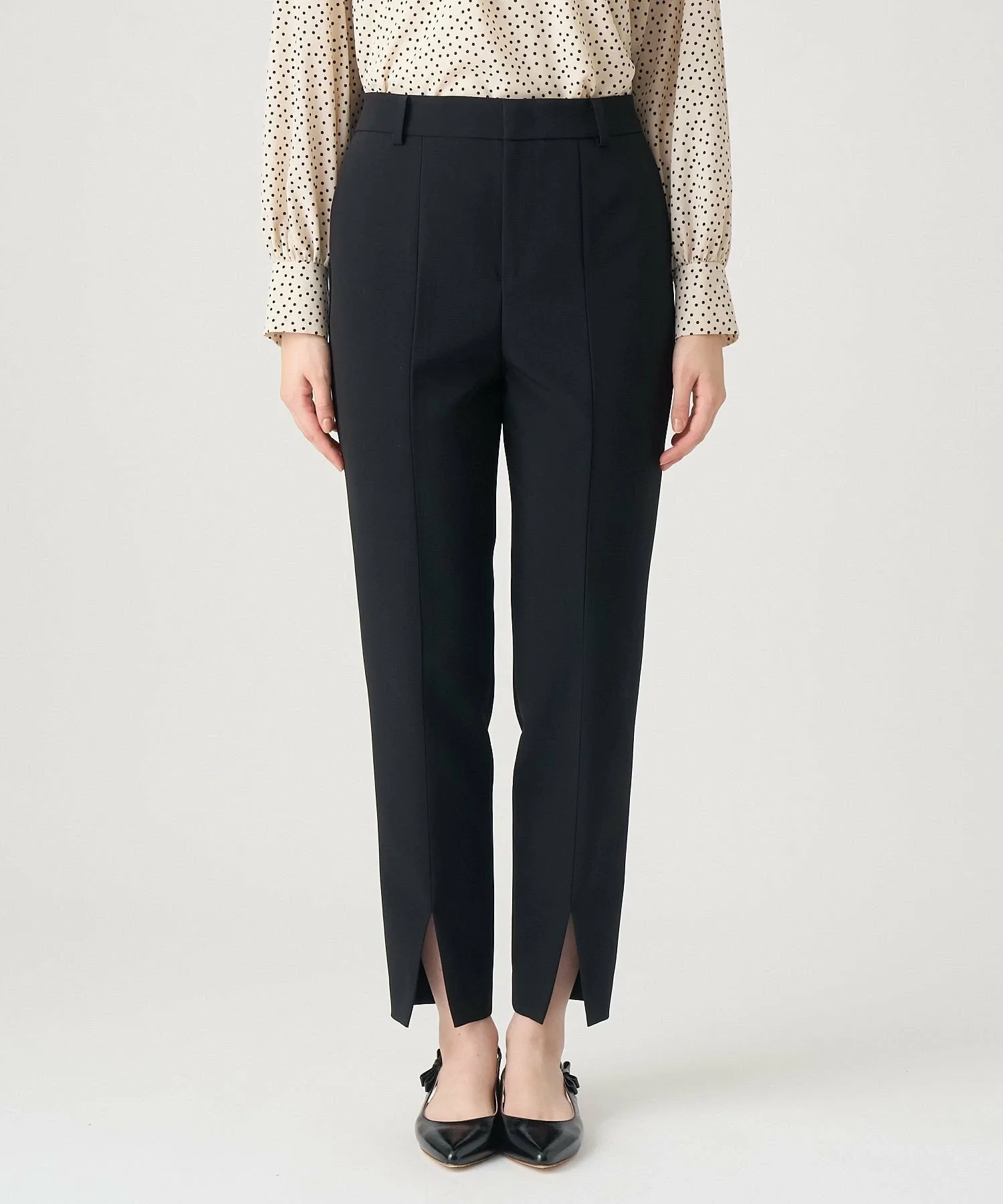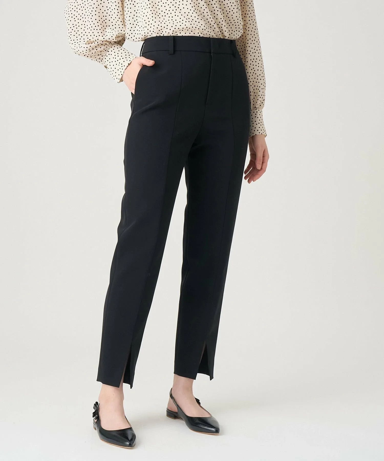 Эти брюки прямого кроя имеют разрез по центру для создания расслабленного и стильного образа. Небольшой вырез на щиколотке также создает эффект стройности.