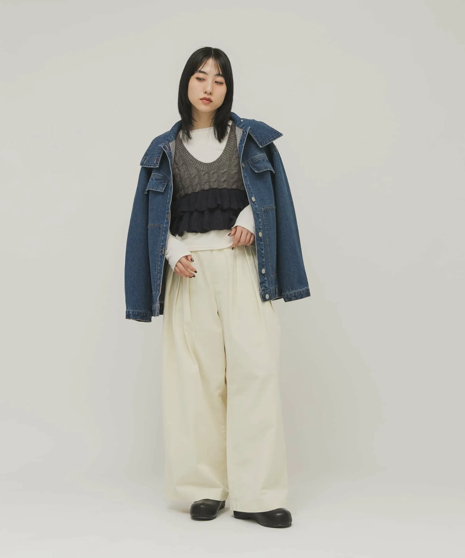 Эта джинсовая блузон выполнена в свободном стиле, вдохновленном мужской модой. Высокий воротник создает современный образ. Пояс создает слегка округлый силуэт, а большие складки сзади добавляют стиля. Мы рекомендуем сочетать ее с джинсами с соответствующей передней панелью (KB26130-2045080).