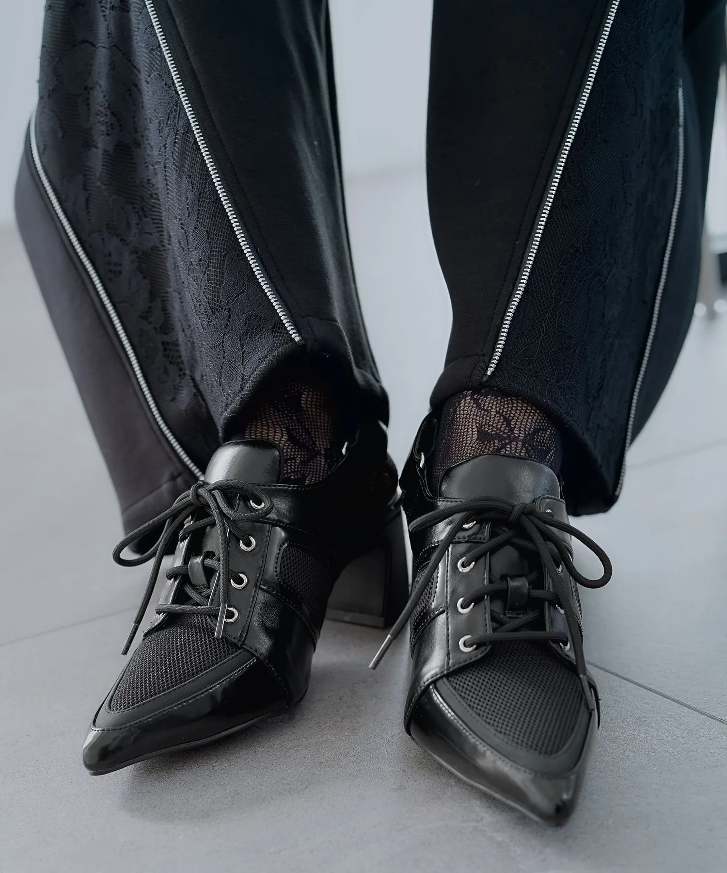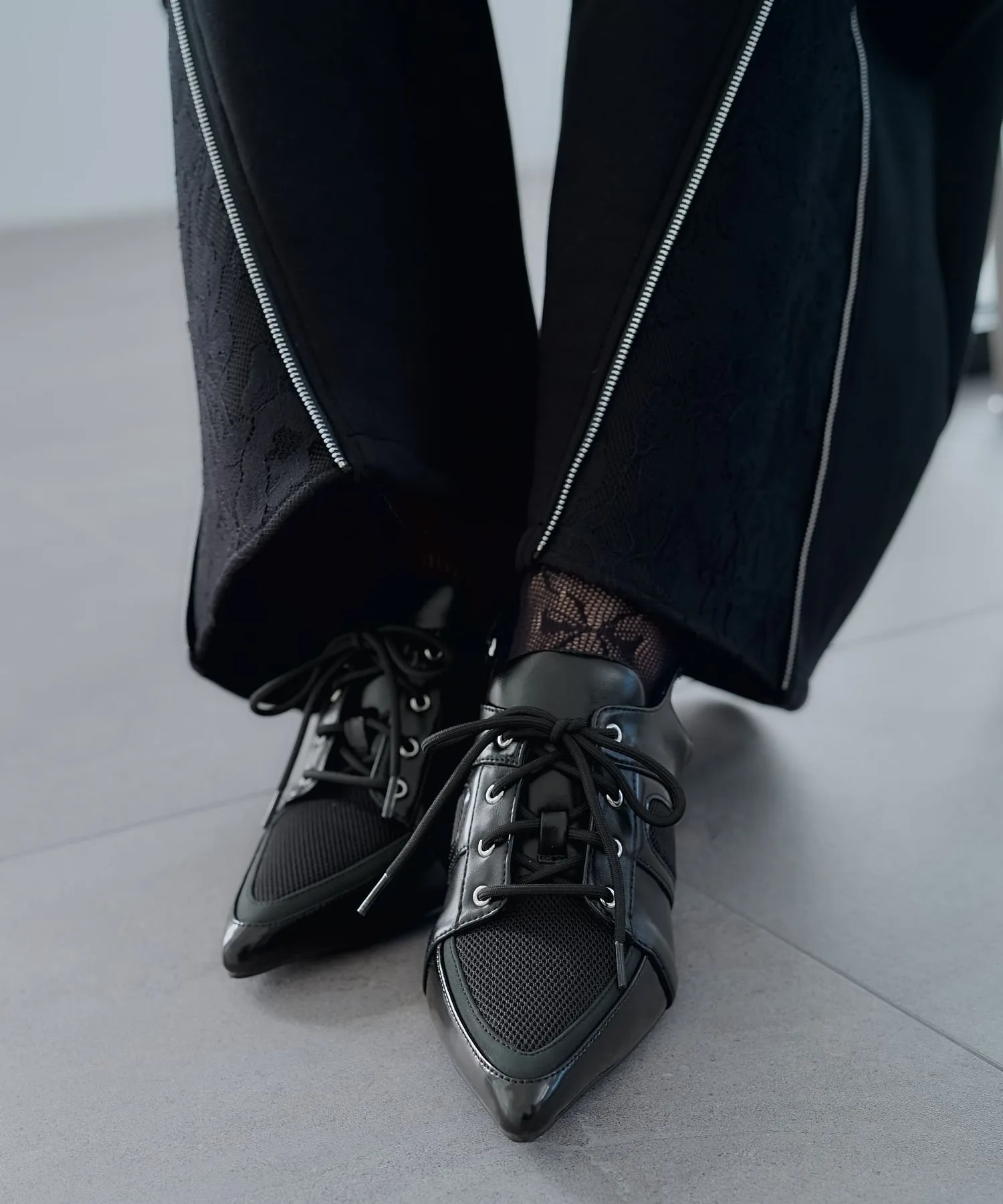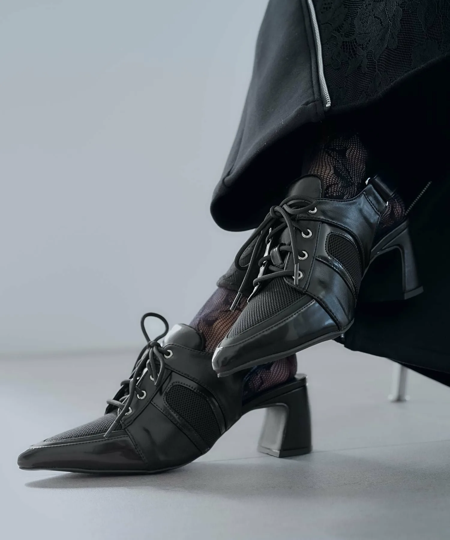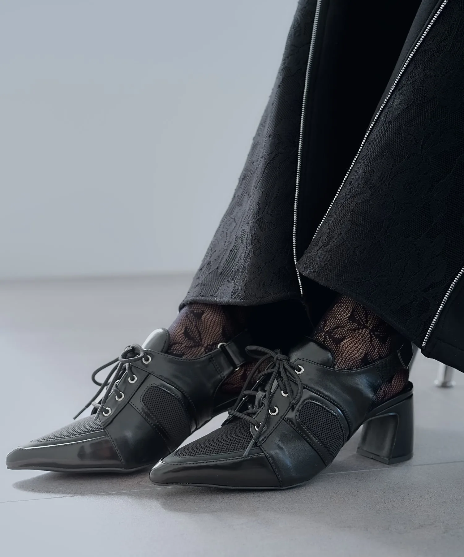 Сетчатая часть позволяет создать игривый образ, например, демонстрировав цветные носки.