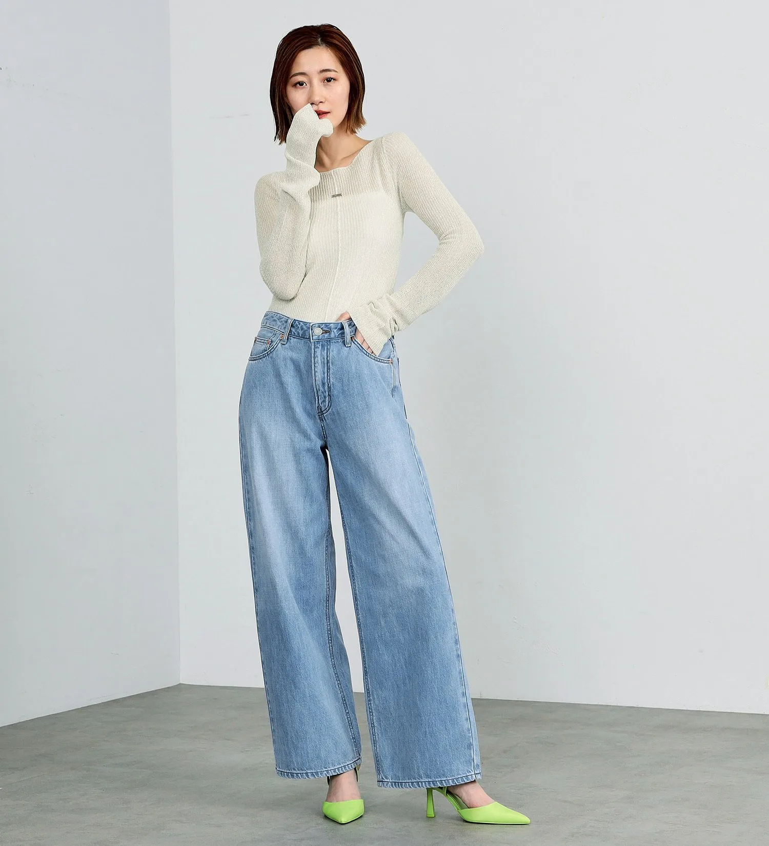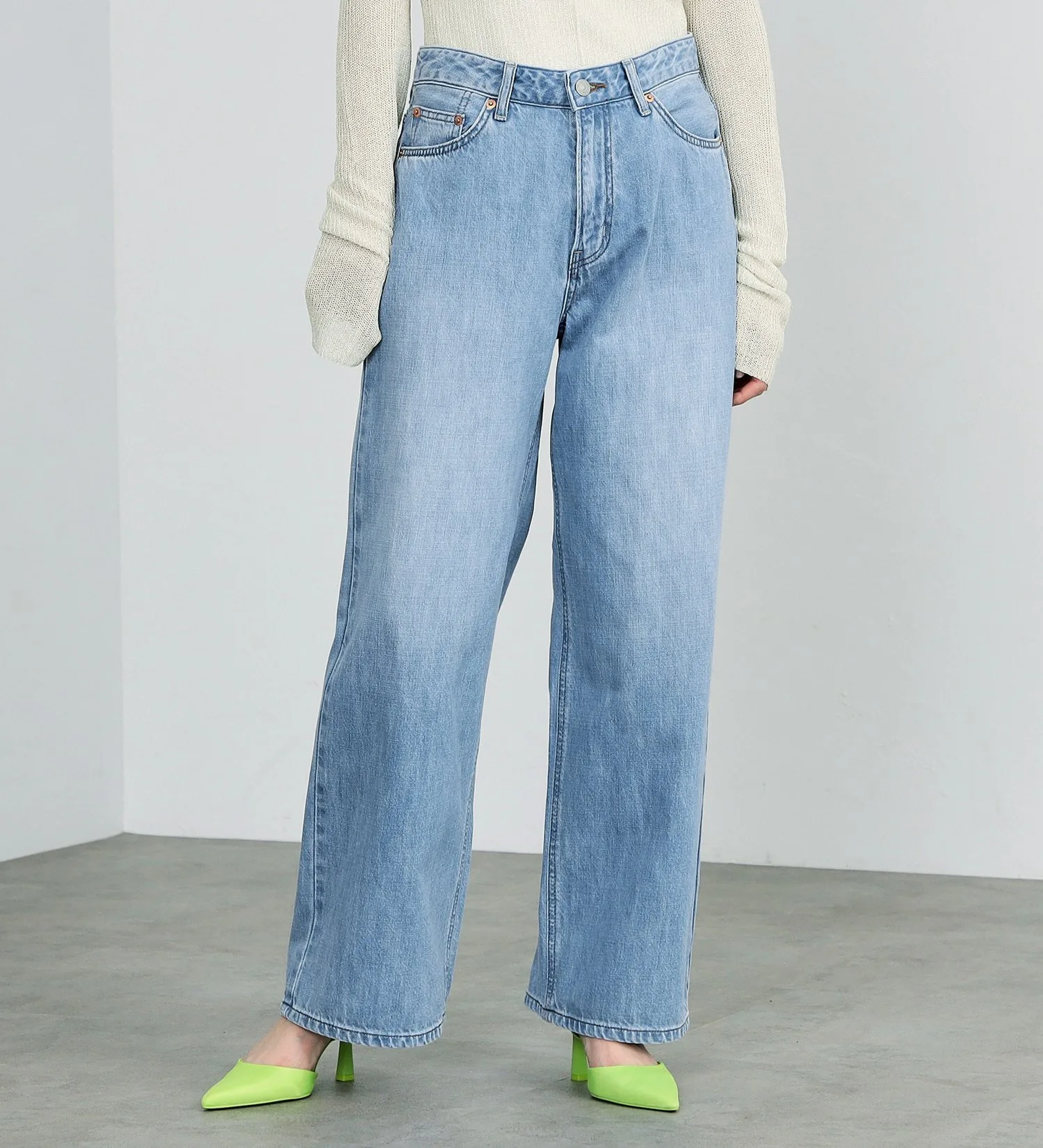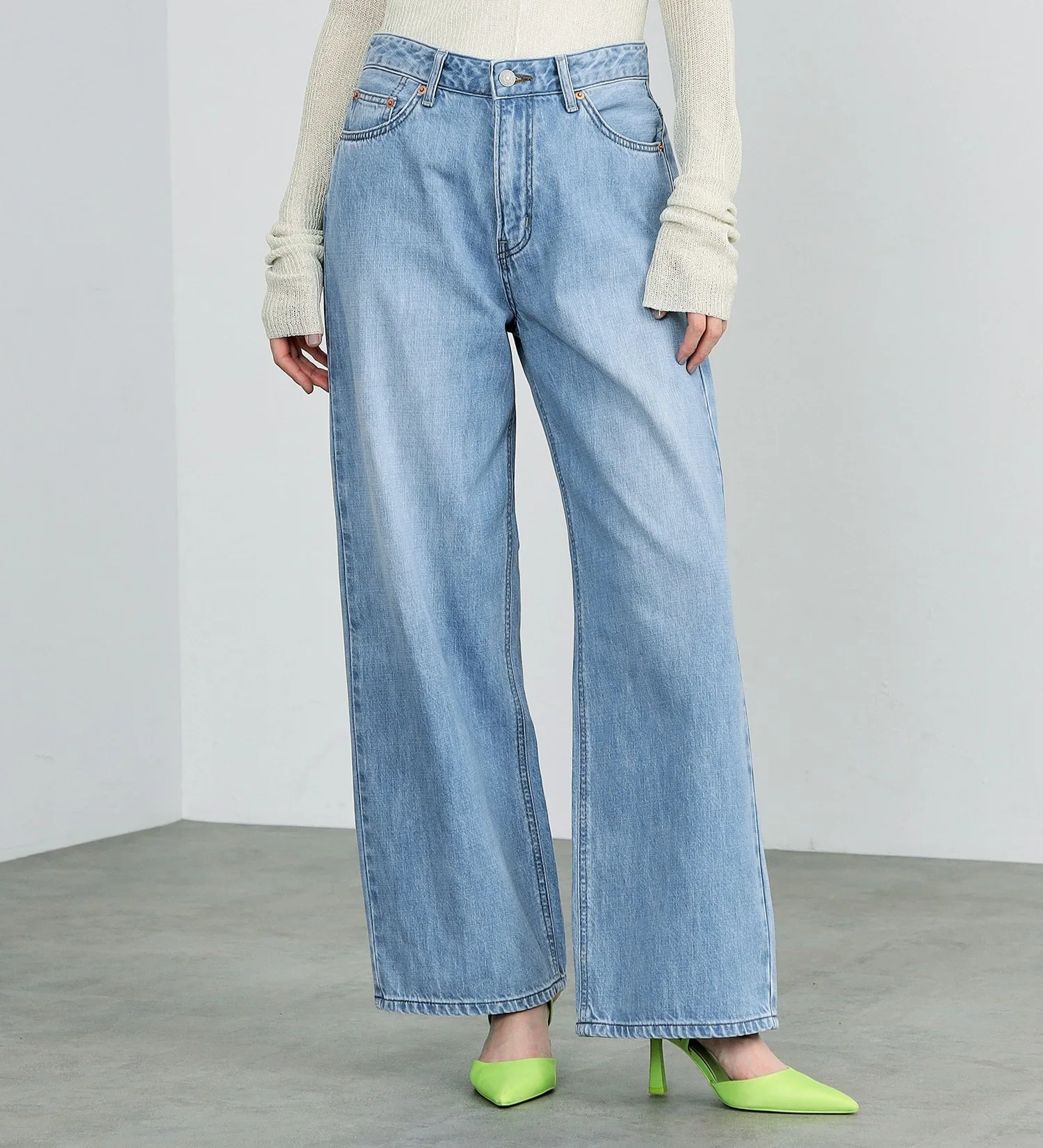 Выберите на один размер меньше и носите их с высокой посадкой для более элегантного силуэта. Универсальные широкие брюки, которые можно носить с комфортом независимо от выбранного размера.
