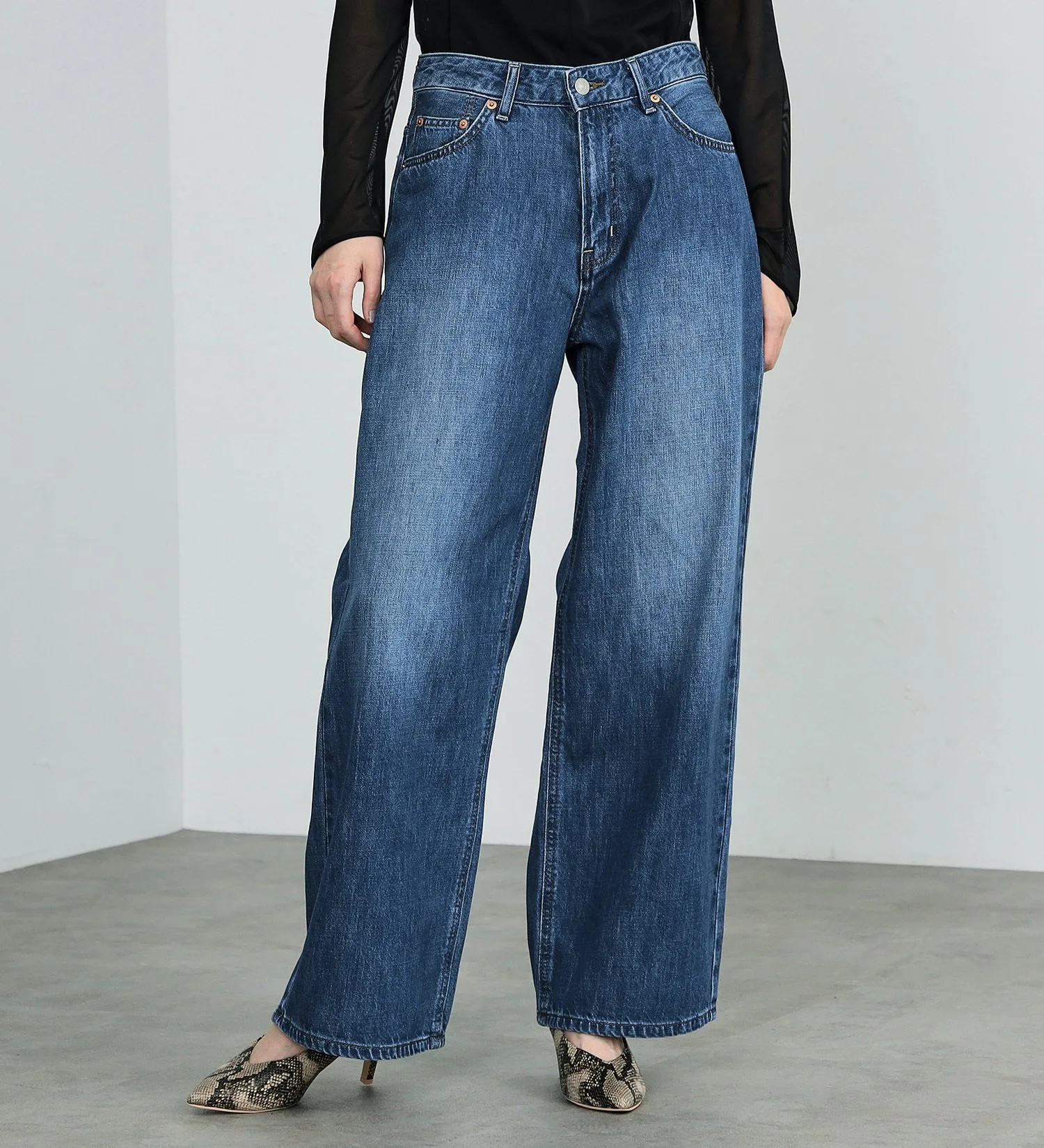 Выберите на один размер меньше и носите их с высокой посадкой для более элегантного силуэта. Универсальные широкие брюки, которые можно носить с комфортом независимо от выбранного размера.