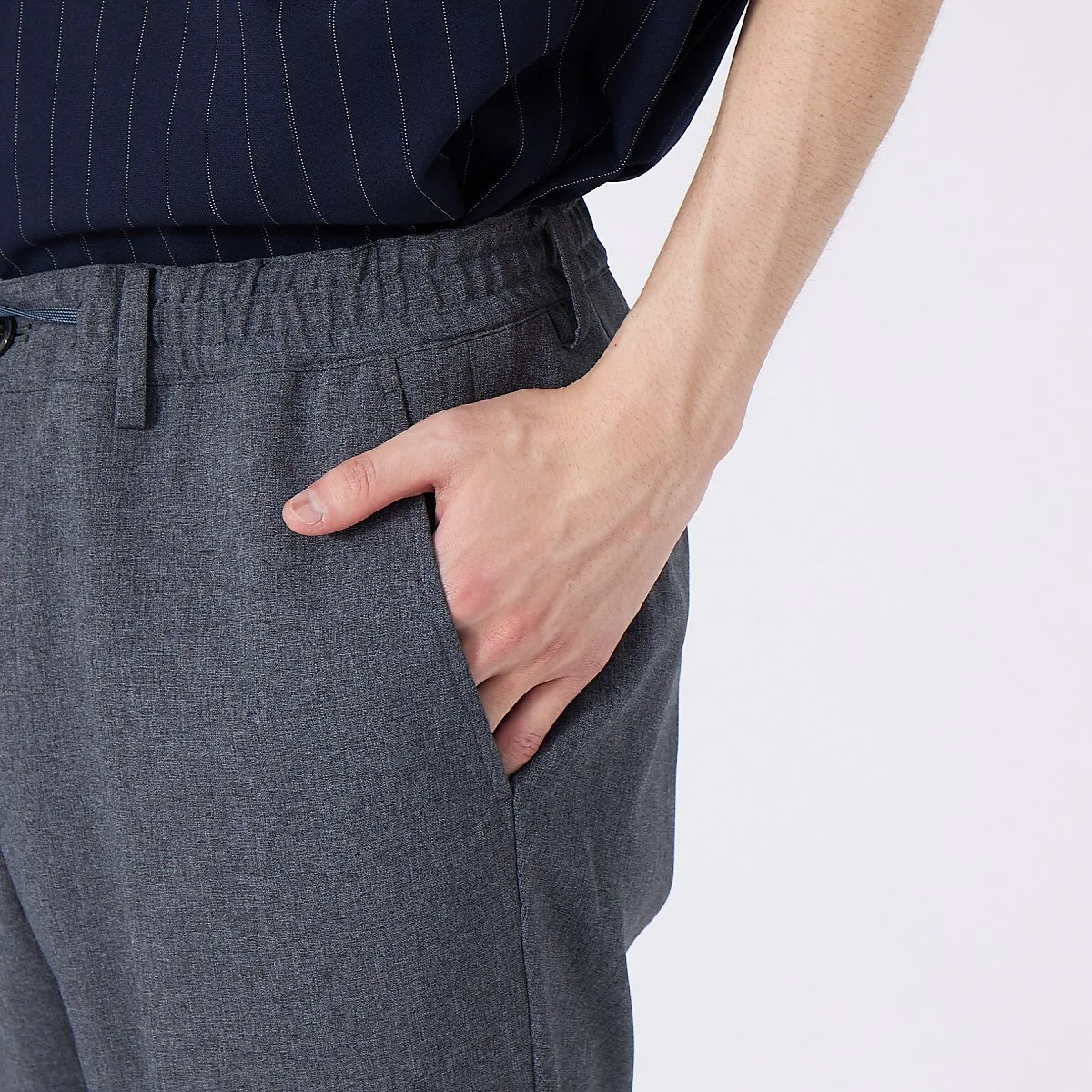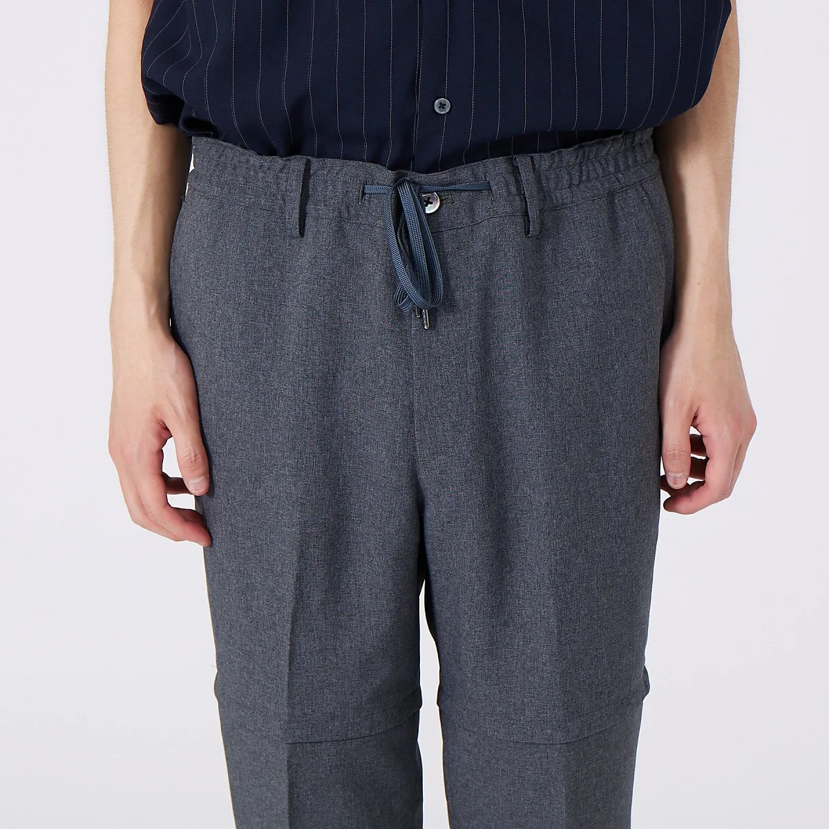 Шнурок также заправлен внутрь, что позволяет носить пояс, поэтому их можно использовать и как обычные брюки.