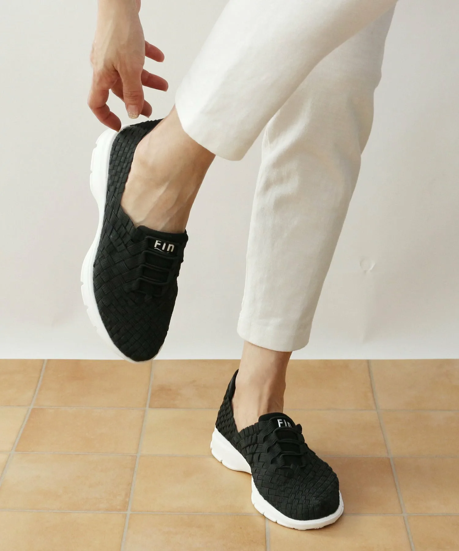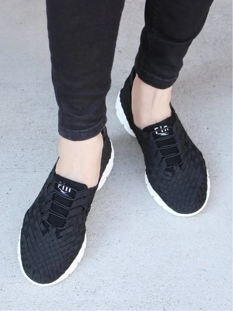 Эластичные кроссовки Fin с тканой сеткой добавят легкости вашим ногам этой весной и летом. Тщательно сплетенный резиновый материал обеспечивает превосходную воздухопроницаемость, а эластичный материал гарантирует надежную фиксацию. Мягкий материал позволяет надевать их на пятку и носить как домашние тапочки — отличная особенность. Центральные эластичные шнурки и логотип Fin добавляют стиля.