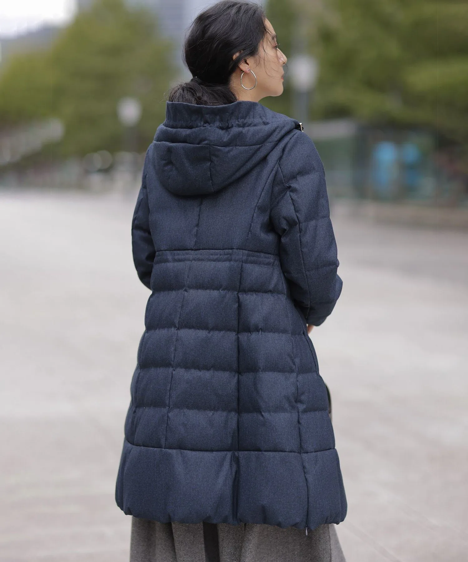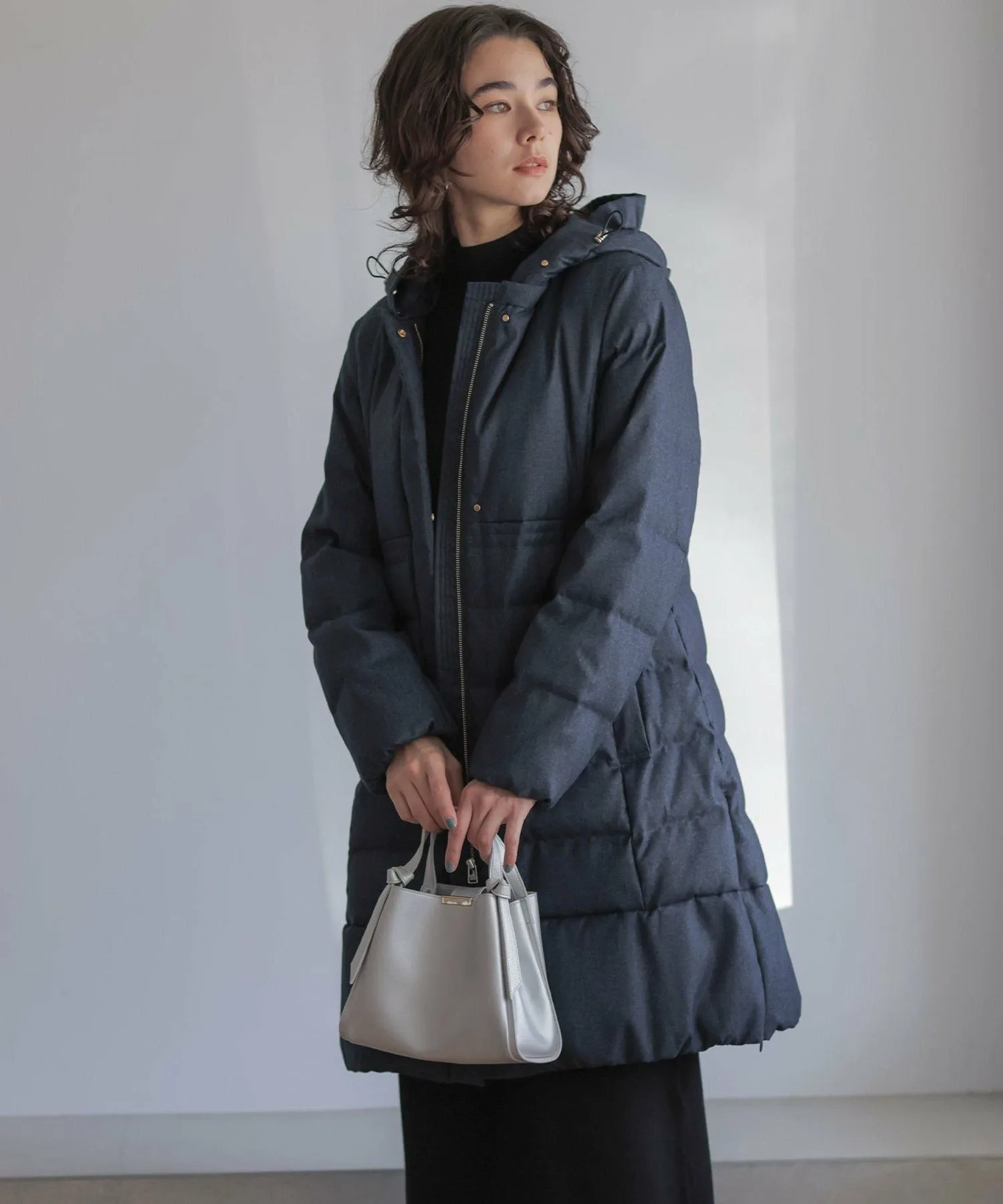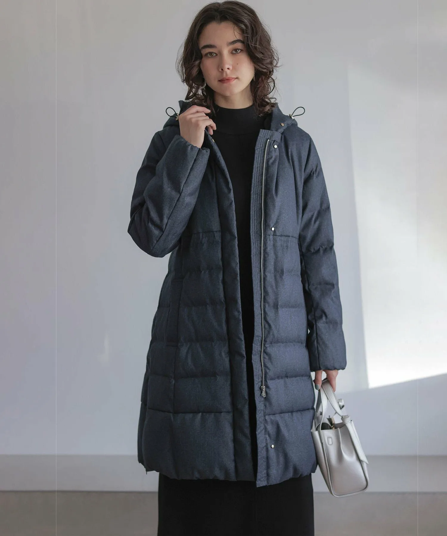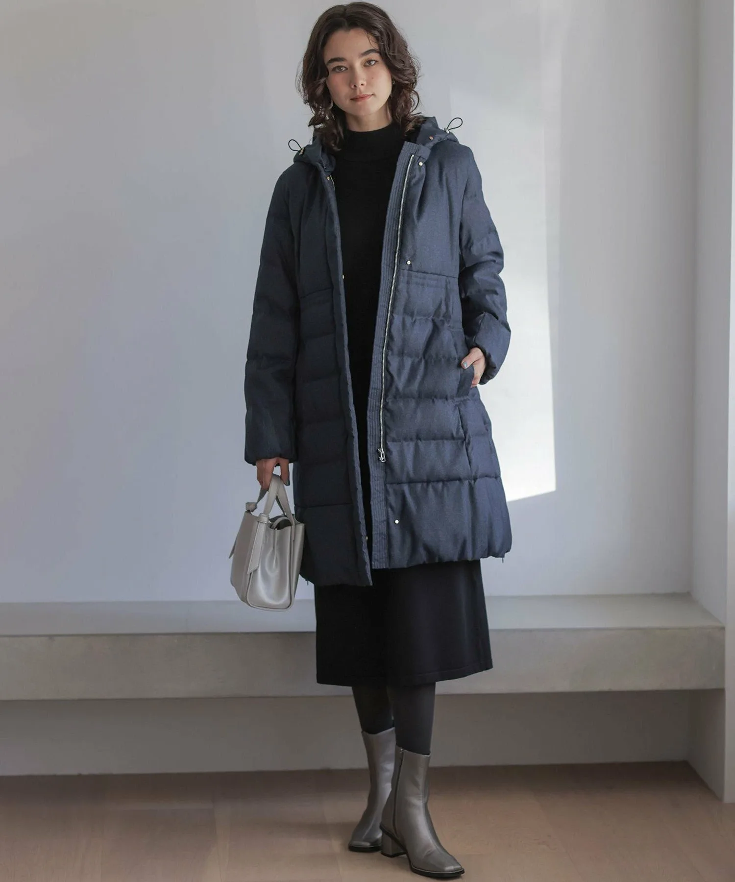 Дизайн・Легкая и теплая, эта длинная пуховая куртка — популярный товар каждый год, отличающийся тщательно продуманным силуэтом, плавно изгибающимся к талии. ・Верхняя часть плоская и не имеет швов, что создает не слишком повседневный образ. ・Горизонтальная строчка идет от чуть выше талии до низа, сужаясь к талии для создания стройного, привлекательного силуэта. ・Длина комфортно закрывает бедра, обеспечивая отличное тепло. ・Расстегните боковую молнию как разрез, чтобы легко носить мягкую расклешенную юбку и максимально свободно двигать ногами. ・Трехмерный, обволакивающий капюшон создает аккуратный, элегантный вид вокруг лица. ・Капюшон съемный, поэтому вы можете носить куртку как пальто без воротника. • Открытый вырез горловины идеально дополняет мех и палантины. Материал: • Цвета 003, 005, 030 (однотонная тафта): Плотная тканая тафта с гладкой поверхностью и глянцевым блеском. Благодаря объему нитей она легкая и мягкая на ощупь. • Цвета 575, 504 (твидовая): Ткань в елочку, сотканная из серых и белых нитей, с принтом, напоминающим твид, который добавляет глубины. Поверхность слегка обработана щеткой для создания теплого, похожего на шерсть ощущения и изысканной, трехмерной мягкости, при этом сохраняя легкость, которую трудно достичь с шерстью.