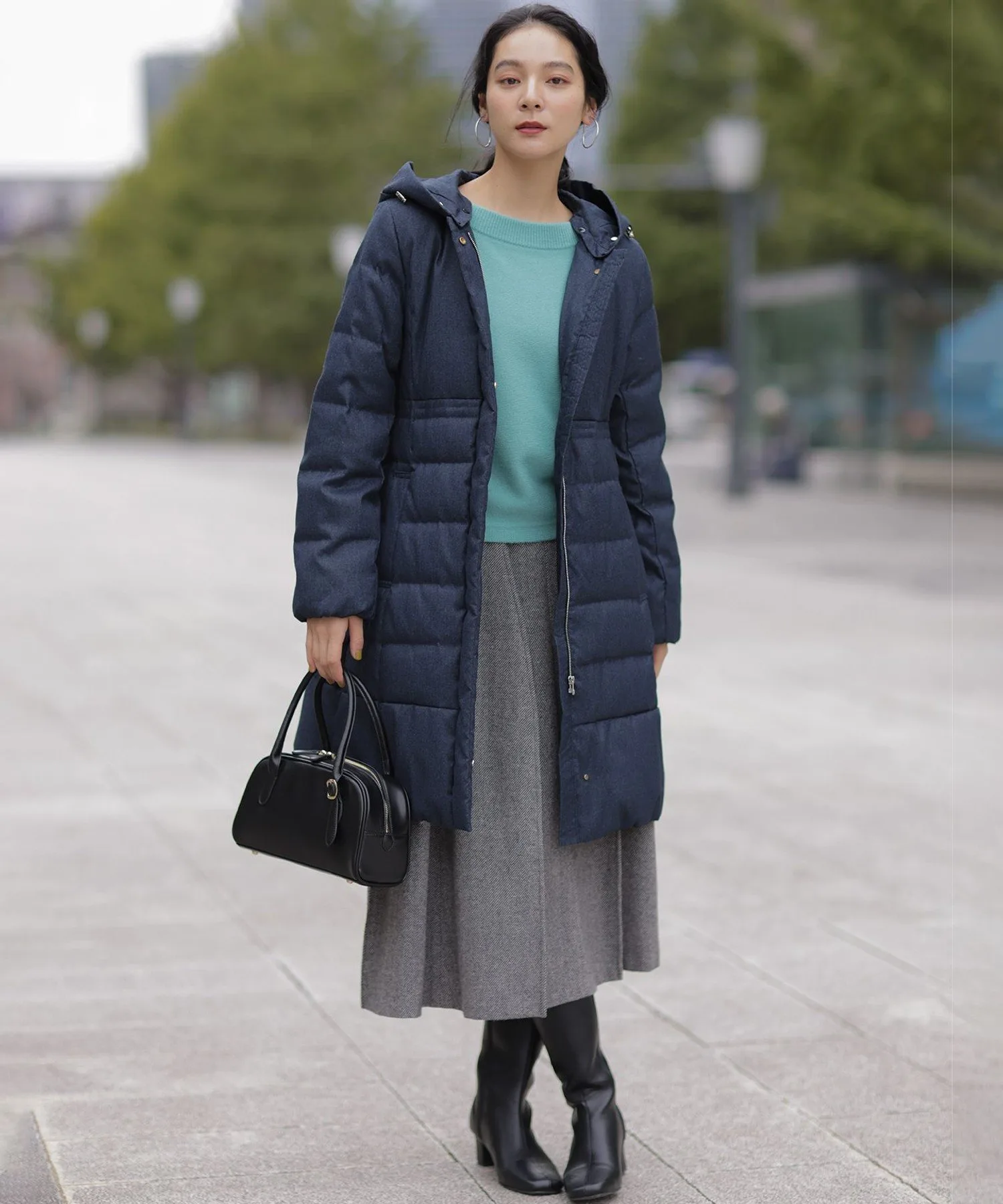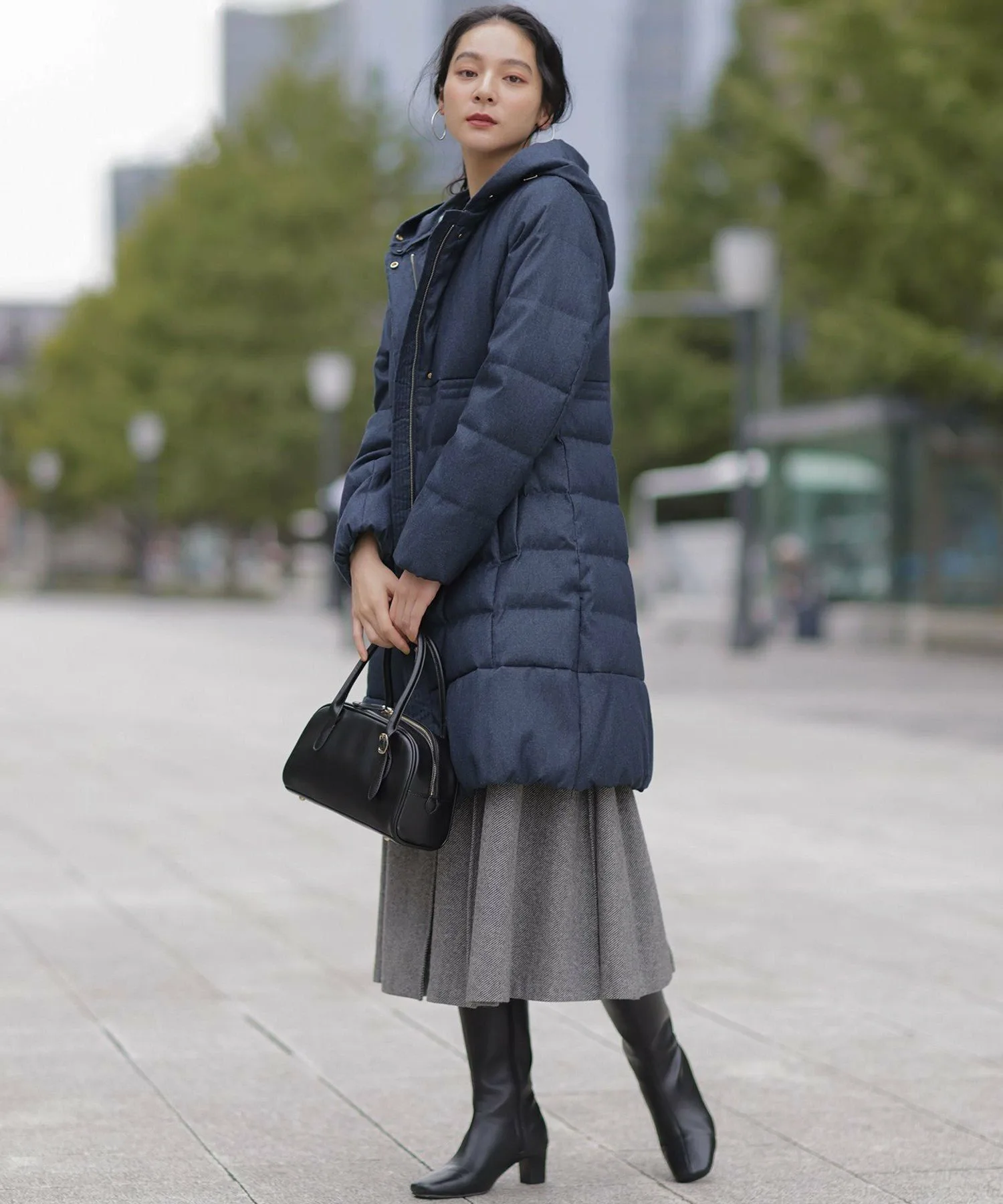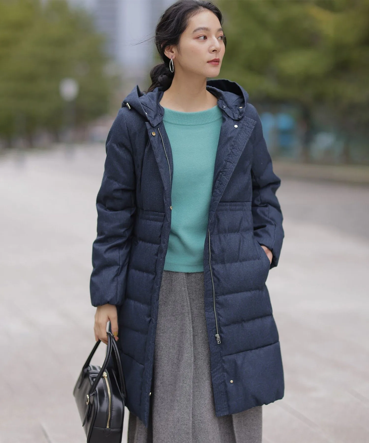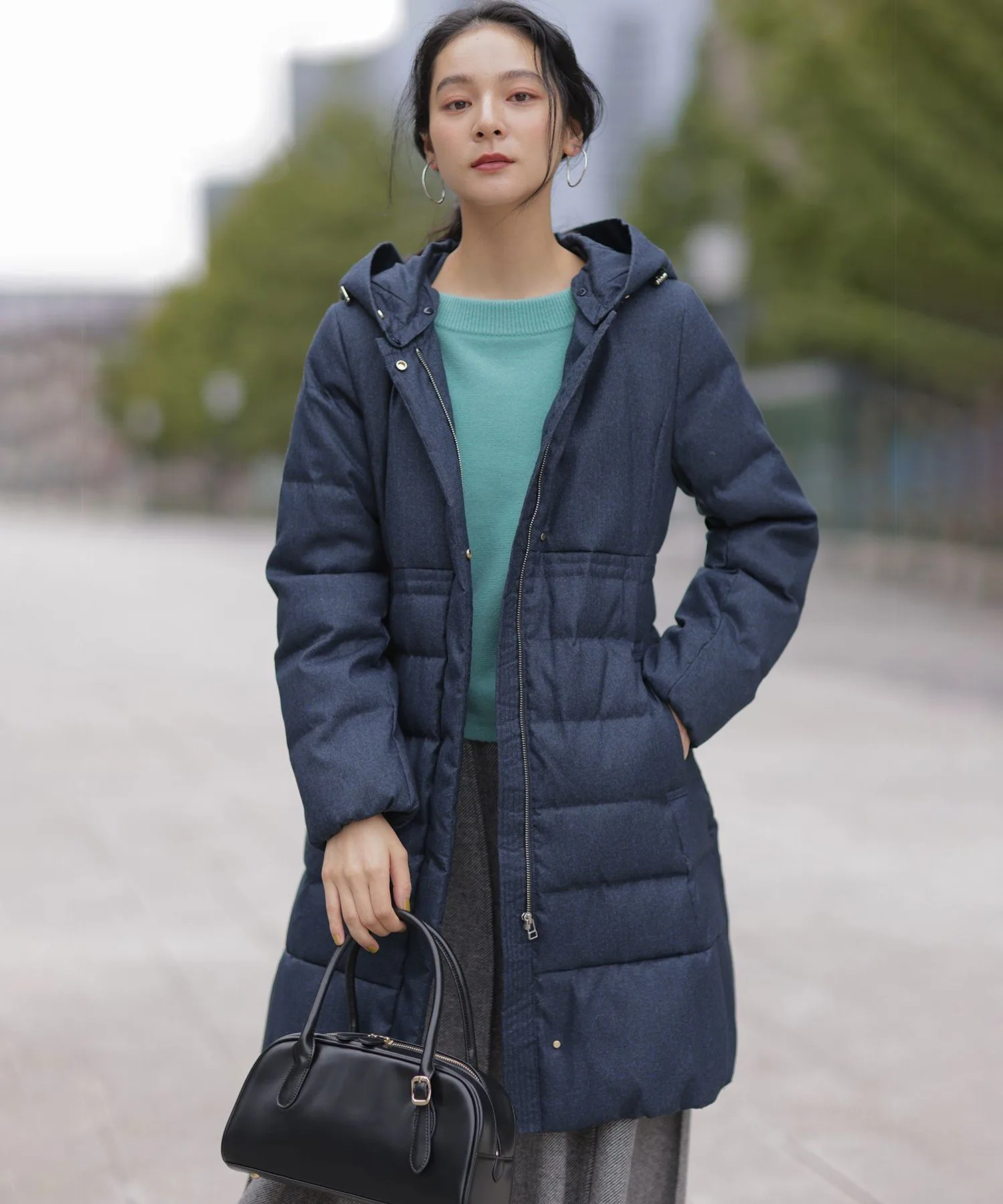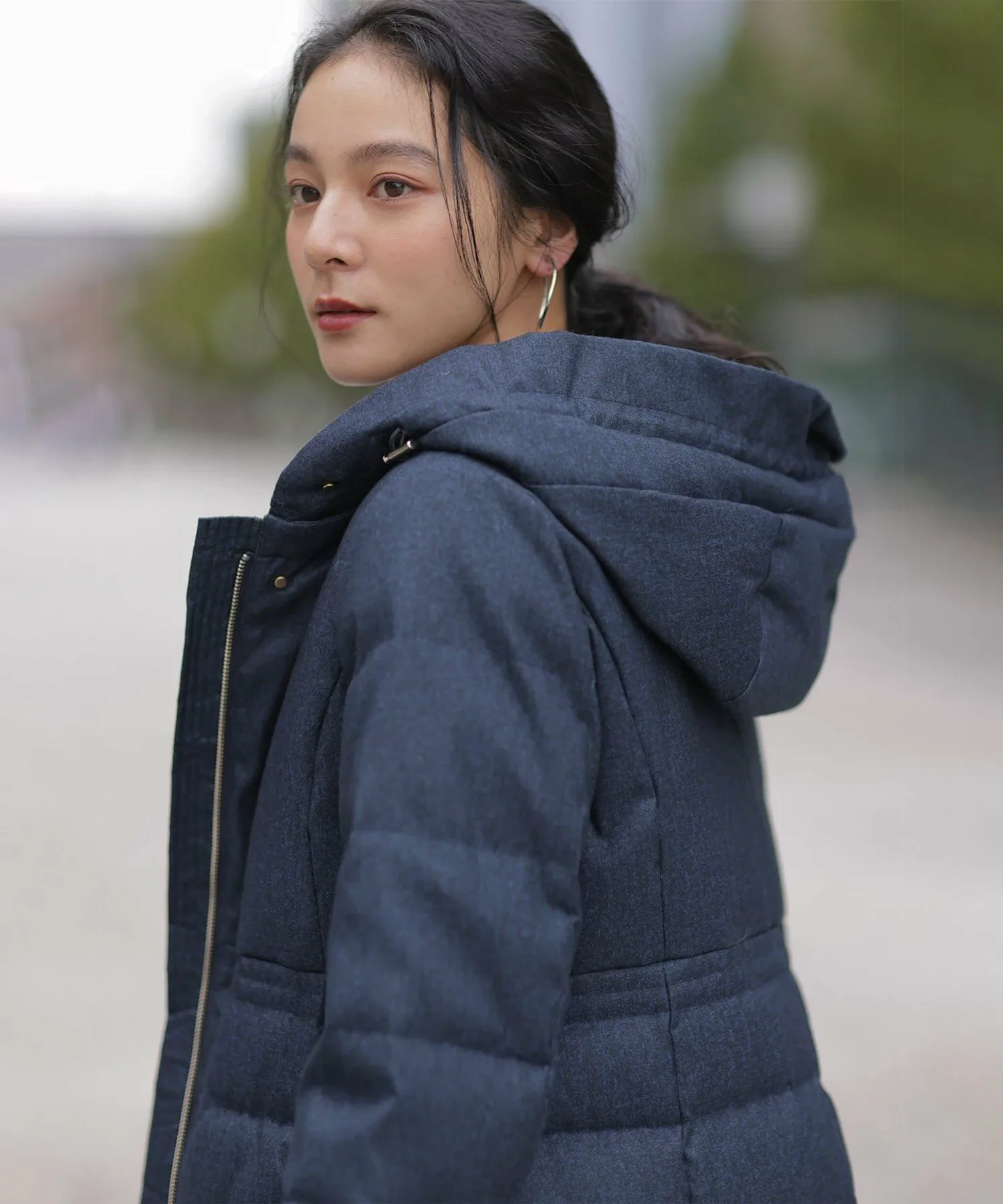 Дизайн・Легкая и теплая, эта длинная пуховая куртка — популярный товар каждый год, отличающийся тщательно продуманным силуэтом, плавно изгибающимся к талии. ・Верхняя часть плоская и не имеет швов, что создает не слишком повседневный образ. ・Горизонтальная строчка идет от чуть выше талии до низа, сужаясь к талии для создания стройного, привлекательного силуэта. ・Длина комфортно закрывает бедра, обеспечивая отличное тепло. ・Расстегните боковую молнию как разрез, чтобы легко носить мягкую расклешенную юбку и максимально свободно двигать ногами. ・Трехмерный, обволакивающий капюшон создает аккуратный, элегантный вид вокруг лица. ・Капюшон съемный, поэтому вы можете носить куртку как пальто без воротника. • Открытый вырез горловины идеально дополняет мех и палантины. Материал: • Цвета 003, 005, 030 (однотонная тафта): Плотная тканая тафта с гладкой поверхностью и глянцевым блеском. Благодаря объему нитей она легкая и мягкая на ощупь. • Цвета 575, 504 (твидовая): Ткань в елочку, сотканная из серых и белых нитей, с принтом, напоминающим твид, который добавляет глубины. Поверхность слегка обработана щеткой для создания теплого, похожего на шерсть ощущения и изысканной, трехмерной мягкости, при этом сохраняя легкость, которую трудно достичь с шерстью.