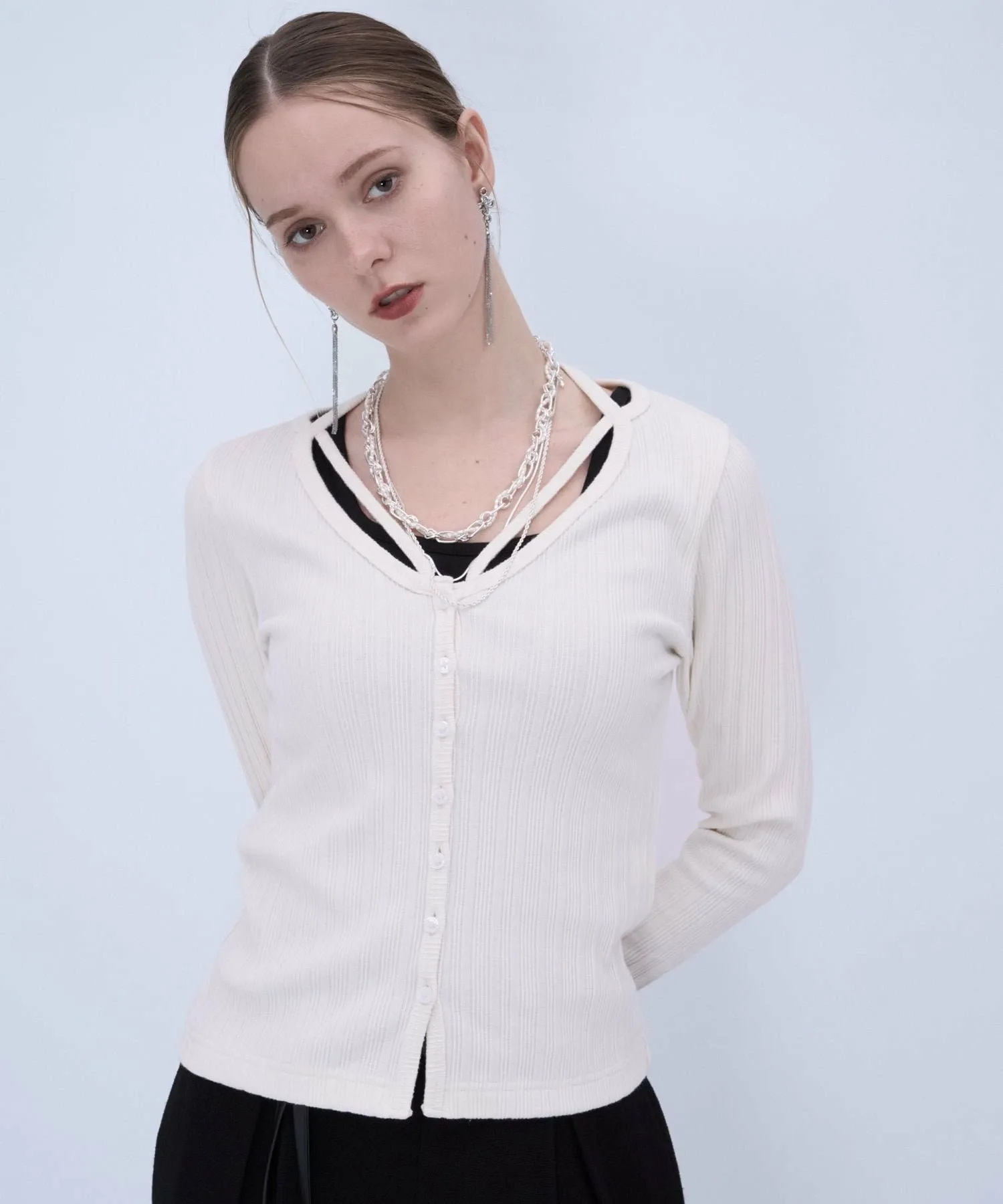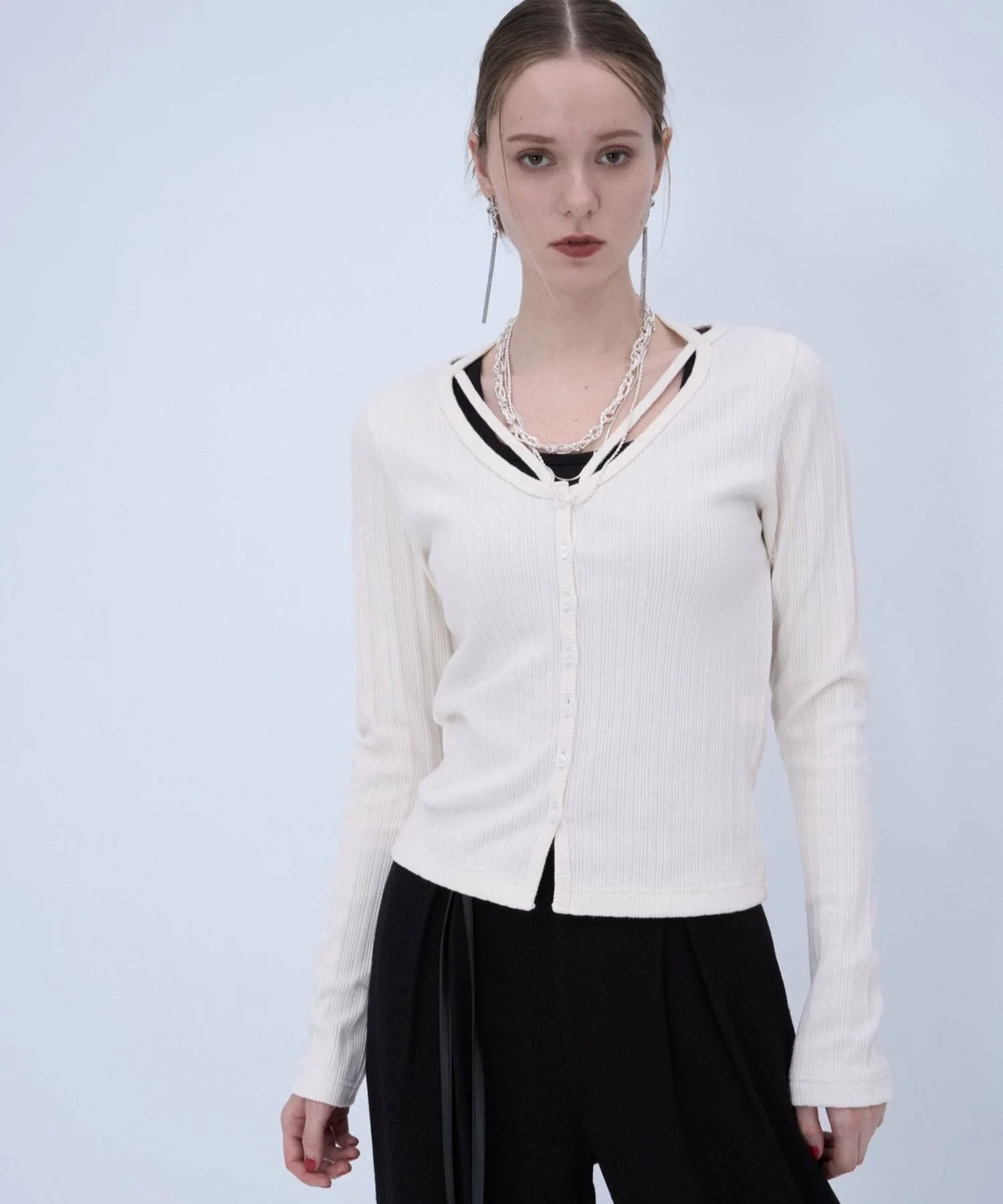 □Топ с простым дизайном и одним акцентом, который легко сочетать с другой одеждой.