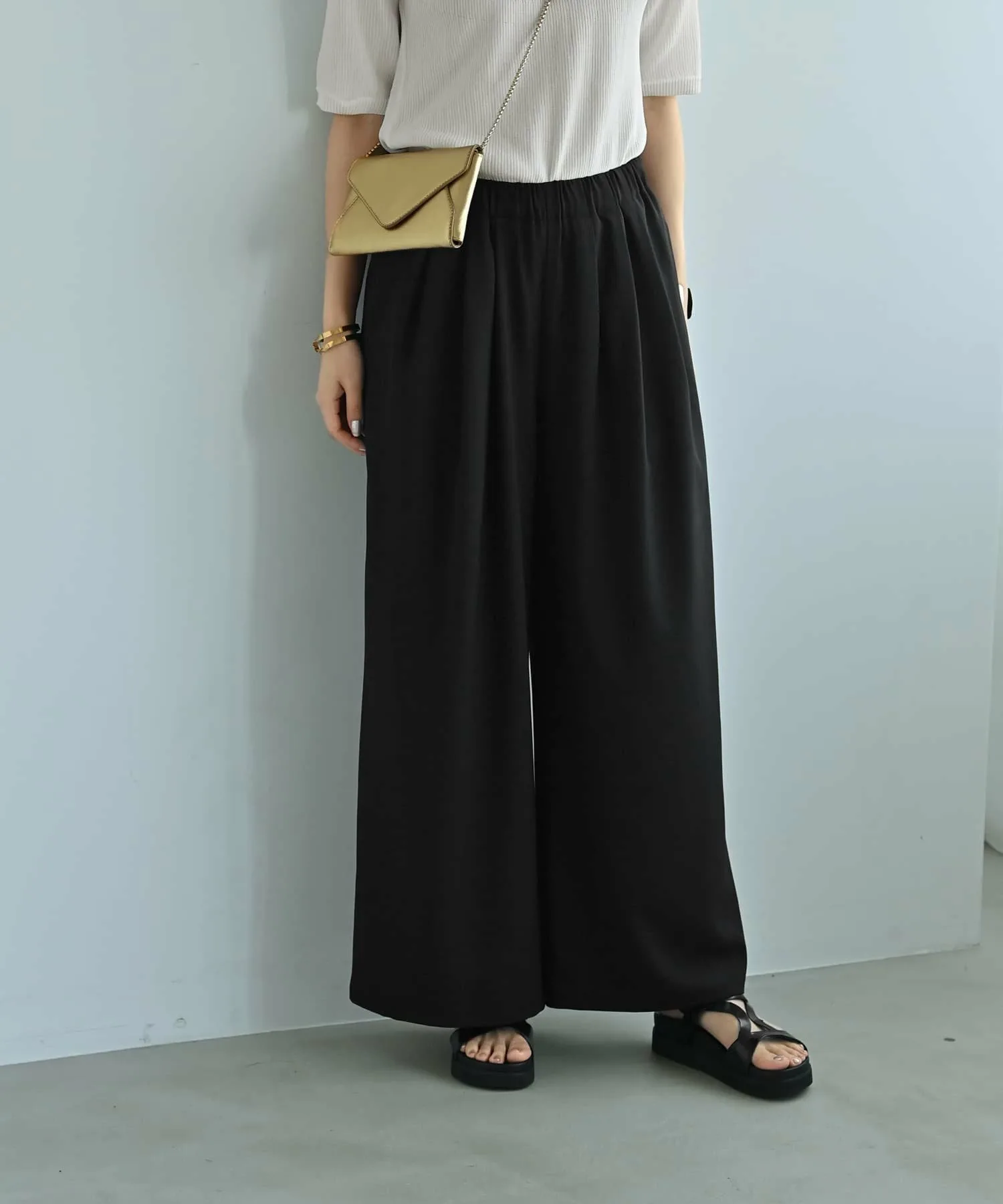 Эти брюки с широкими штанинами имеют свободный крой и сборки и складки под талией, создающие красивую драпировку спереди.