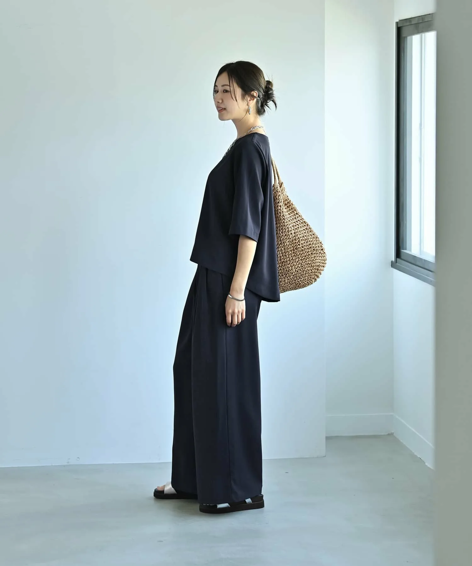Смесовая ткань из полиэстера и вискозы с элегантным и красивым плетением, напоминающим легкую костюмную ткань. Поверхность гладкая и имеет легкий блеск, придающий ей уникальный оттенок, который никогда не выглядит тусклым.