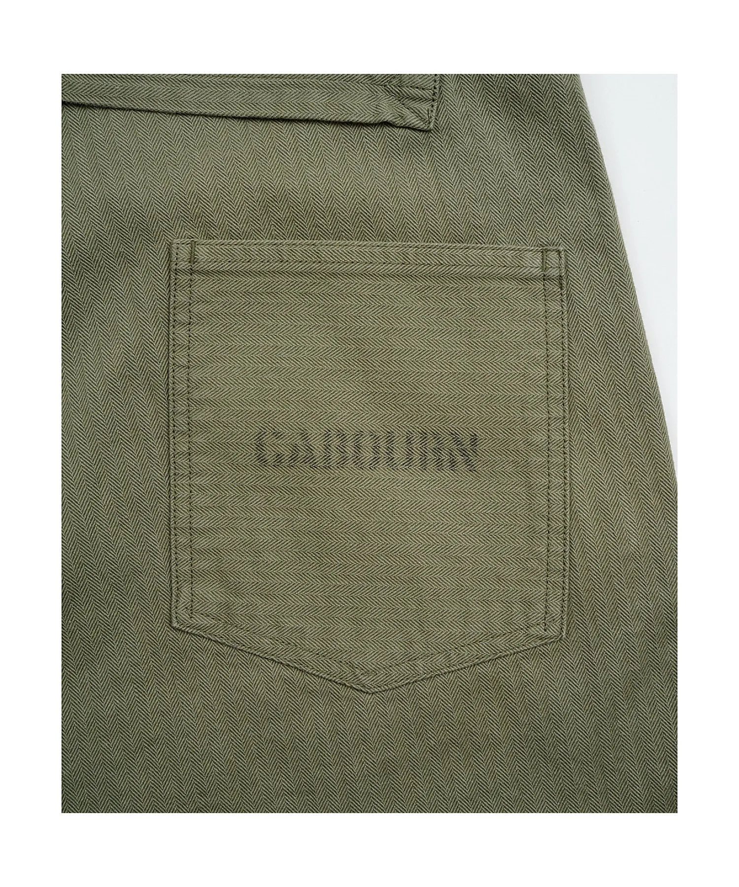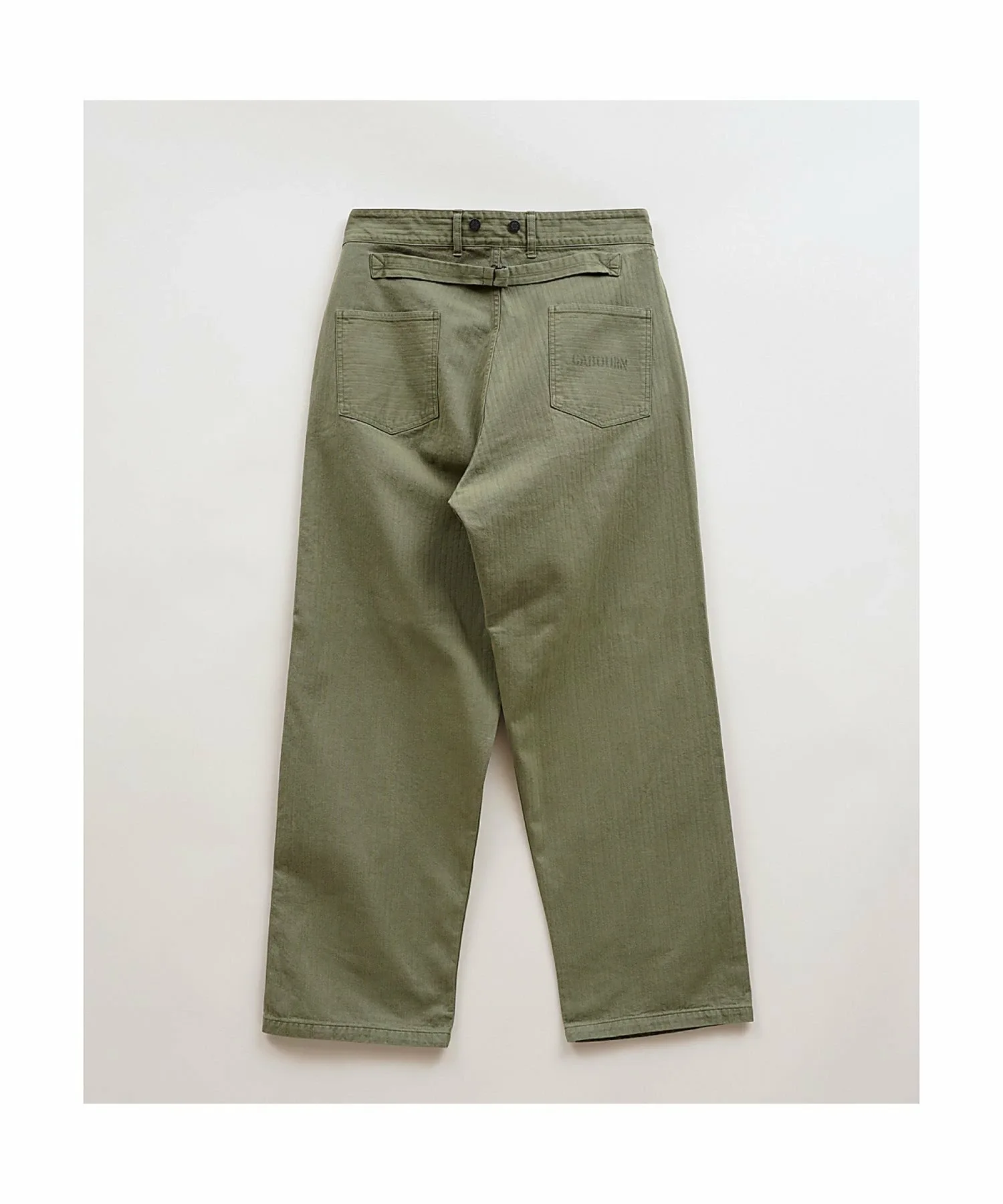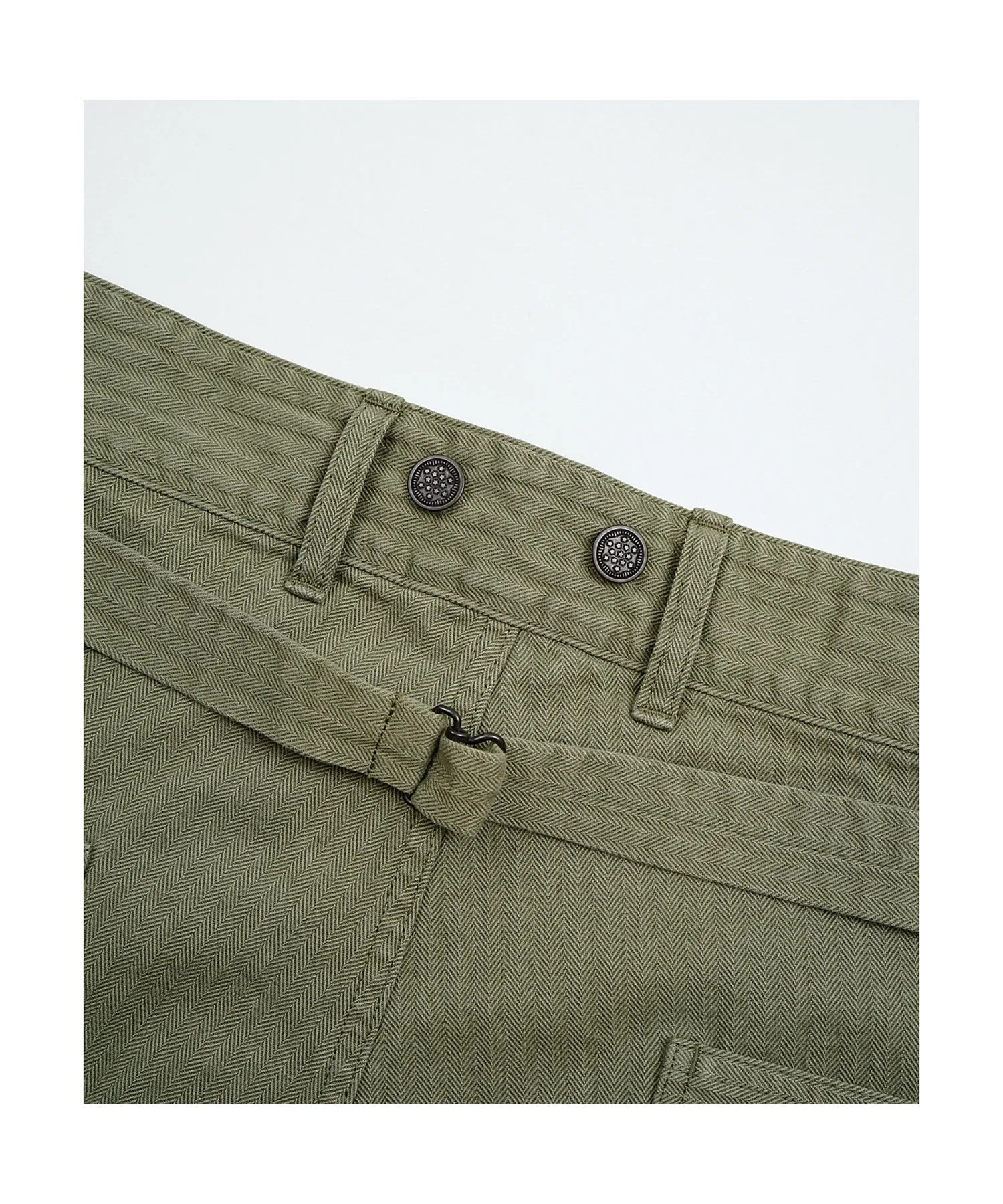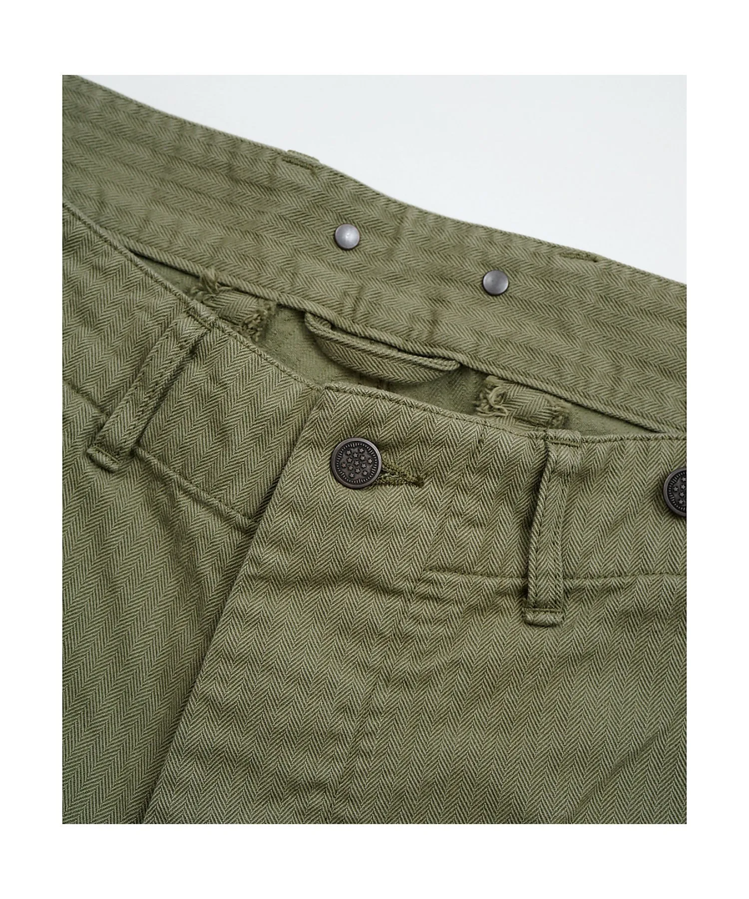 Эта эксклюзивная модель, продающаяся только в магазине в Сендае, создана на основе брюк M43, официально принятых на вооружение армией США в 1943 году, и изготовлена из оригинальной ткани SZ в елочку. Специально сплетенная ткань, обладающая превосходной прочностью, является репродукцией редкой винтажной пары, обнаруженной Найджелом Кабурном. Простой дизайн исключает накладные карманы, а регулируемая затяжка и фиксация сзади обеспечивают удобную посадку. Более того, эта особая пара отличается редким трафаретным принтом на заднем кармане.
