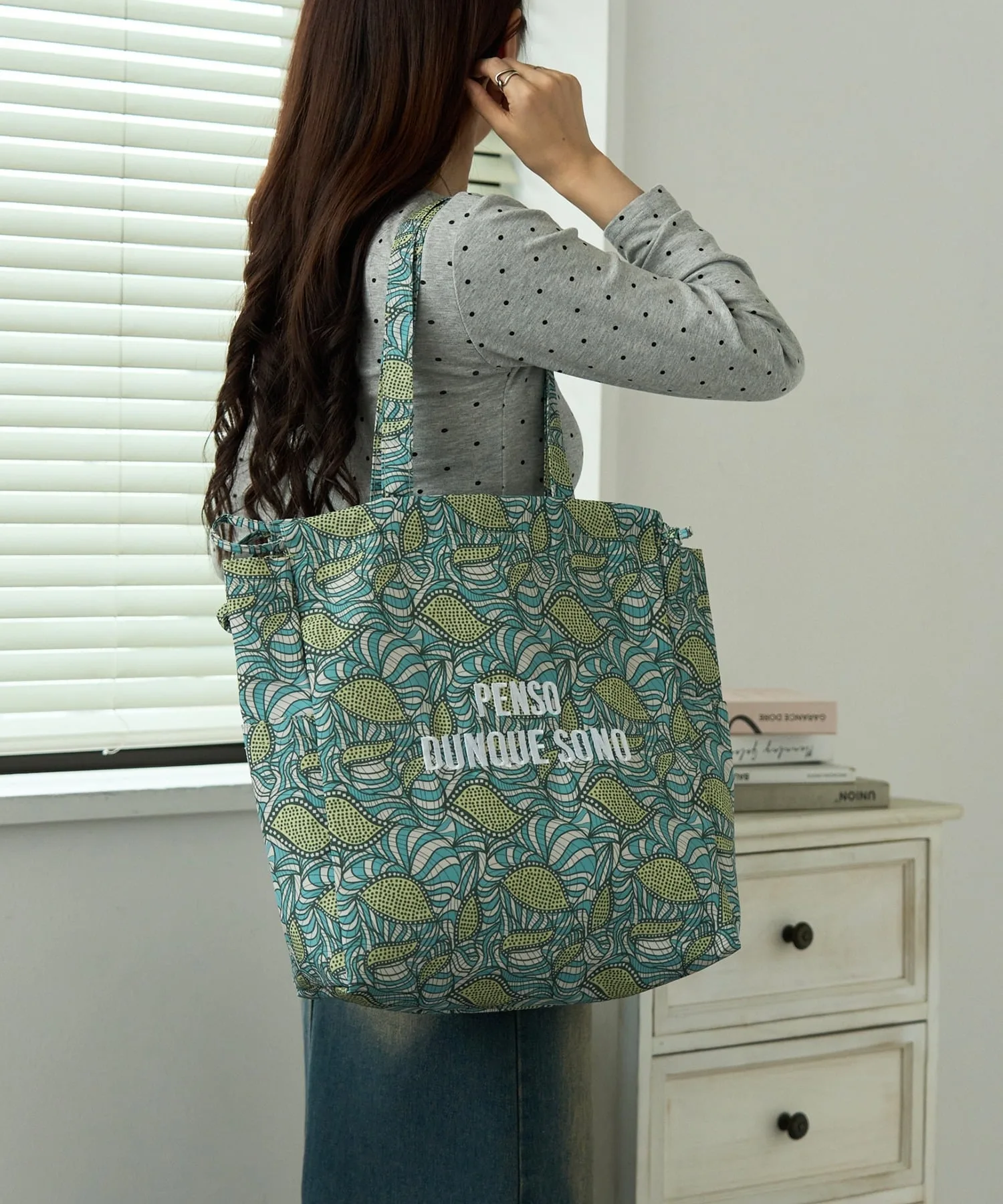 Милая сумка-шоппер с принтом в курортном стилеЗавяжите шнурок, чтобы превратить ее в сумку на завязках!