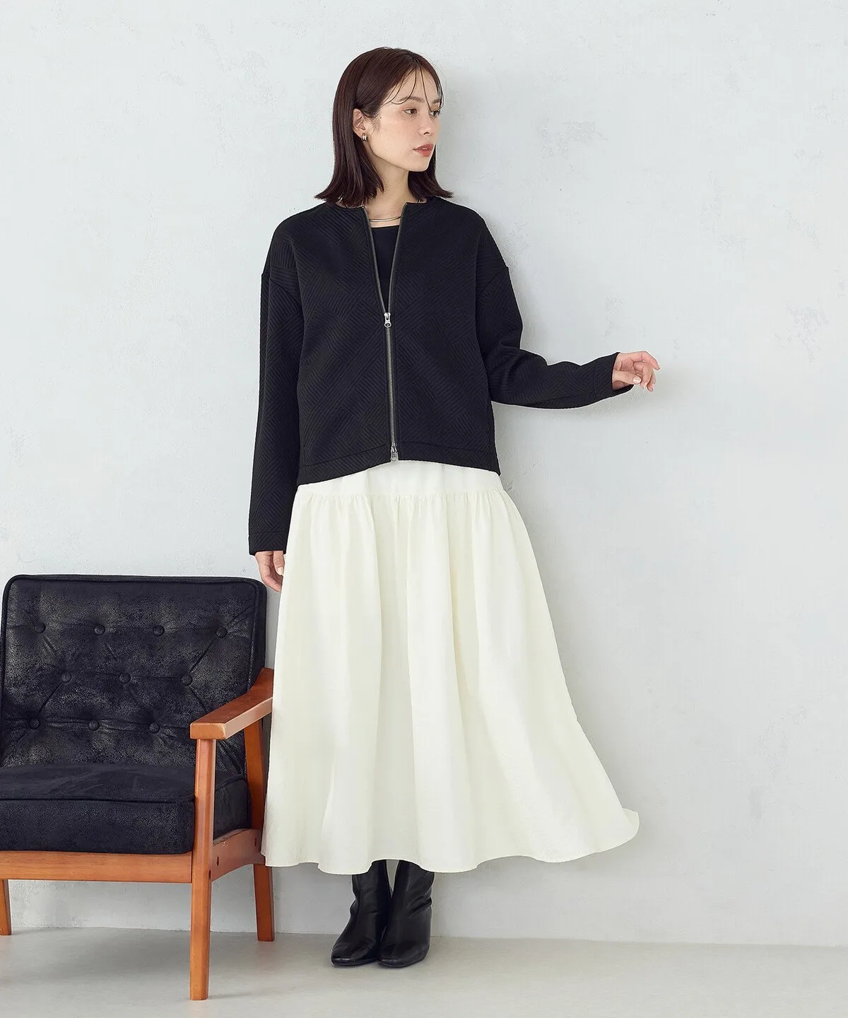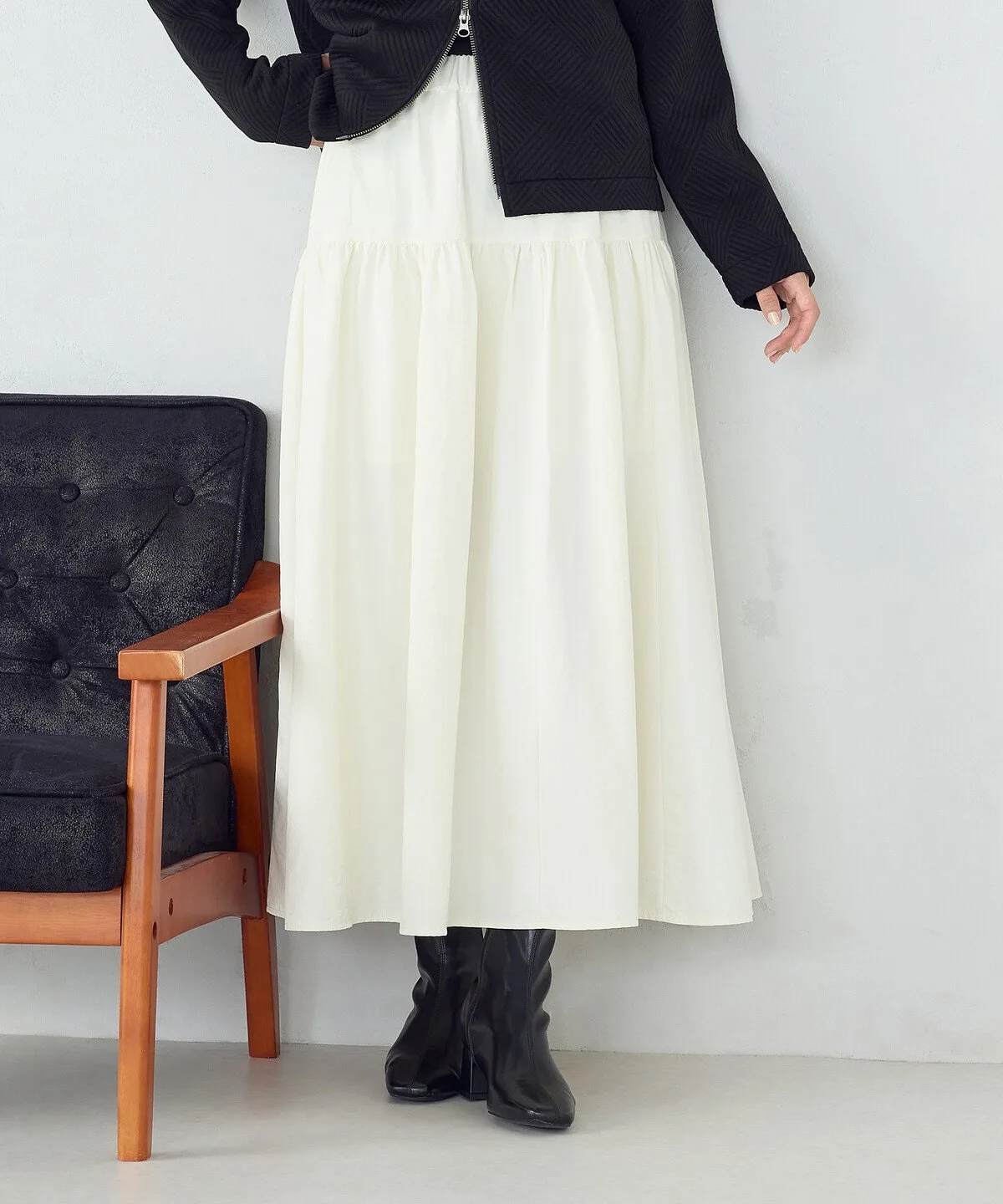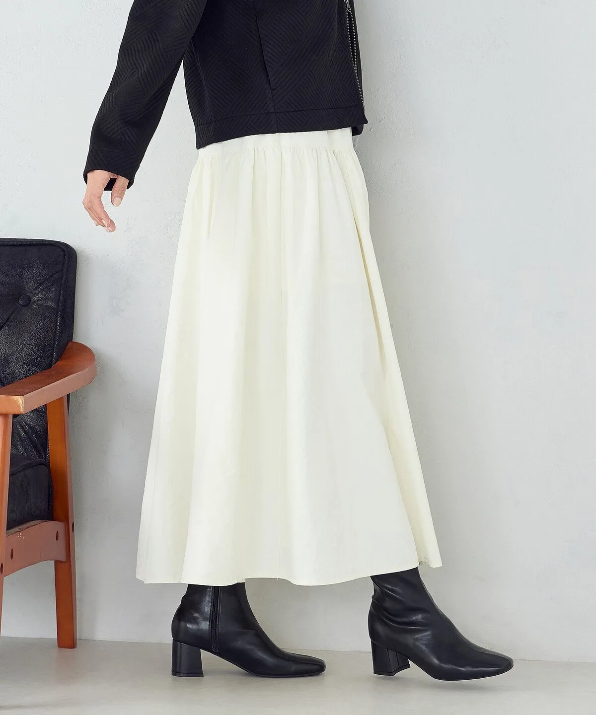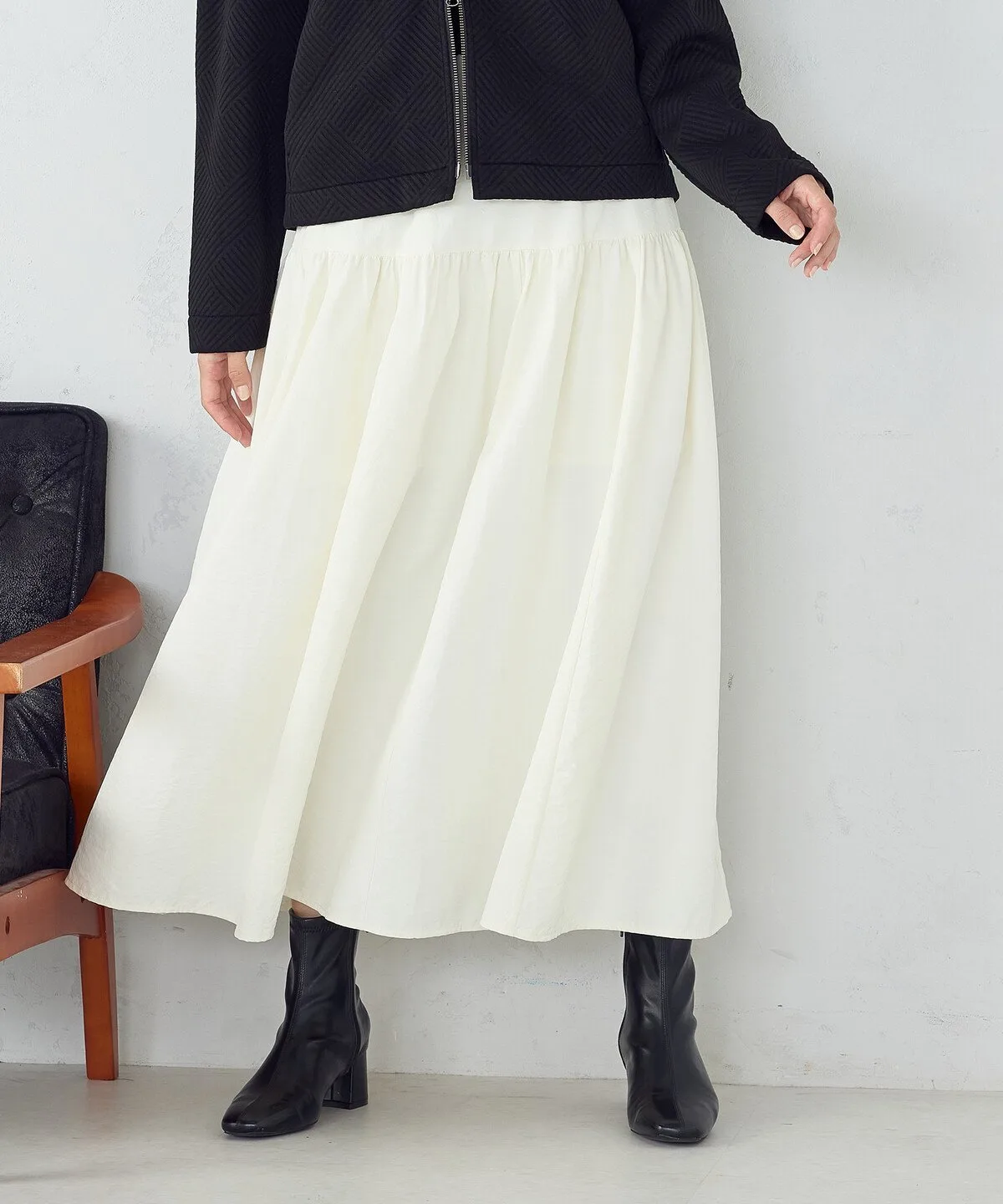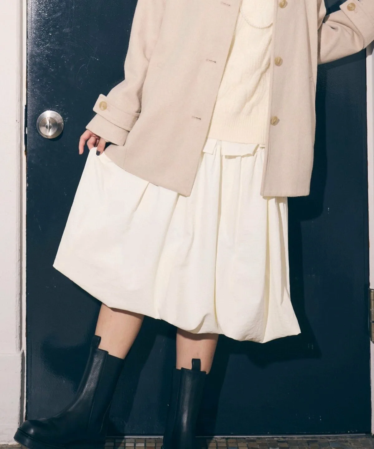 Юбка-баллон длиной 60 см хорошо сочетается с колготками и сапогами.