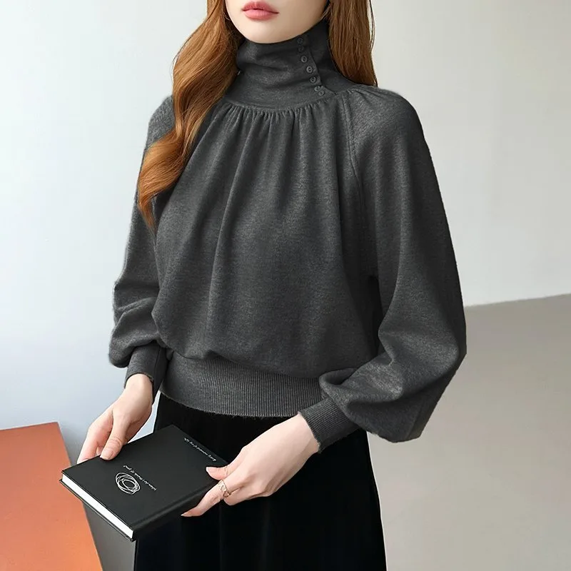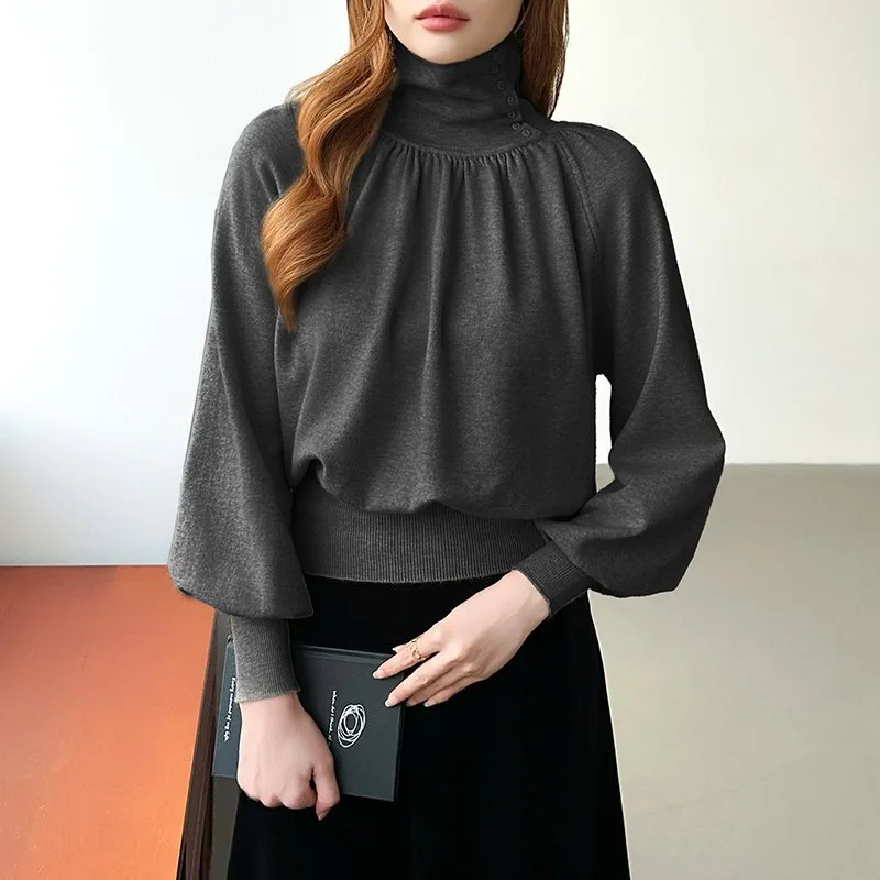 Мягкие, объемные рукава и ребристая отделка создают трехмерный силуэт.