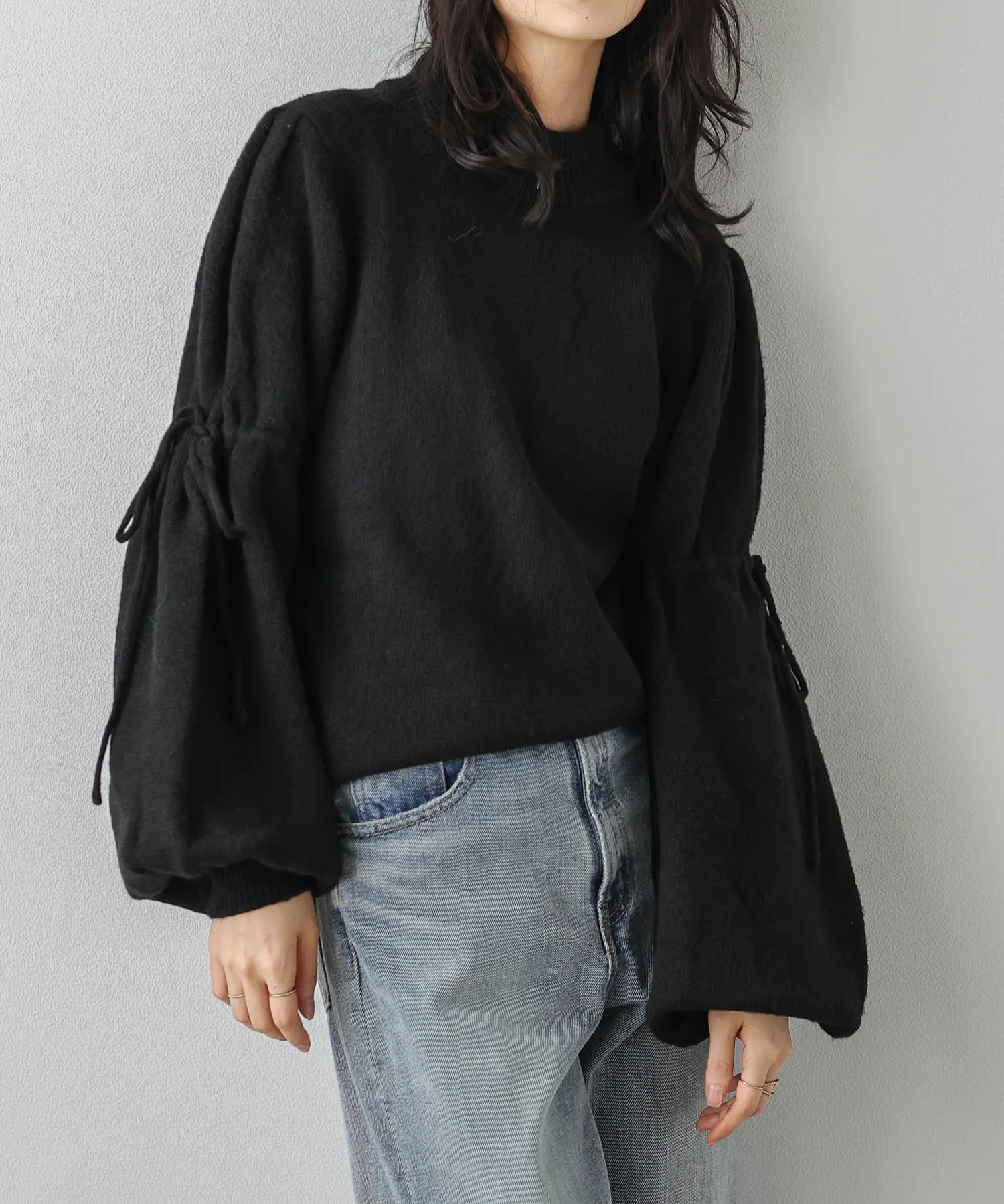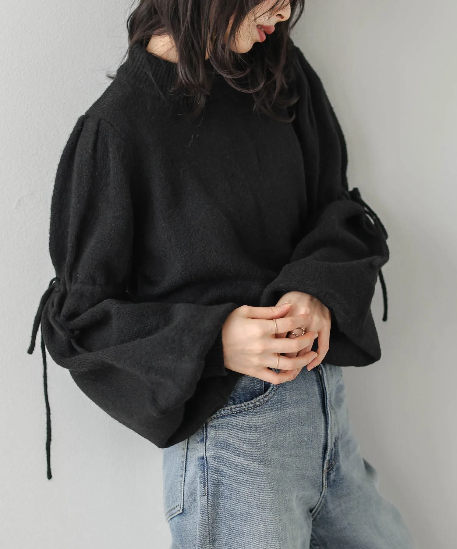 Объемные расклешенные рукава украшены лентами из того же материала,
