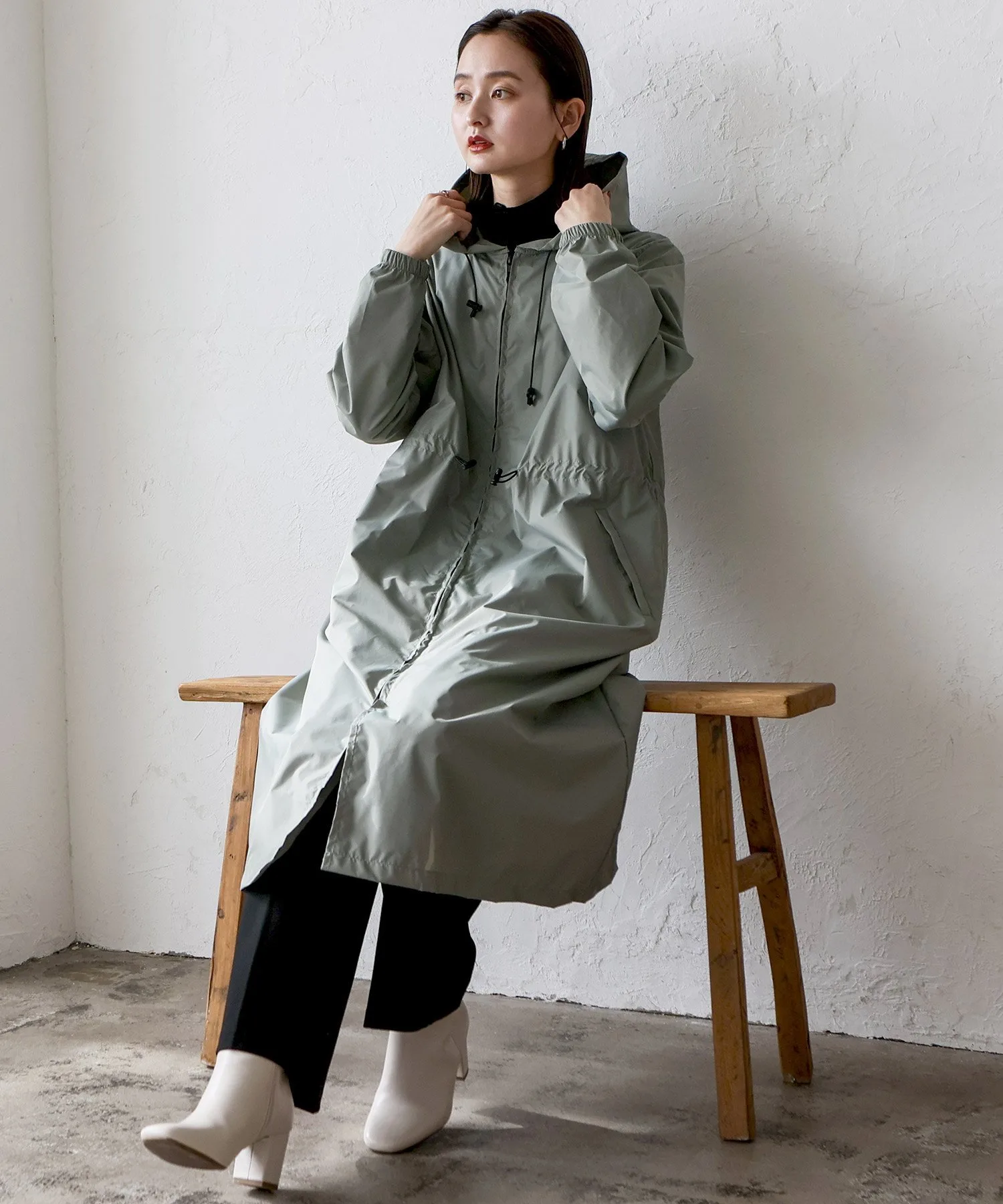 Дождевик, силуэт которого можно изменить, отрегулировав эластичный пояс.